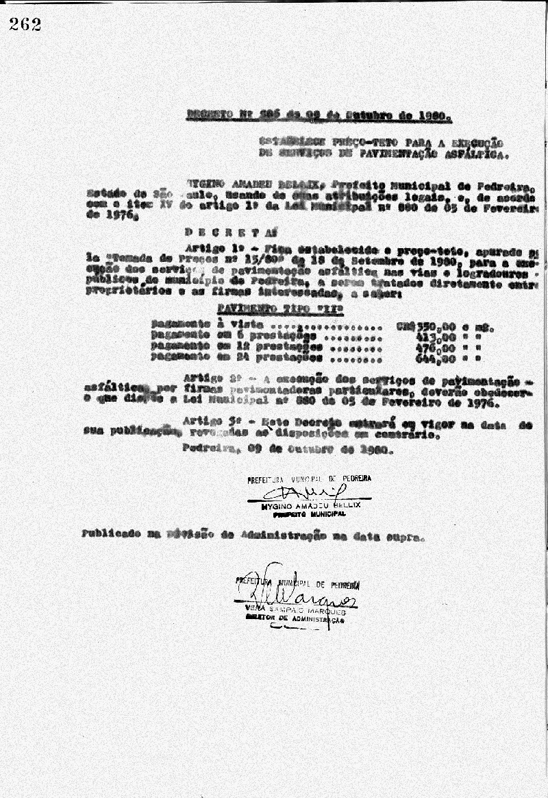 Ementa: Estabelece Preço-teto a execução de serviços de pavimentação asfáltica