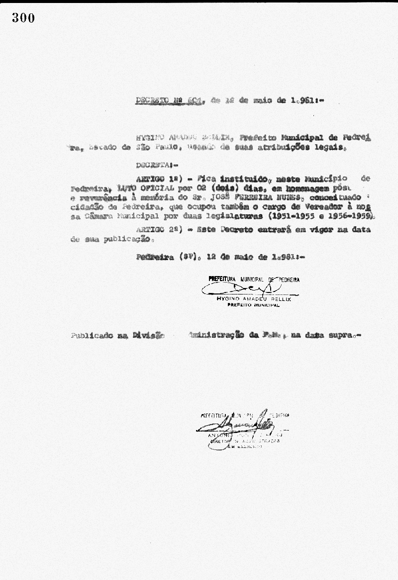 Ementa: Artigo 1° - Fica instituído, neste Município de Pedreira, Luto Oficial, em homenagem ao Sr. José Ferreira Nunes