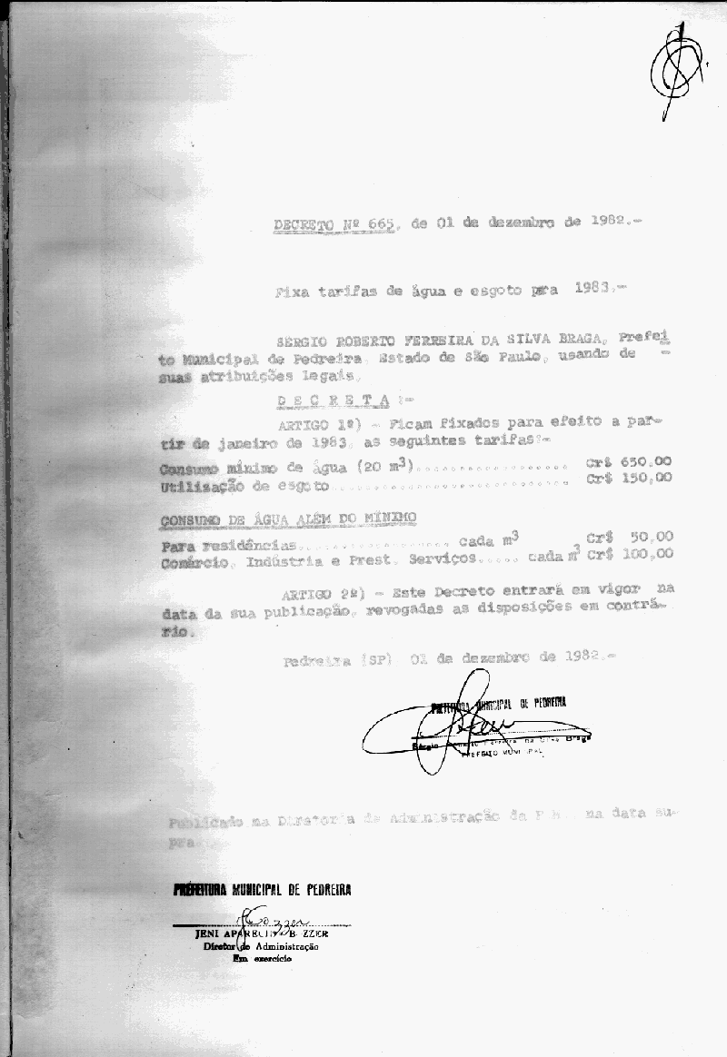 Ementa: Fixa tarifas de água e esgoto para 1983