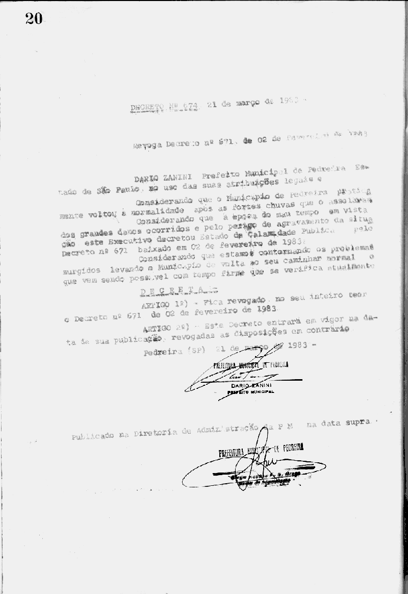 Ementa: Revoga Decreto n° 671 de 02 de fevereiro de 1983