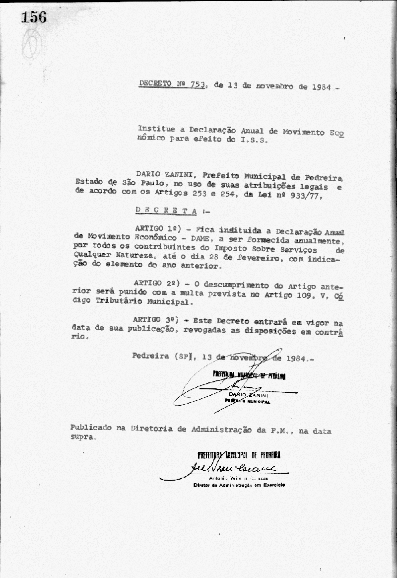 Ementa: Institui a Declaração Anual de Movimento Econômico para efeito do I.S.S.