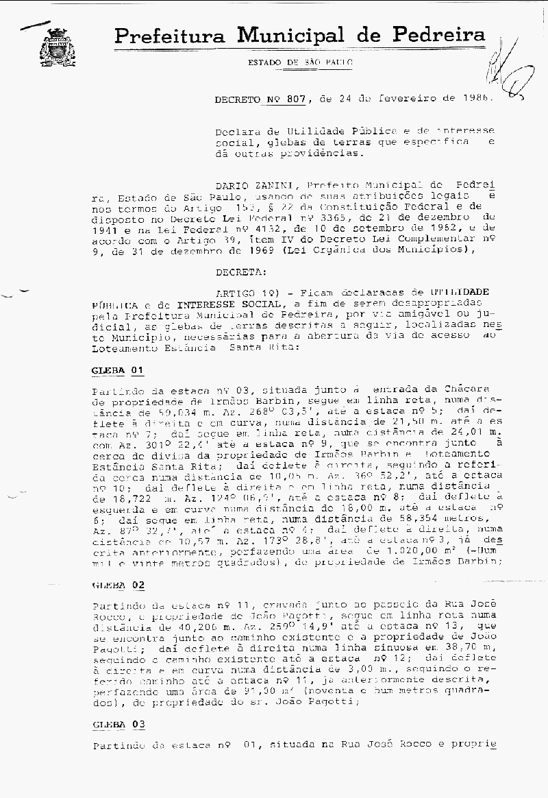 Ementa: Declara de utilidade Pública e de interesse social, glebas de terras que especifica e dá outras providências