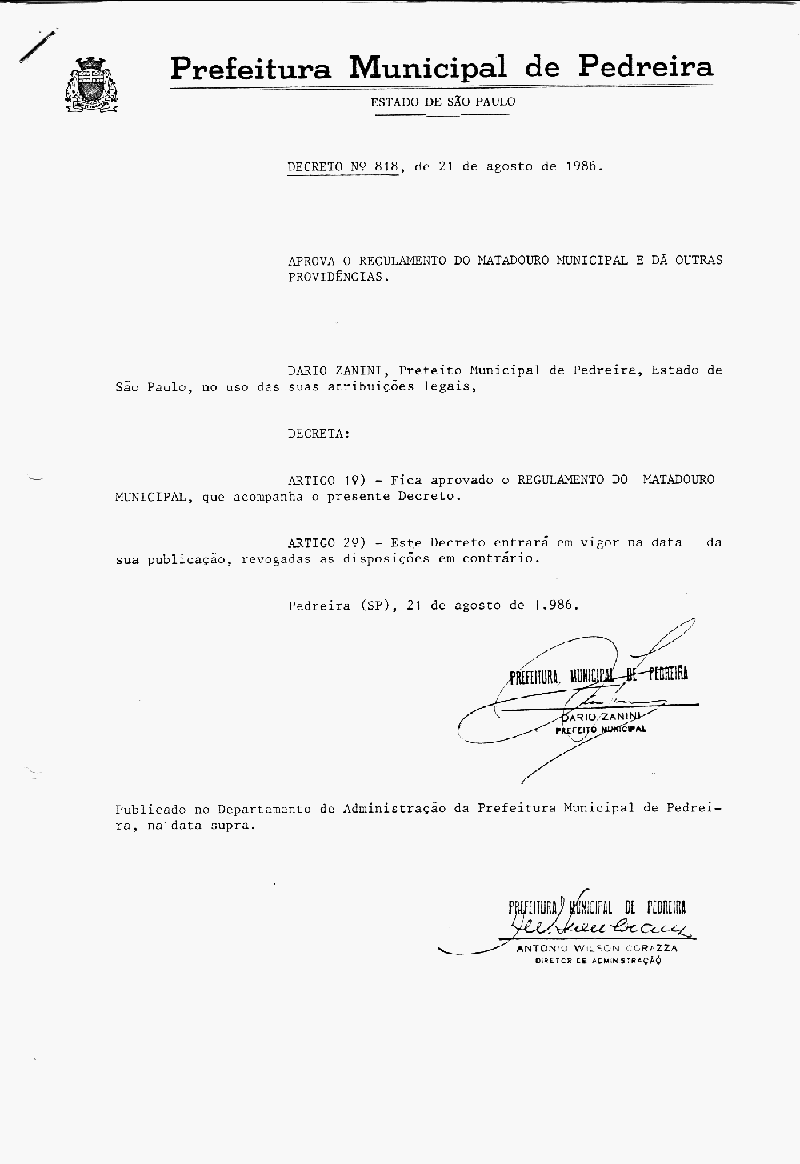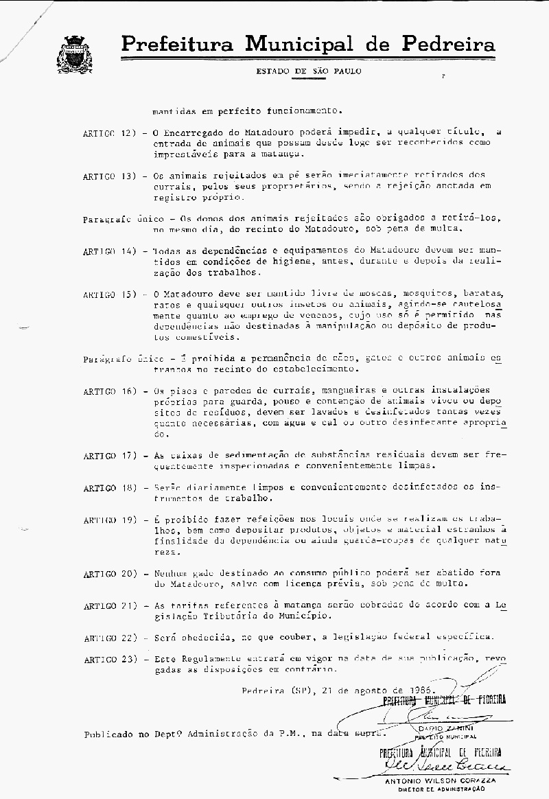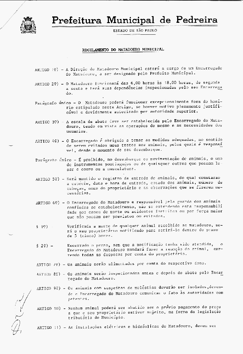 Ementa: Aprova o regulamento do matadouro Municipal e da outras providências