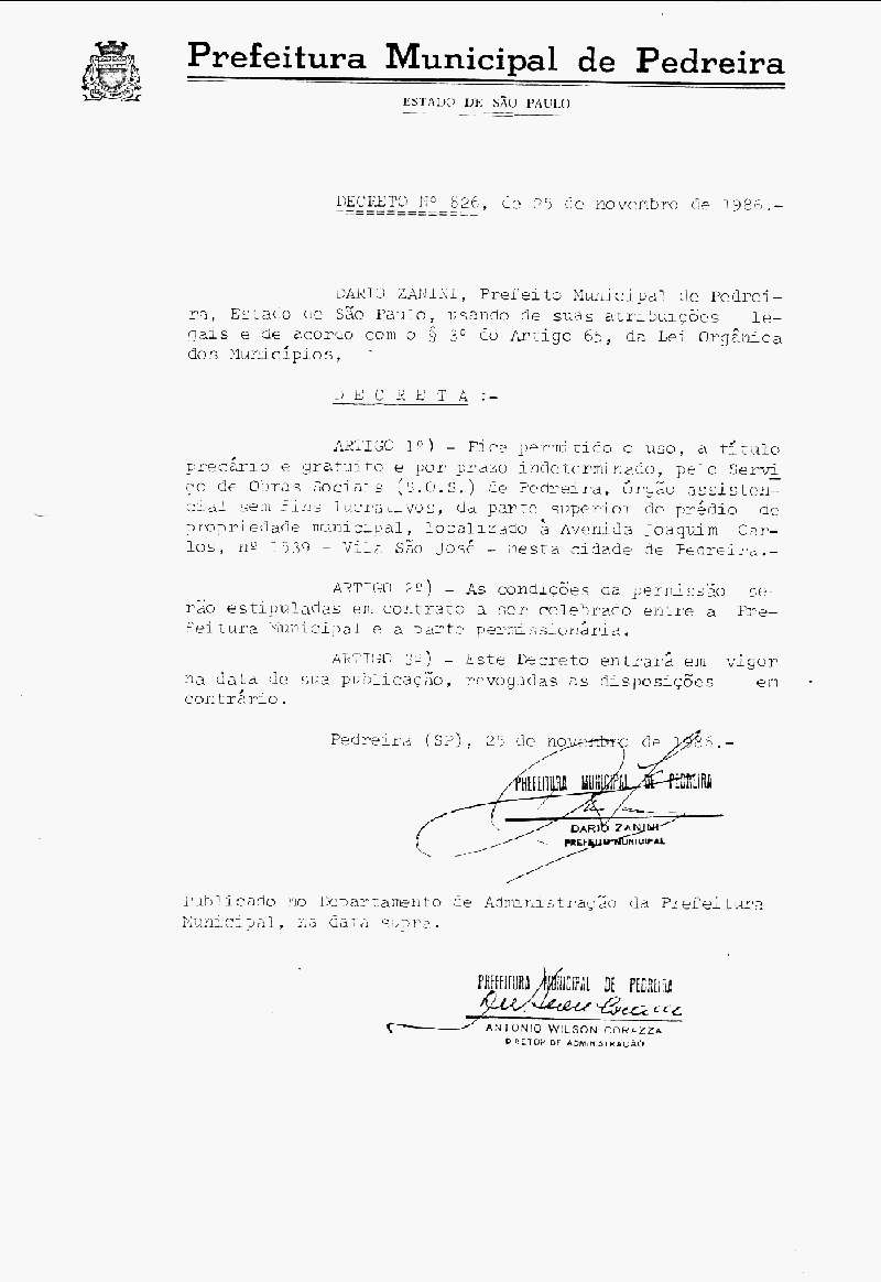 Decreto - N° 826 de 25/11/1986
