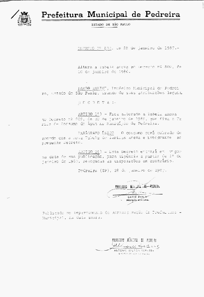 Decreto - N° 834 de 28/01/1987