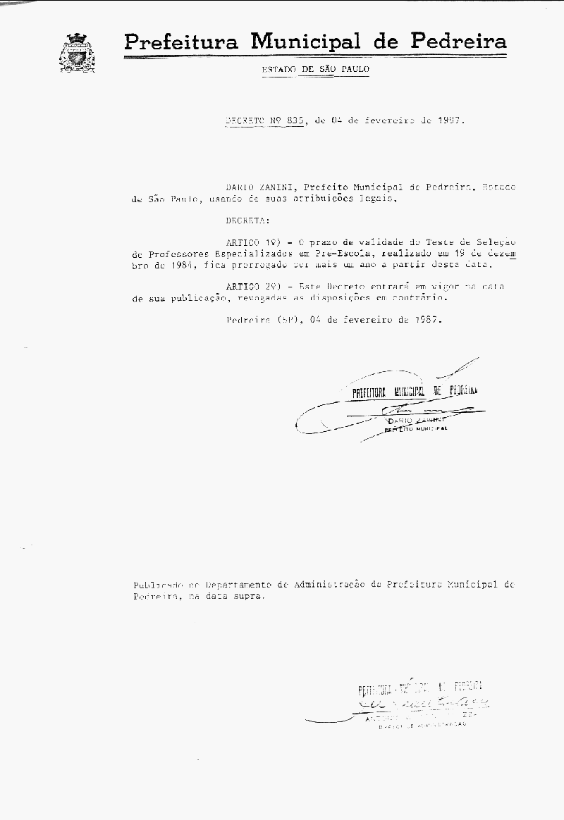 Decreto - N° 835 de 04/02/1987