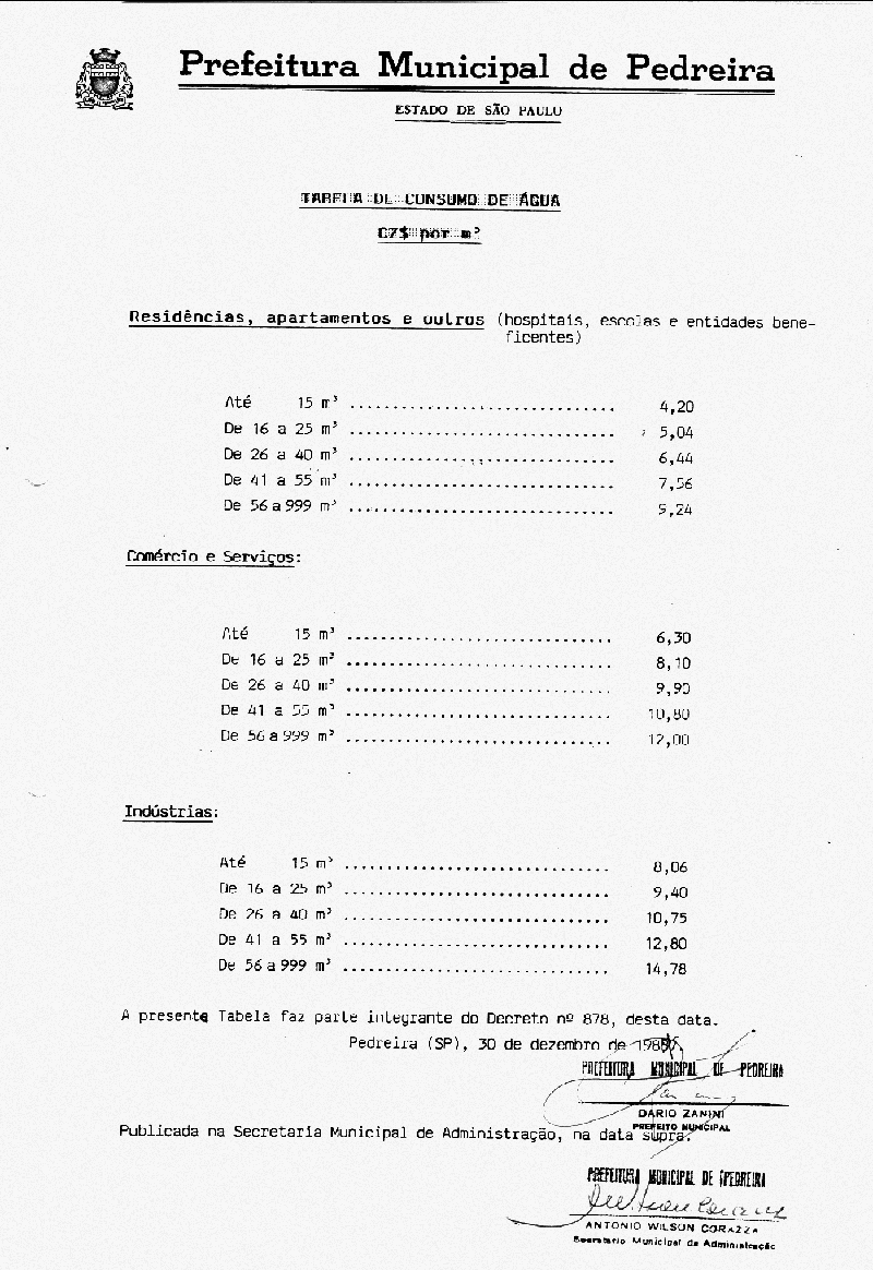 Ementa: Altera a tabela de Tarifa de Consumo de água