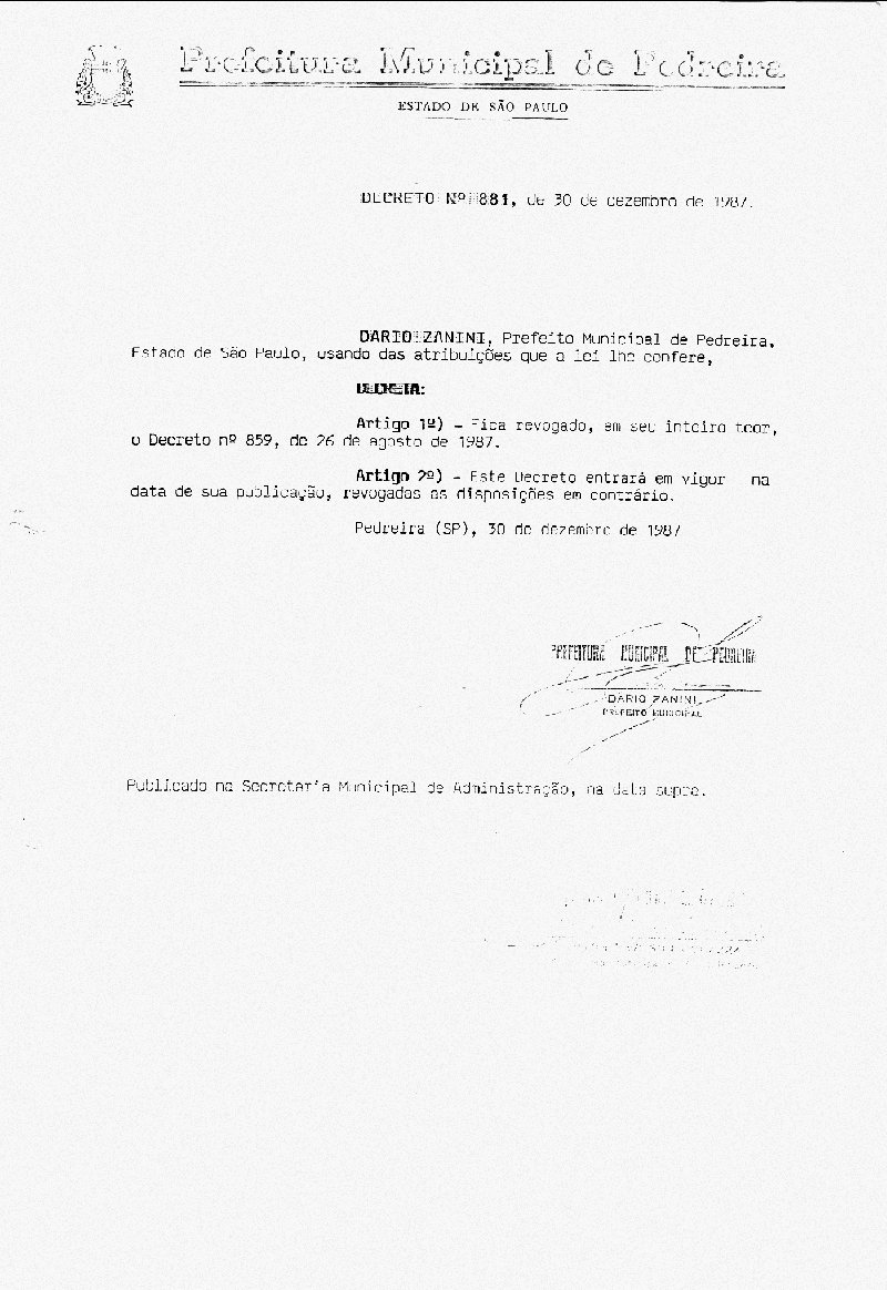 Ementa: Artigo 1° - Fica revogado , em seu interino