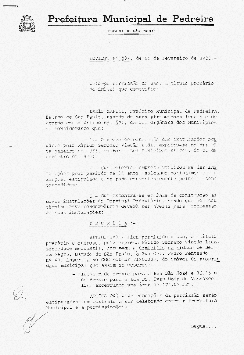 Ementa: Outorga permissão do uso de titulo precário de imóvel que especifica