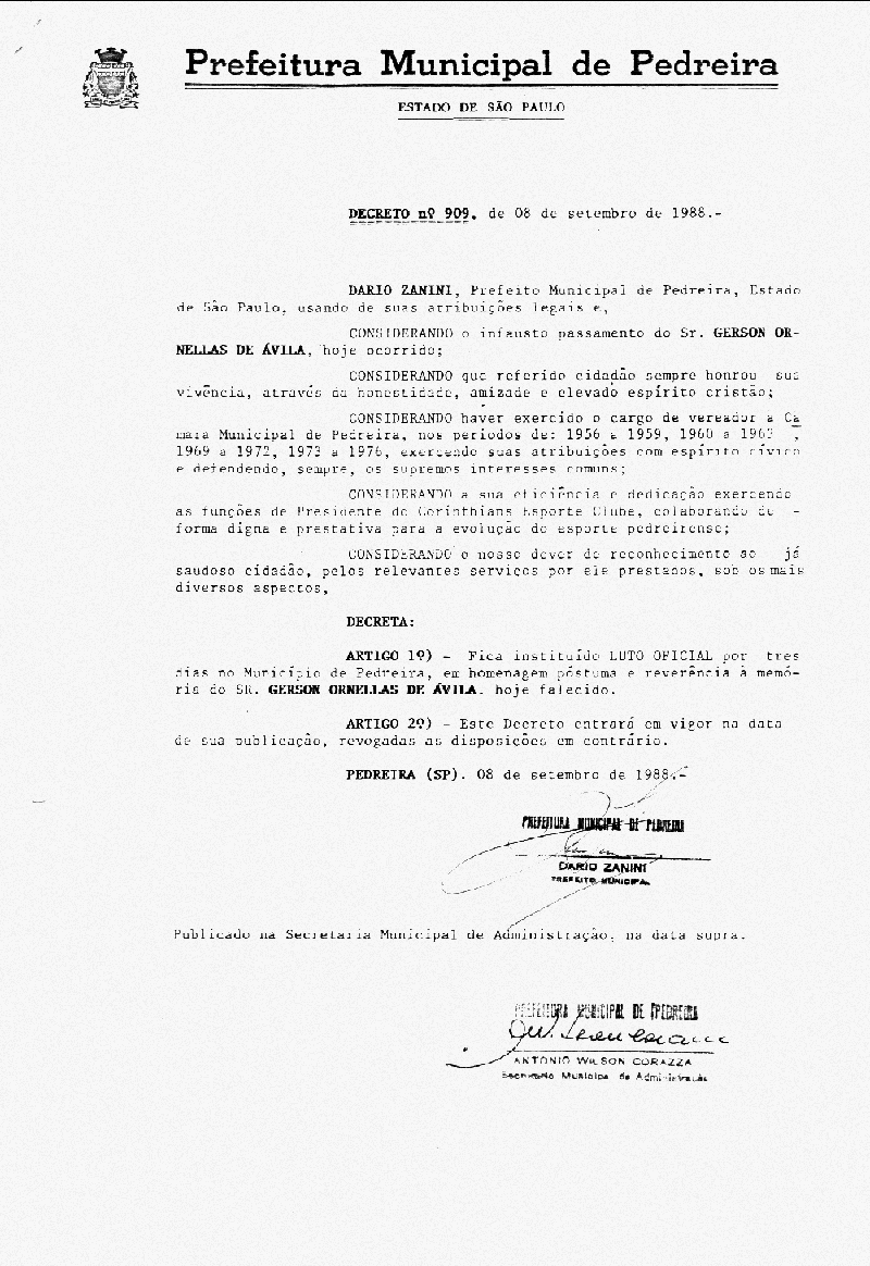 Ementa: Considerando o infausto passamento do Sr. Gerson Ornellas de Ávila, hoje ocorrido