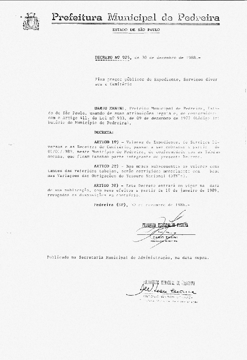 Ementa: Fixa prazo público de Expediente, Serviços diversos e cemitério