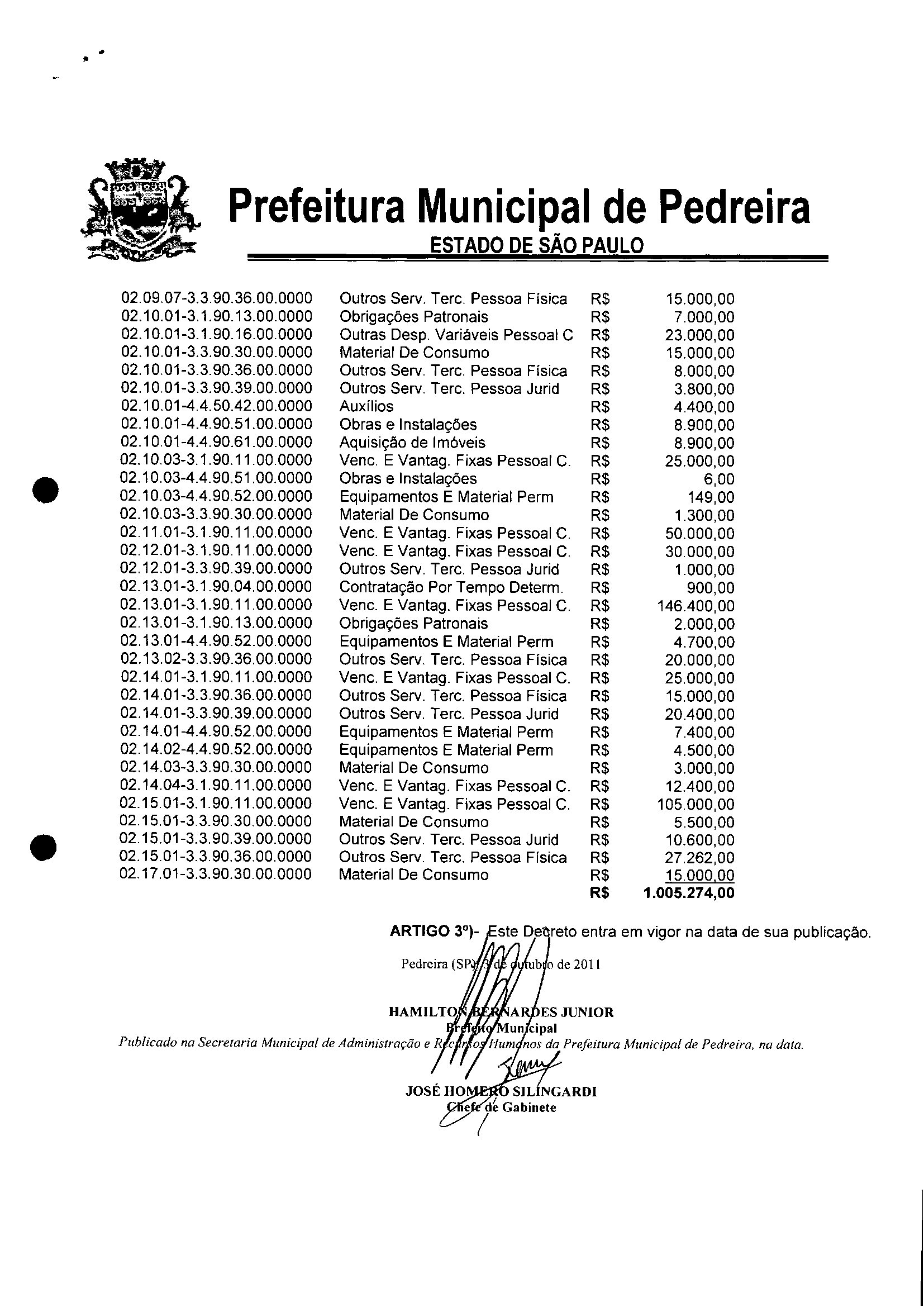 Decreto - N° 2005 de 03/10/2011
