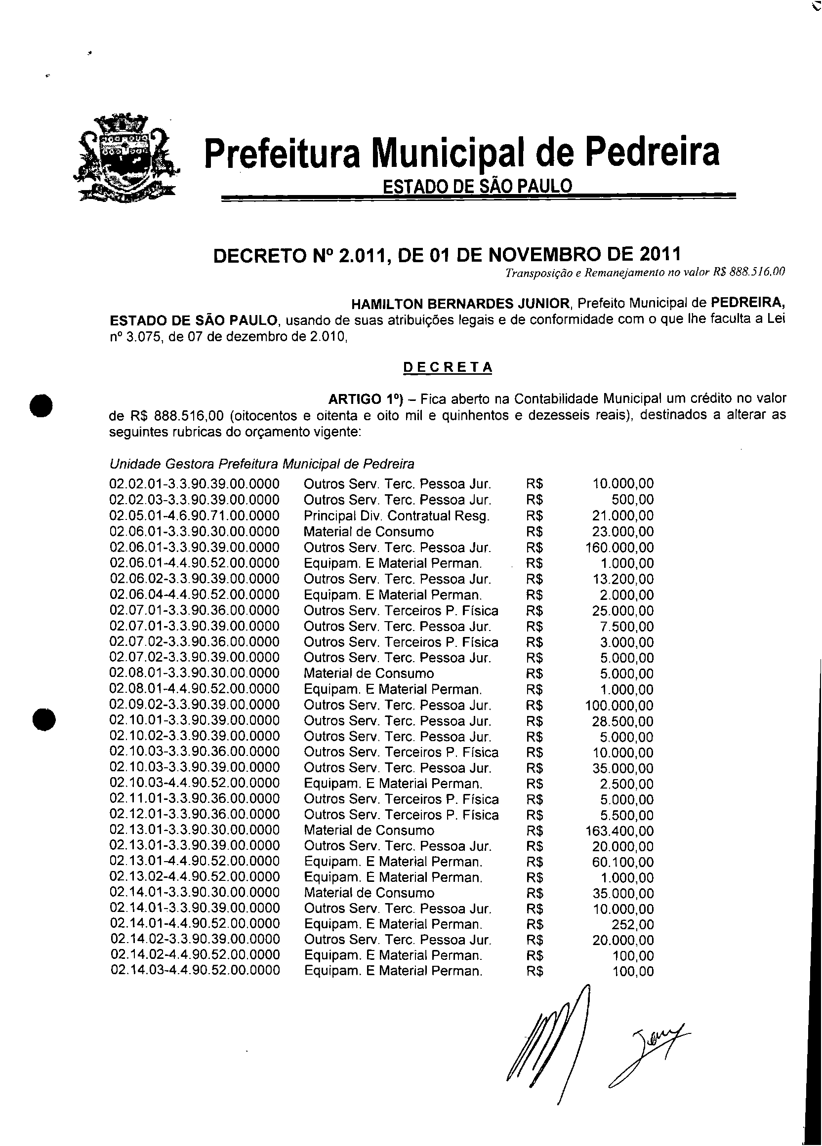 Decreto - N° 2011 de 01/11/2011