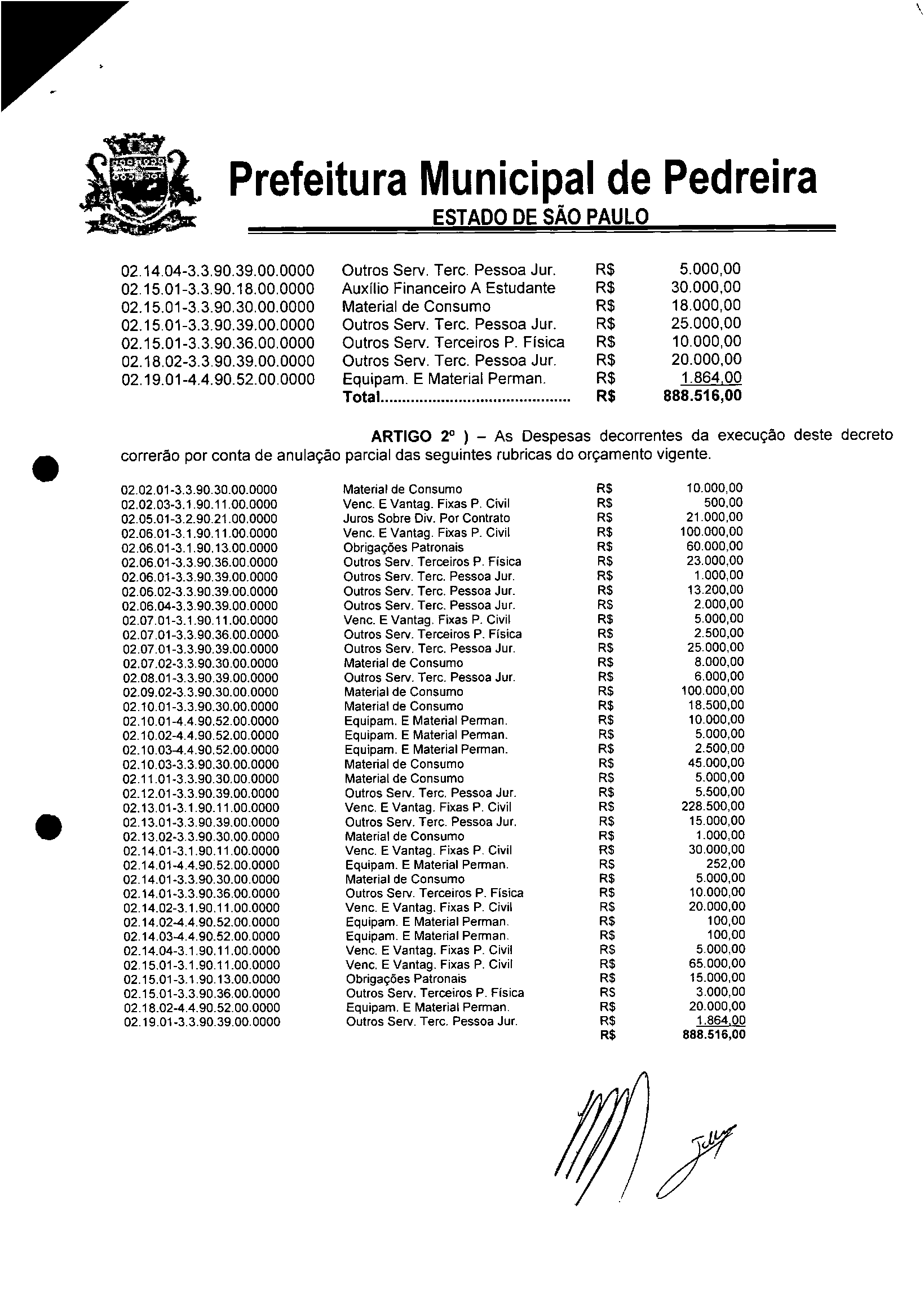 Ementa: Transposição e Remanejamento no valor R$ 888.516,00