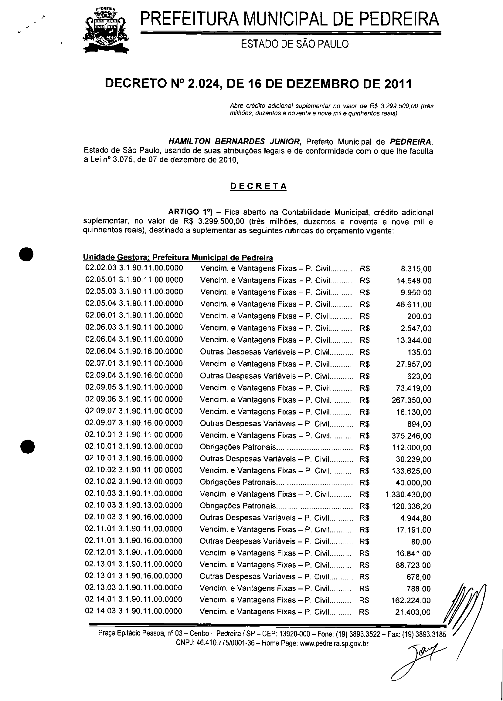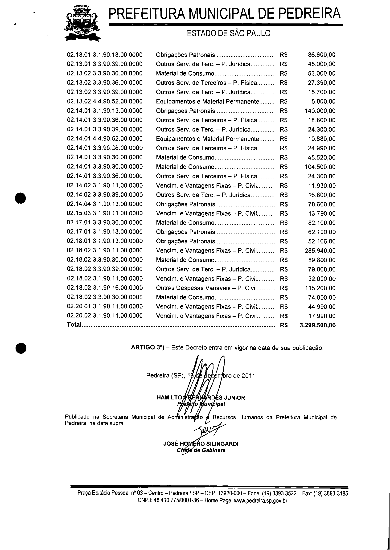 Ementa: Abre crédito adicional suplementar no valor de R$ 3.299.500,00 (três milhões, duzentos e noventa e nove mil e quinhentos reais).