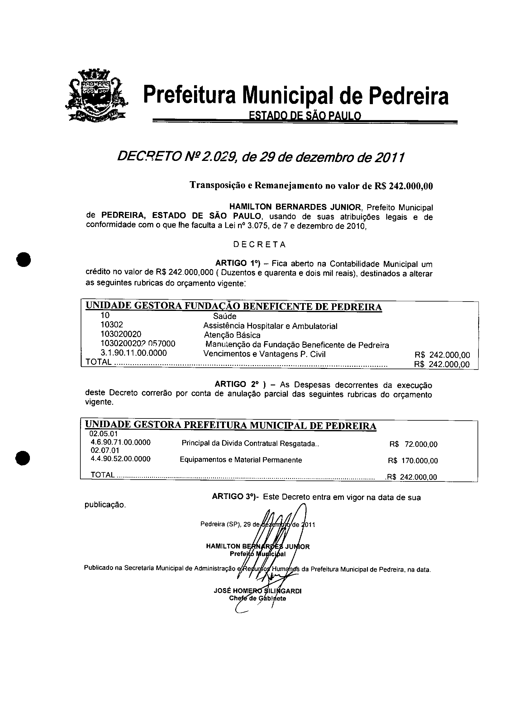Decreto - N° 2029 de 29/12/2011