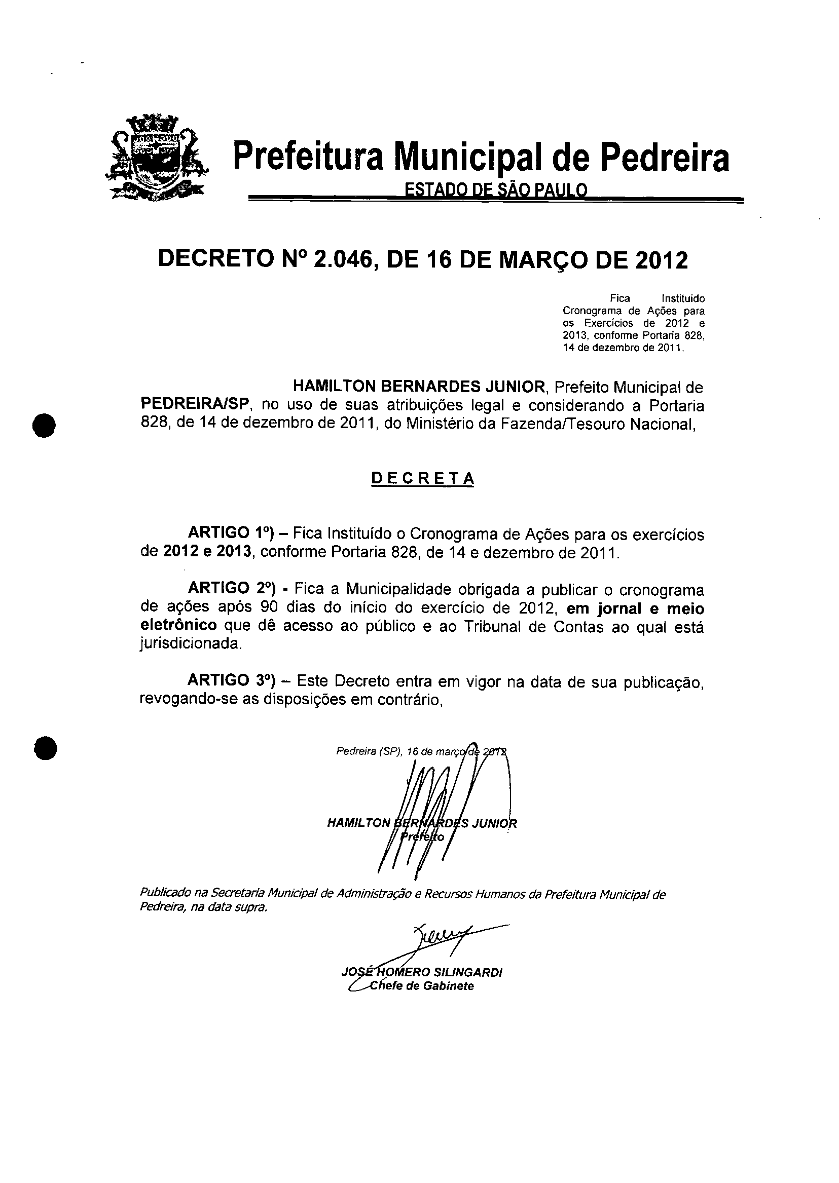 Decreto - N° 2046 de 16/03/2012