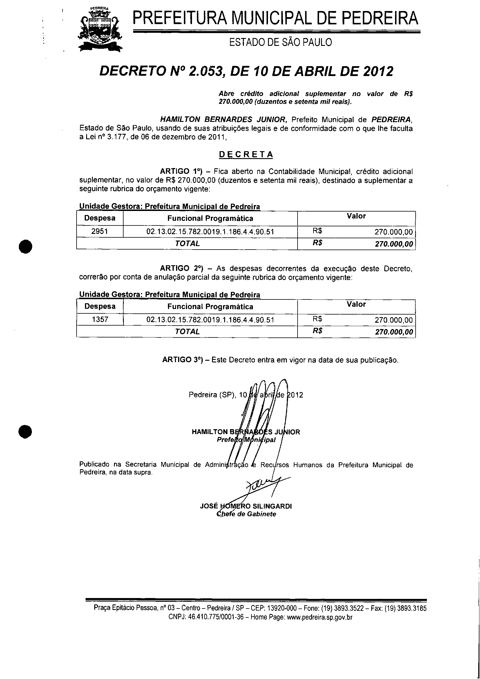 Decreto - N° 2053 de 10/04/2012