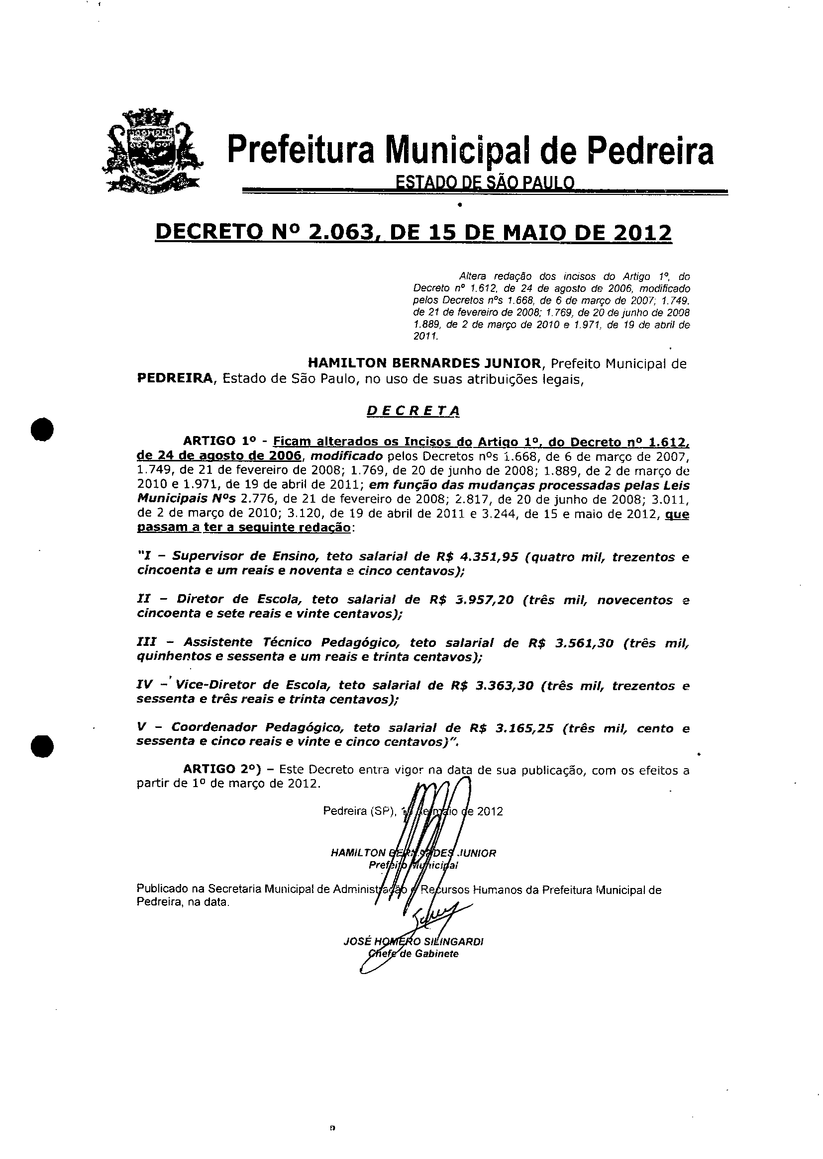 Decreto - N° 2063 de 15/03/2012