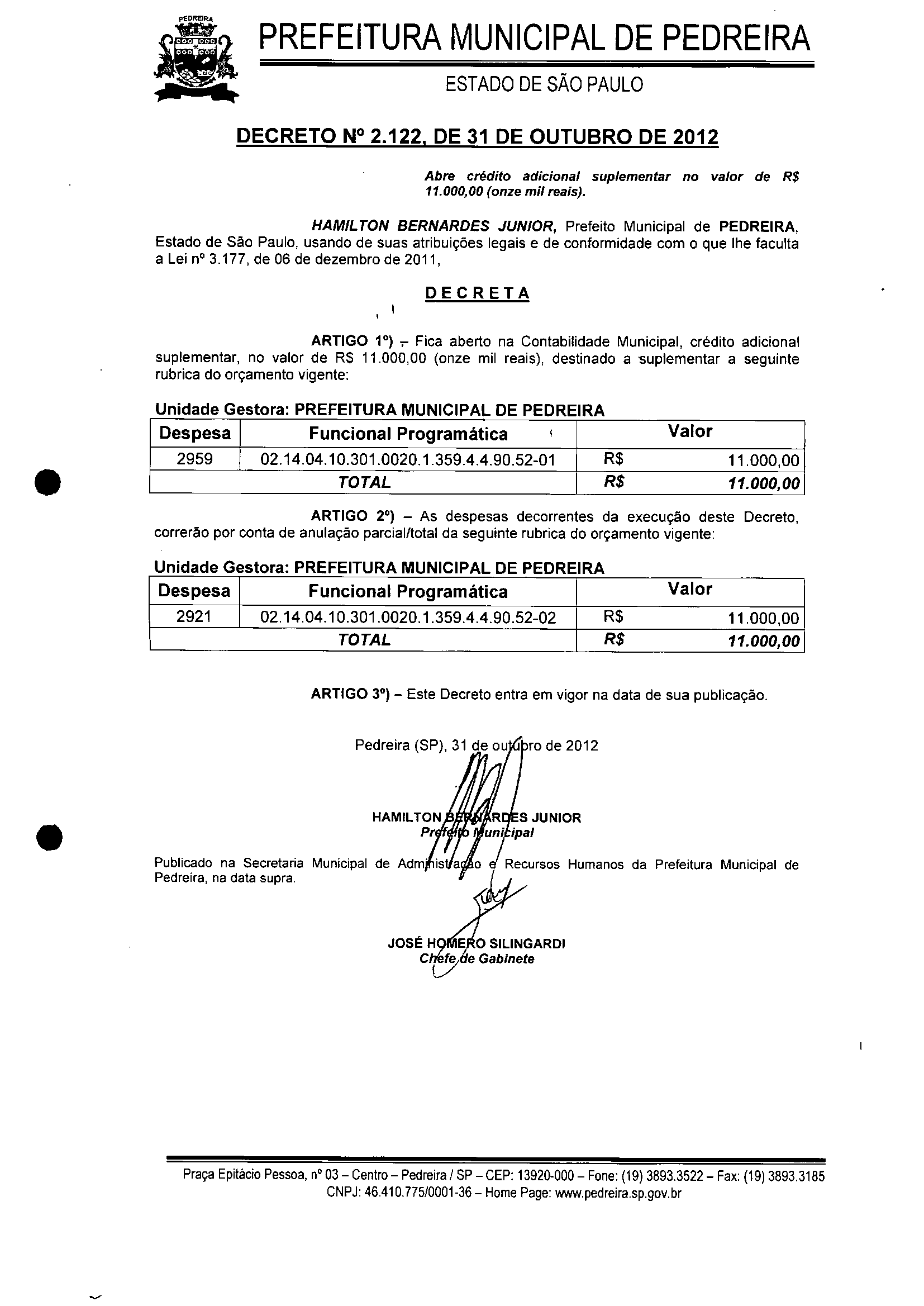 Decreto - N° 2122 de 31/10/2012