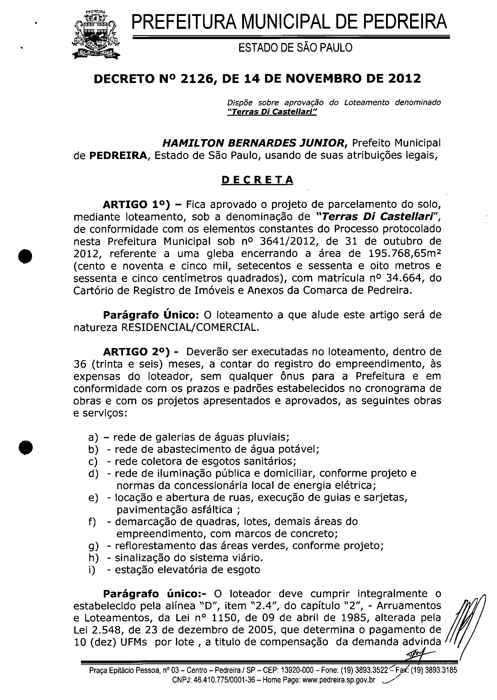 Decreto - N° 2126 de 14/11/2012