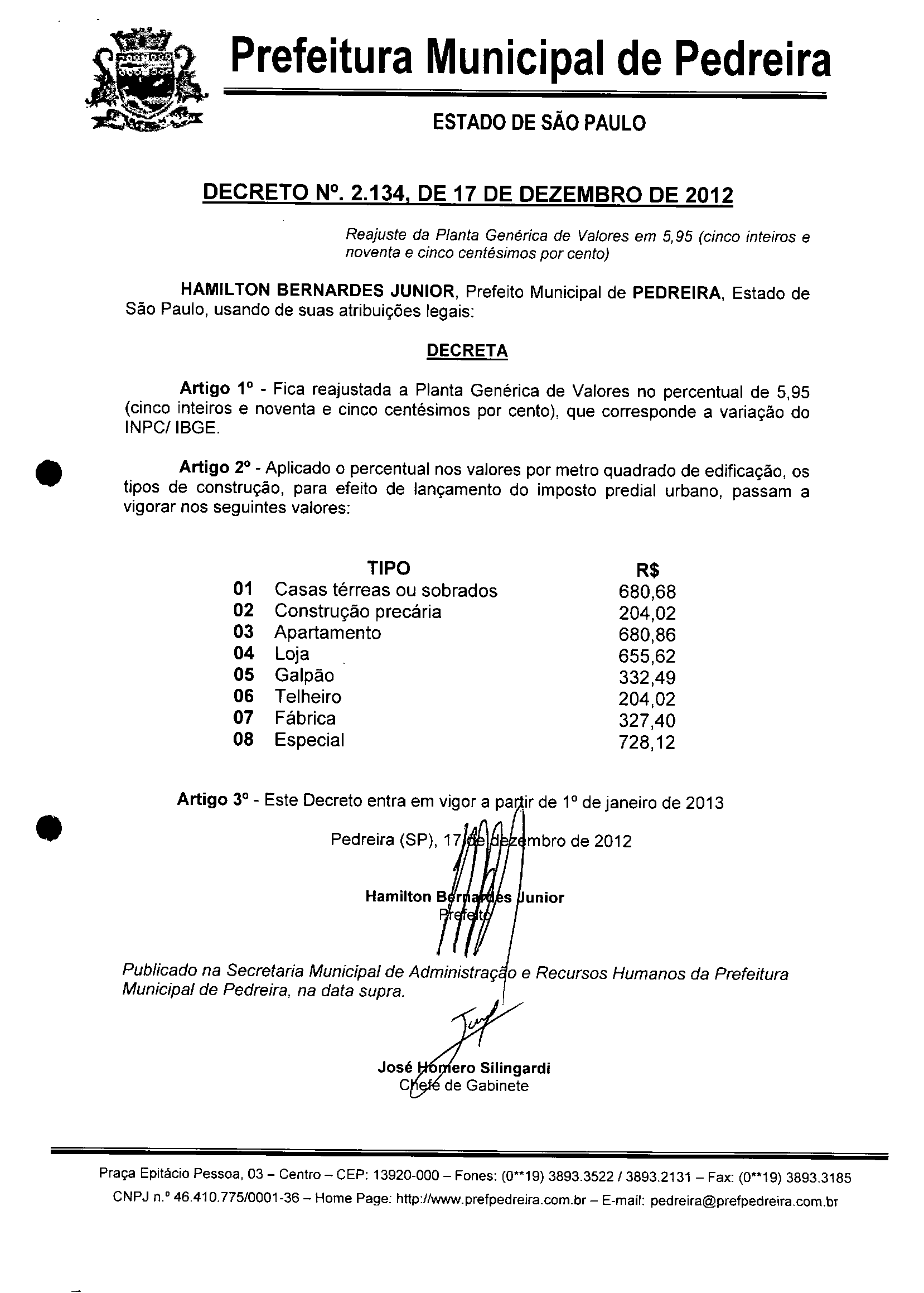 Ementa: Reajuste da Planta Genérica de Valores em 5,95 (cinco inteiros e noventa e cinco centésimos por cento)