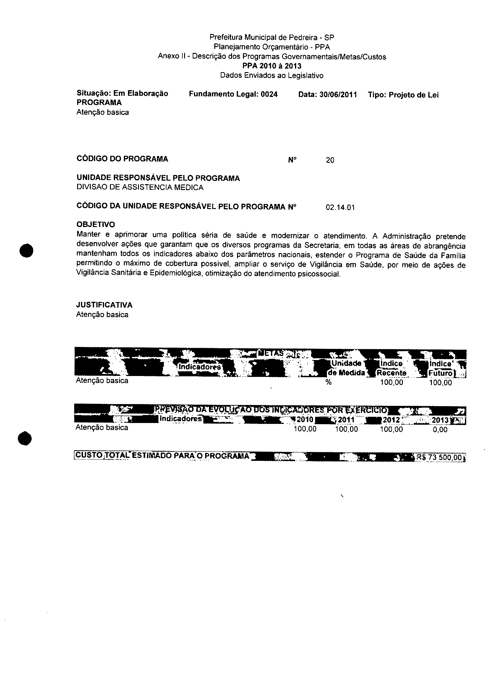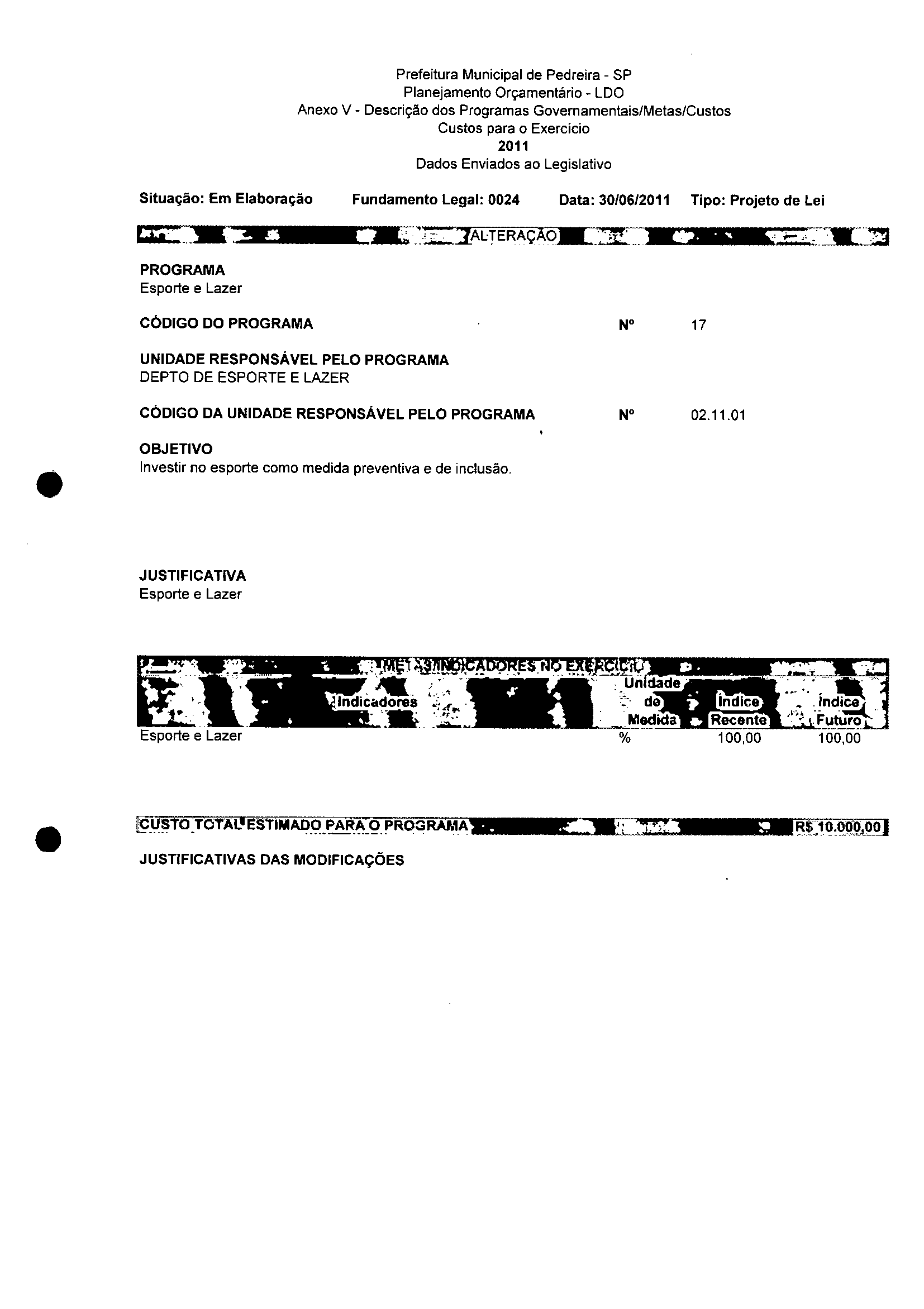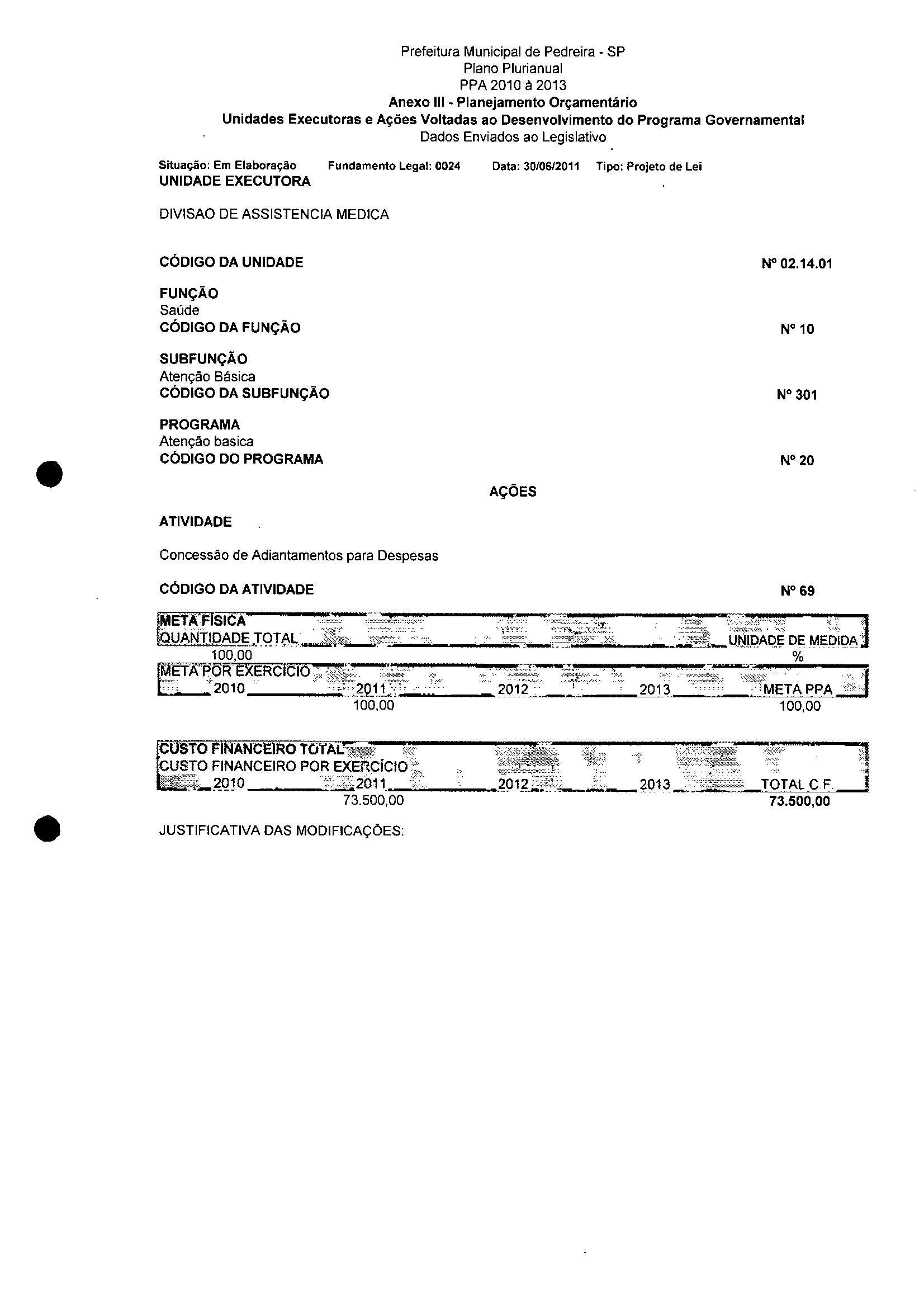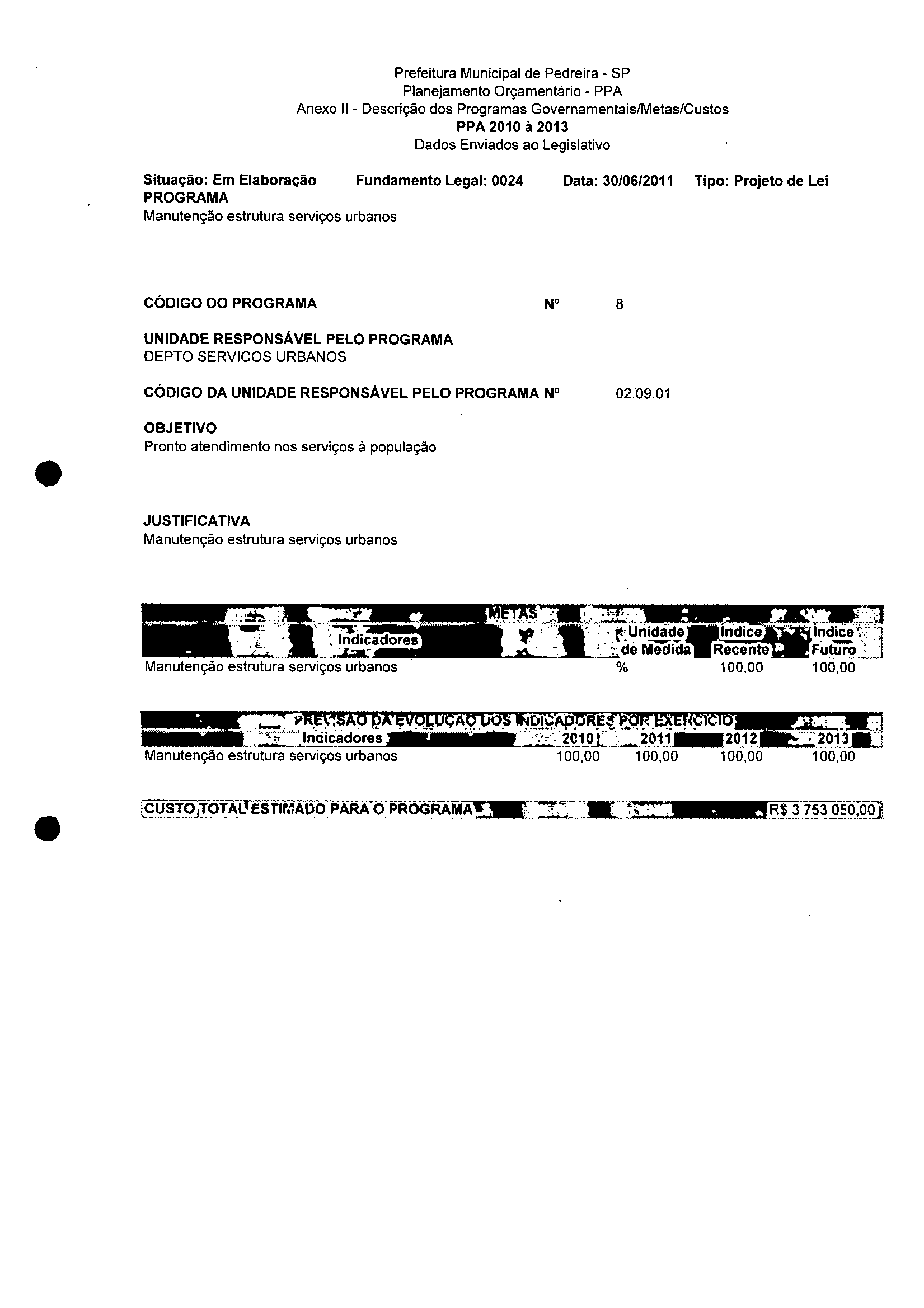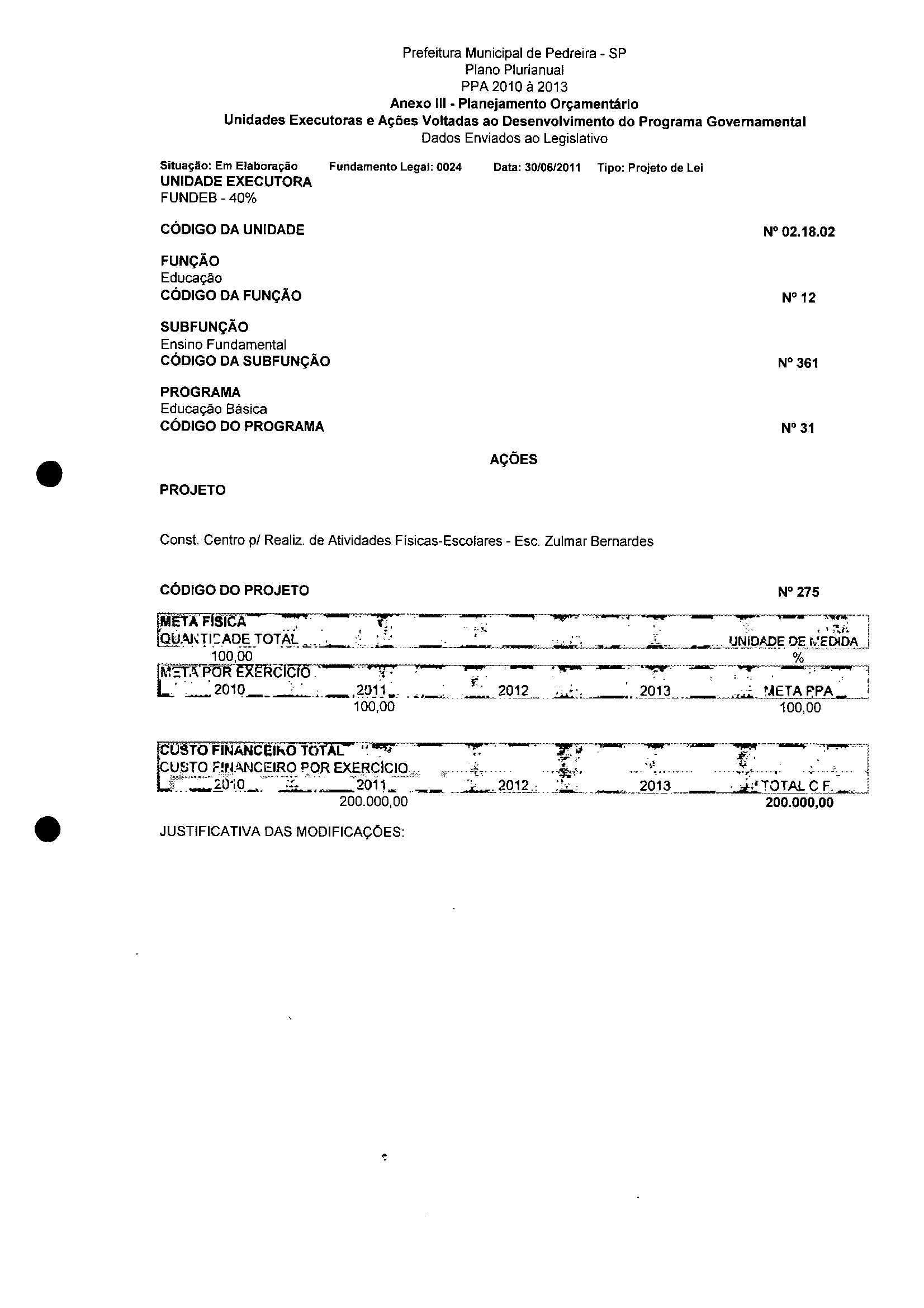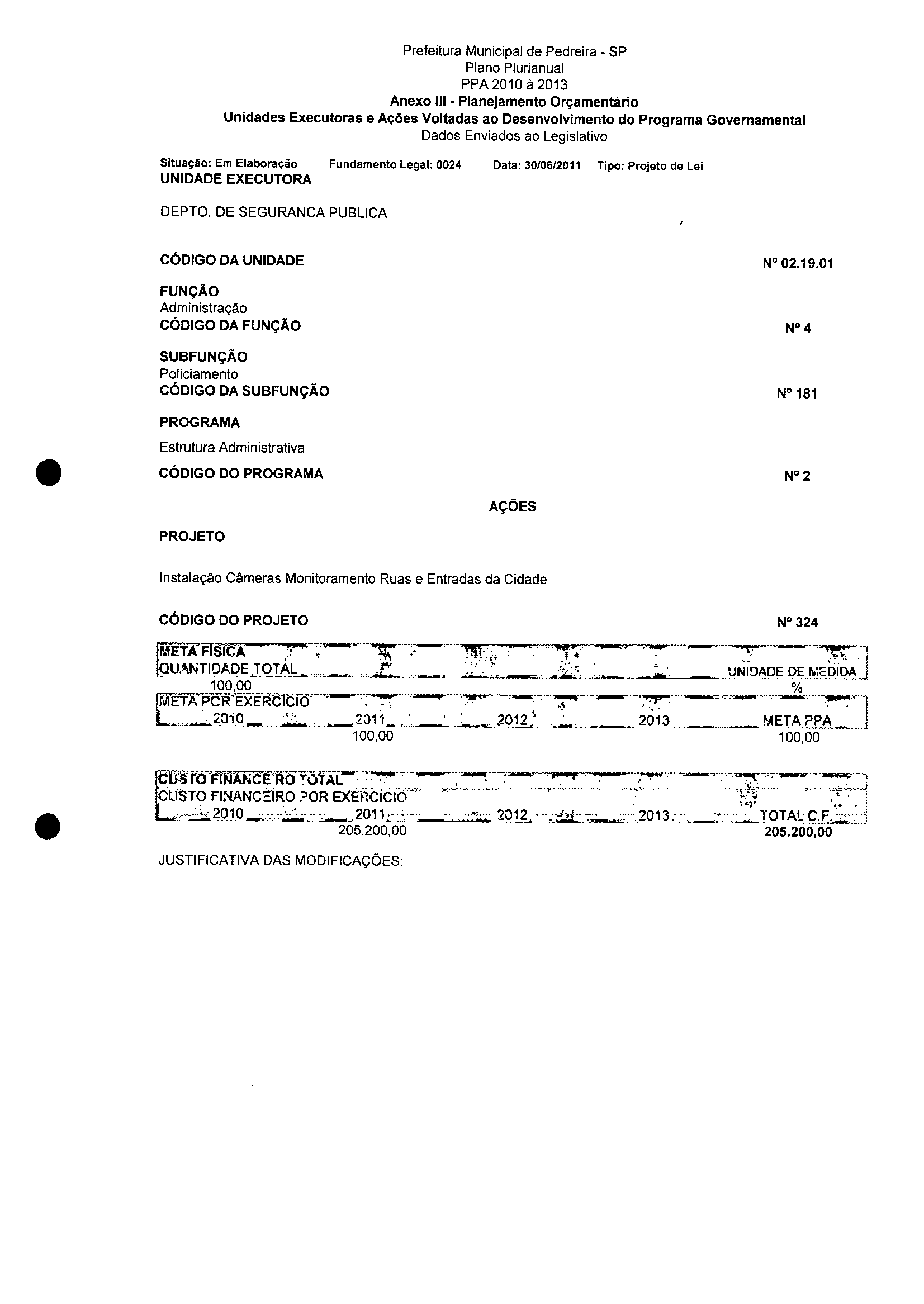 Ementa: Dispõe sobre a alteração dos anexos II e III - da Lei nº 2977, de 5 de novembro de 2009 - Plano Plurianual para o Quadriênio de 2010/2013 e a alteração dos anexos Ve VI -da Lei n° 3040, de 10 de junho de 2010 -Lei de Diretrizes Orçamentárias para o exercício de 2011.