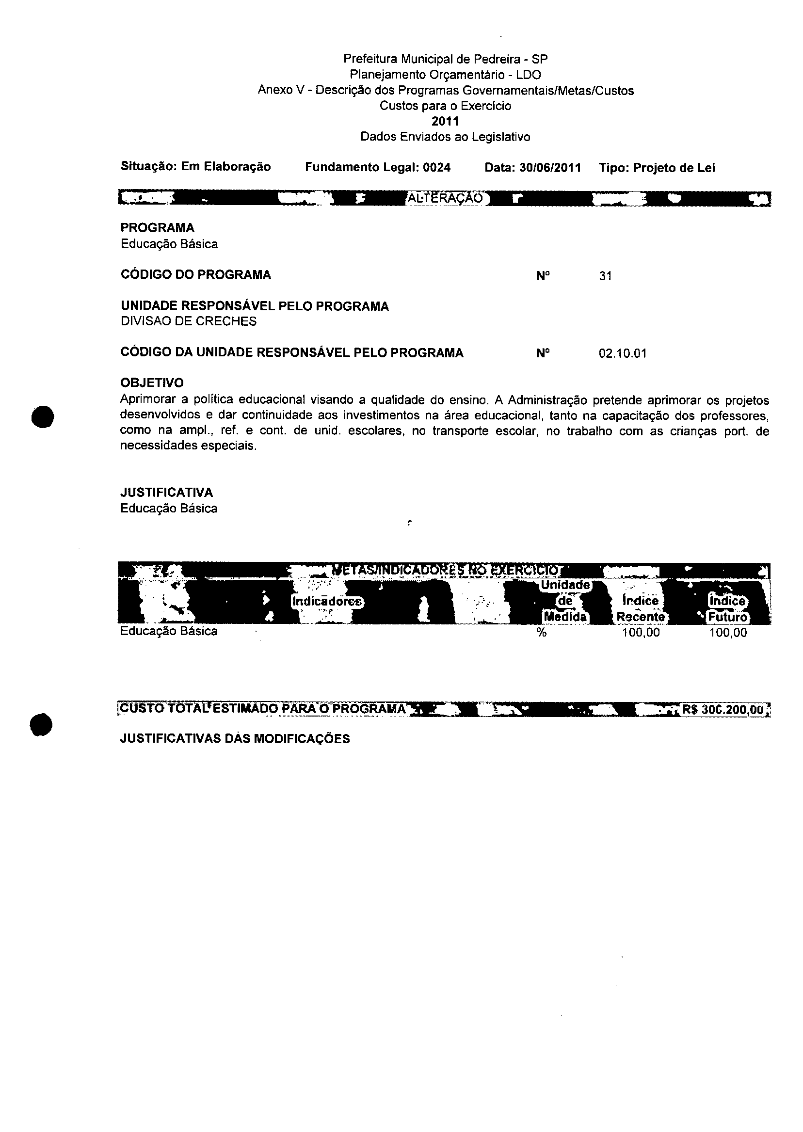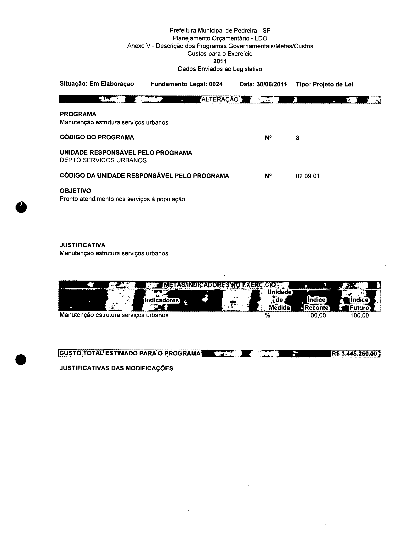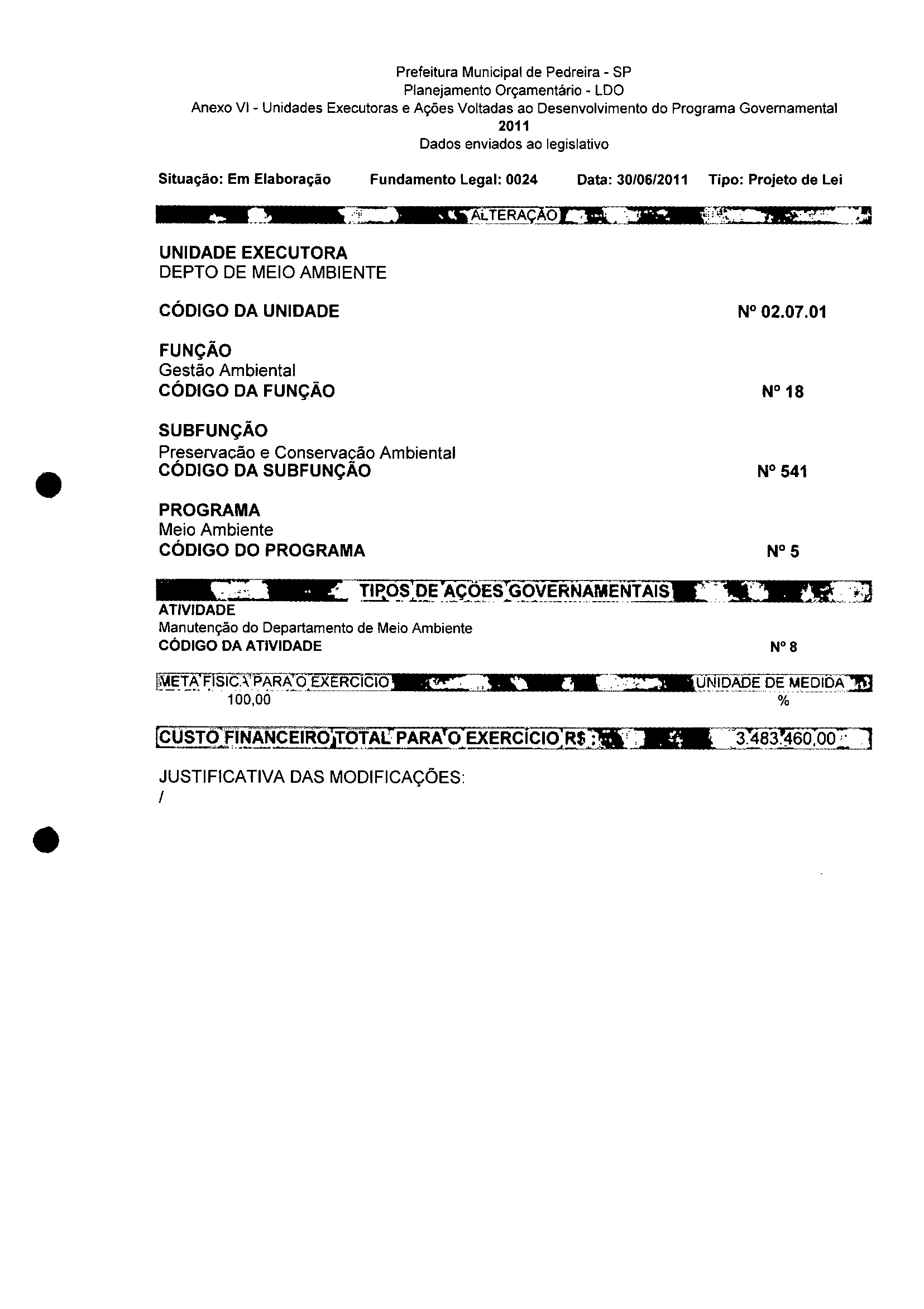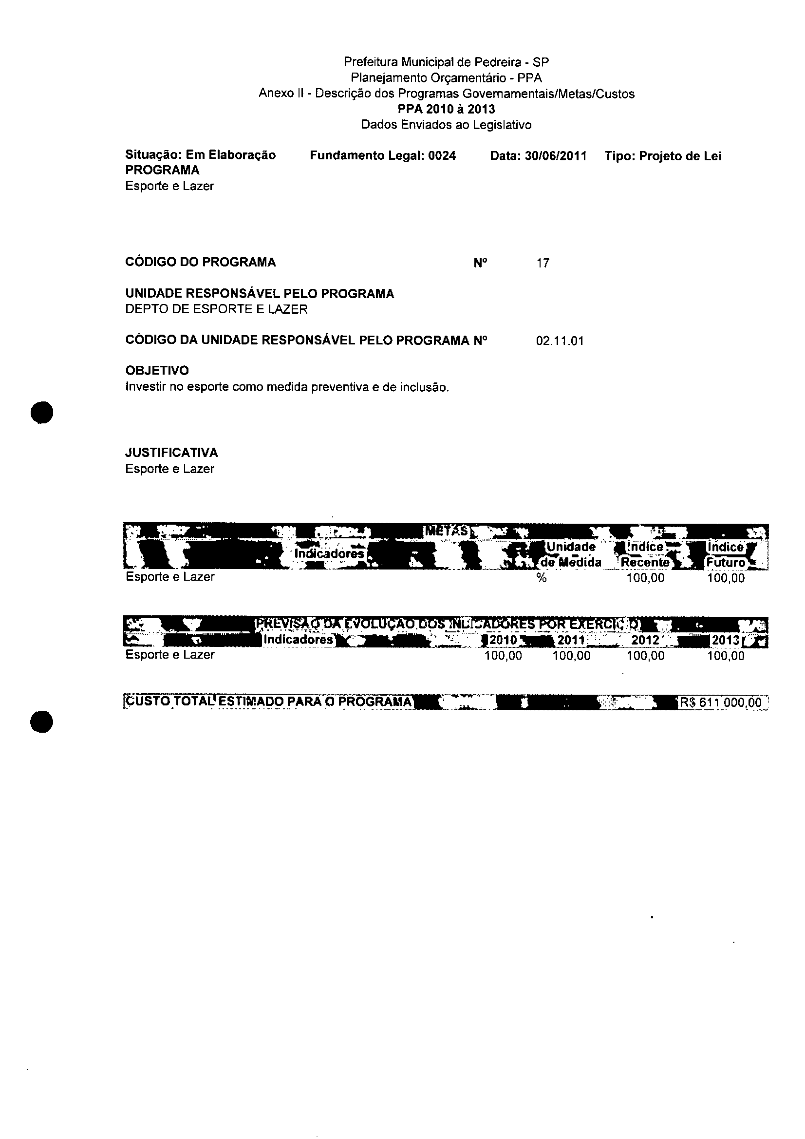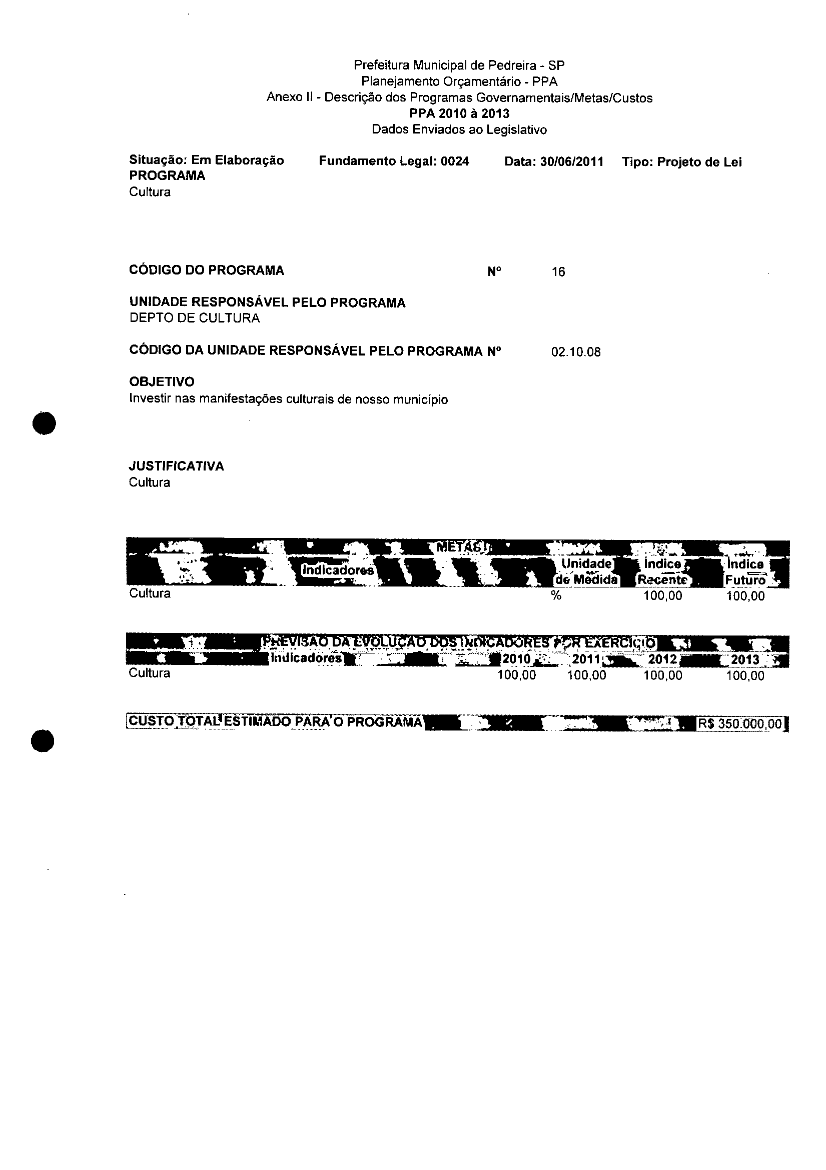 Ementa: Dispõe sobre a alteração dos anexos II e III - da Lei nº 2977, de 5 de novembro de 2009 - Plano Plurianual para o Quadriênio de 2010/2013 e a alteração dos anexos Ve VI -da Lei n° 3040, de 10 de junho de 2010 -Lei de Diretrizes Orçamentárias para o exercício de 2011.
