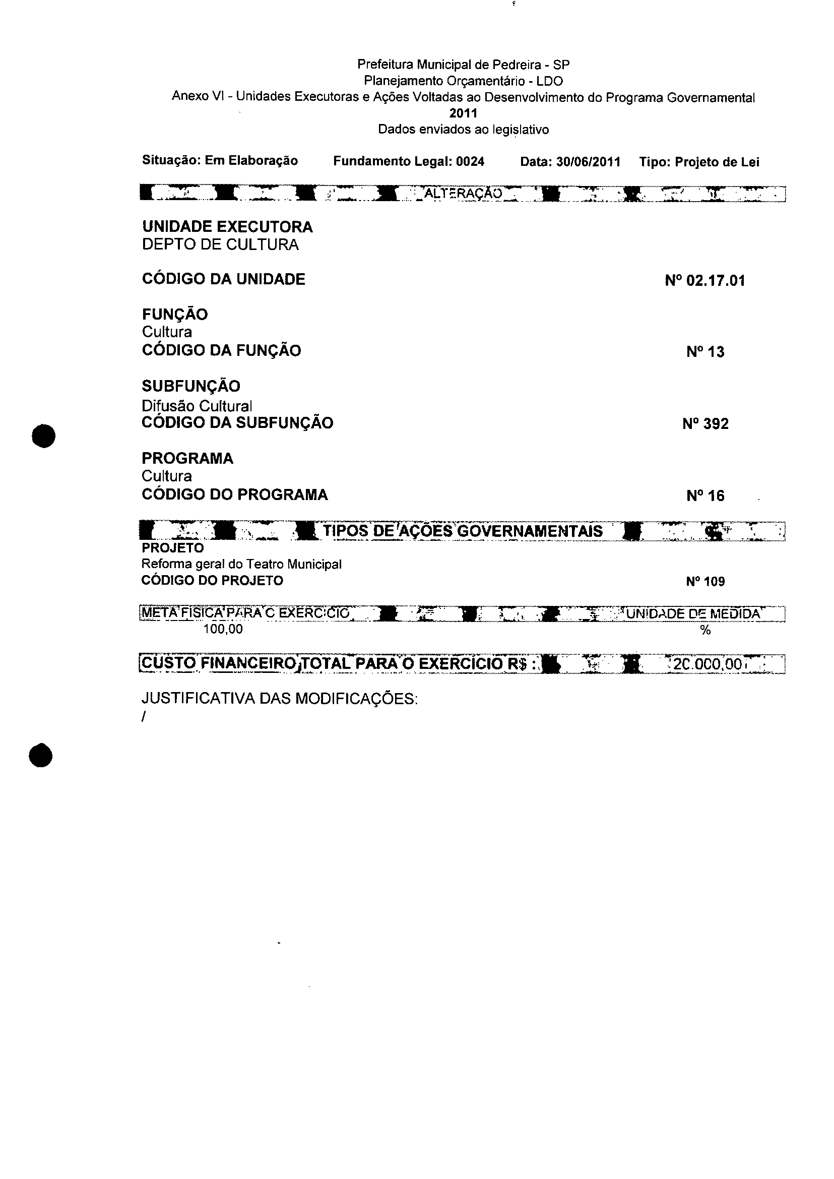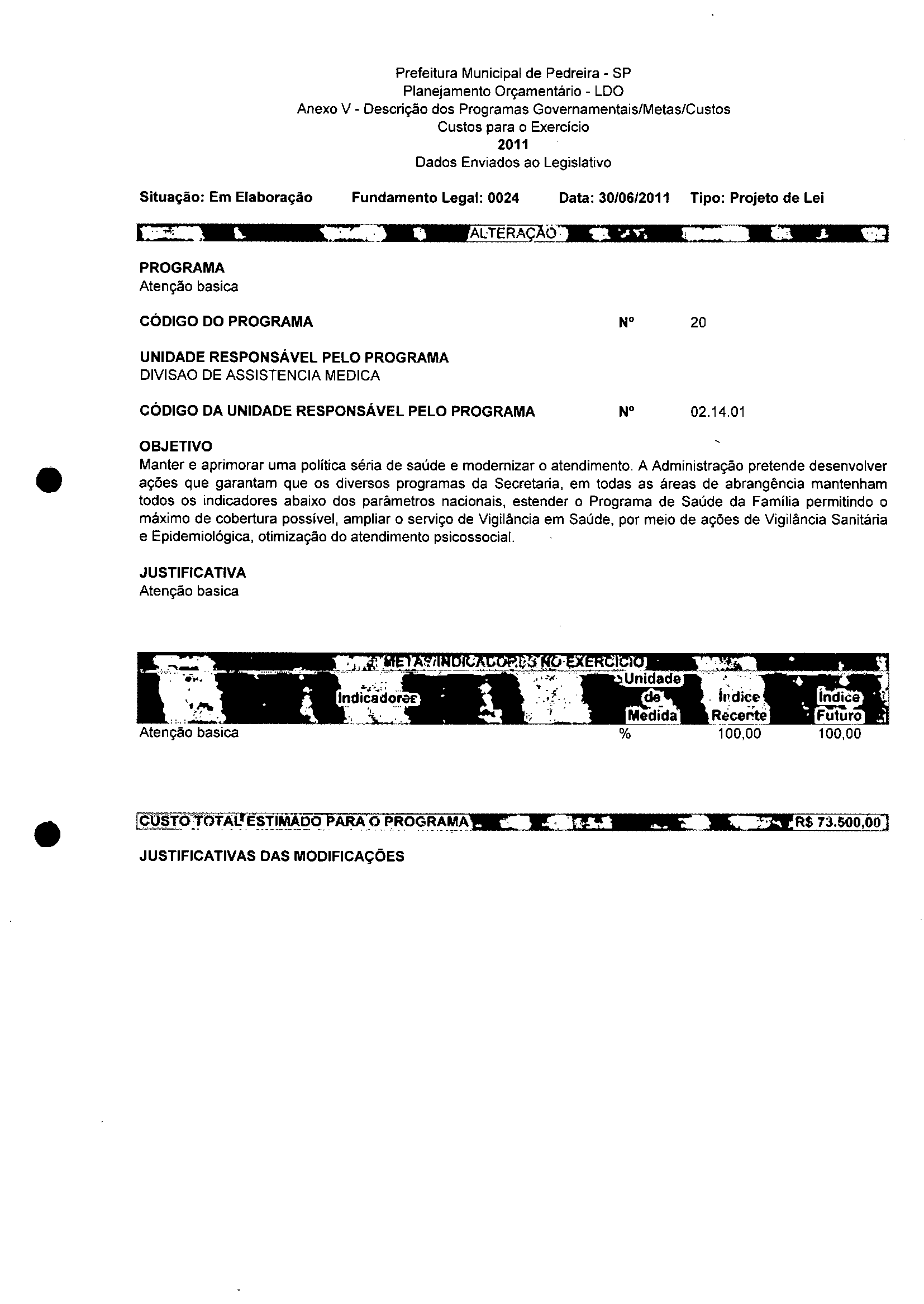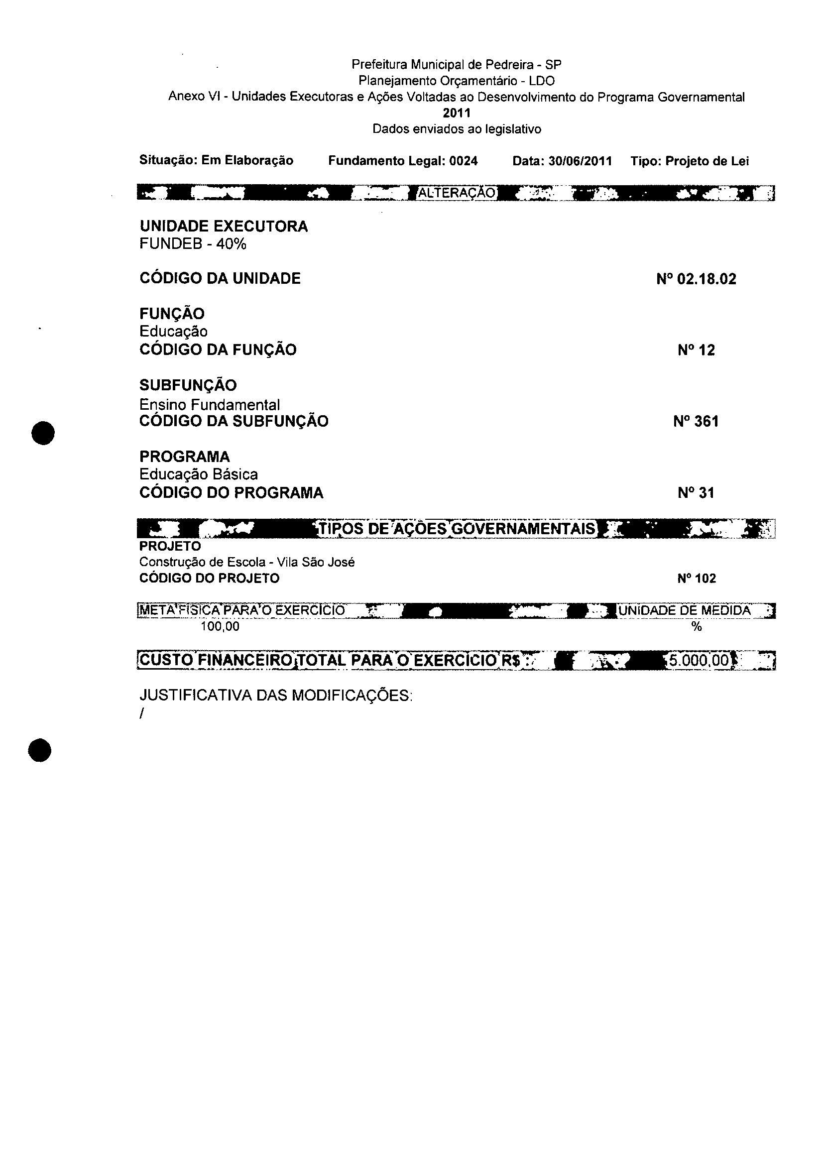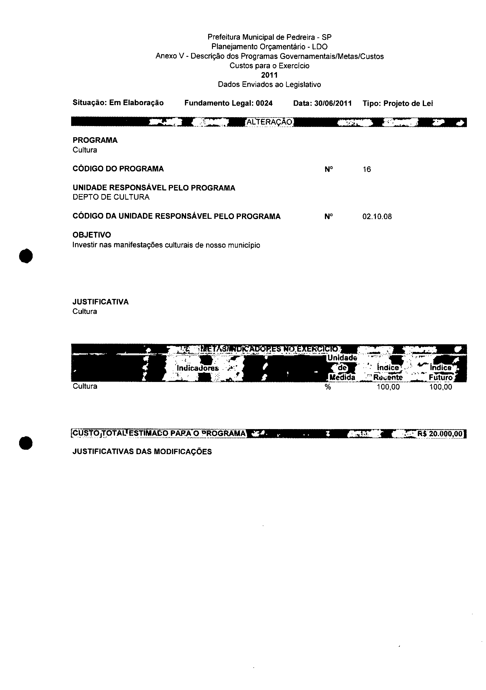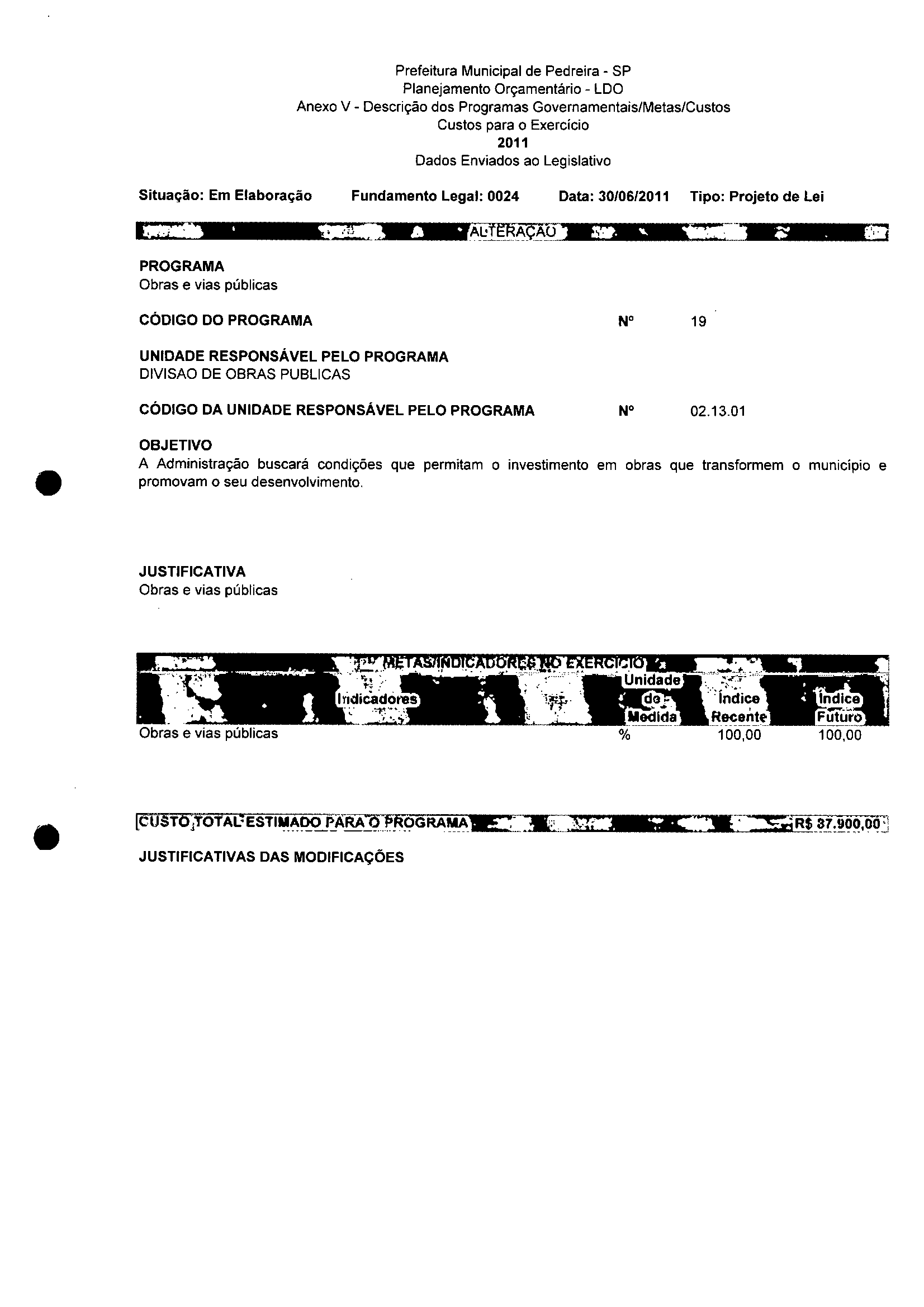 Ementa: Dispõe sobre a alteração dos anexos II e III - da Lei nº 2977, de 5 de novembro de 2009 - Plano Plurianual para o Quadriênio de 2010/2013 e a alteração dos anexos Ve VI -da Lei n° 3040, de 10 de junho de 2010 -Lei de Diretrizes Orçamentárias para o exercício de 2011.