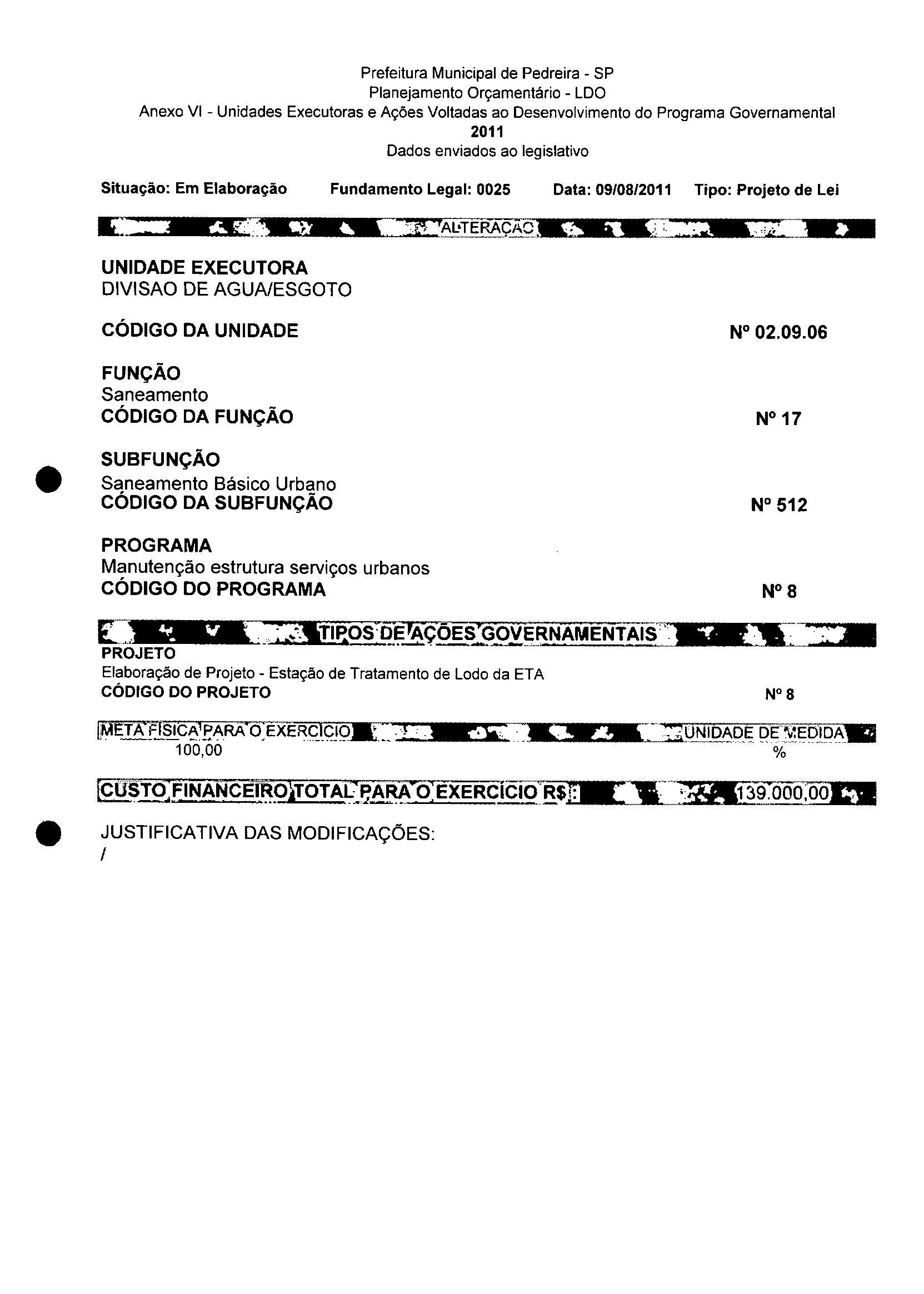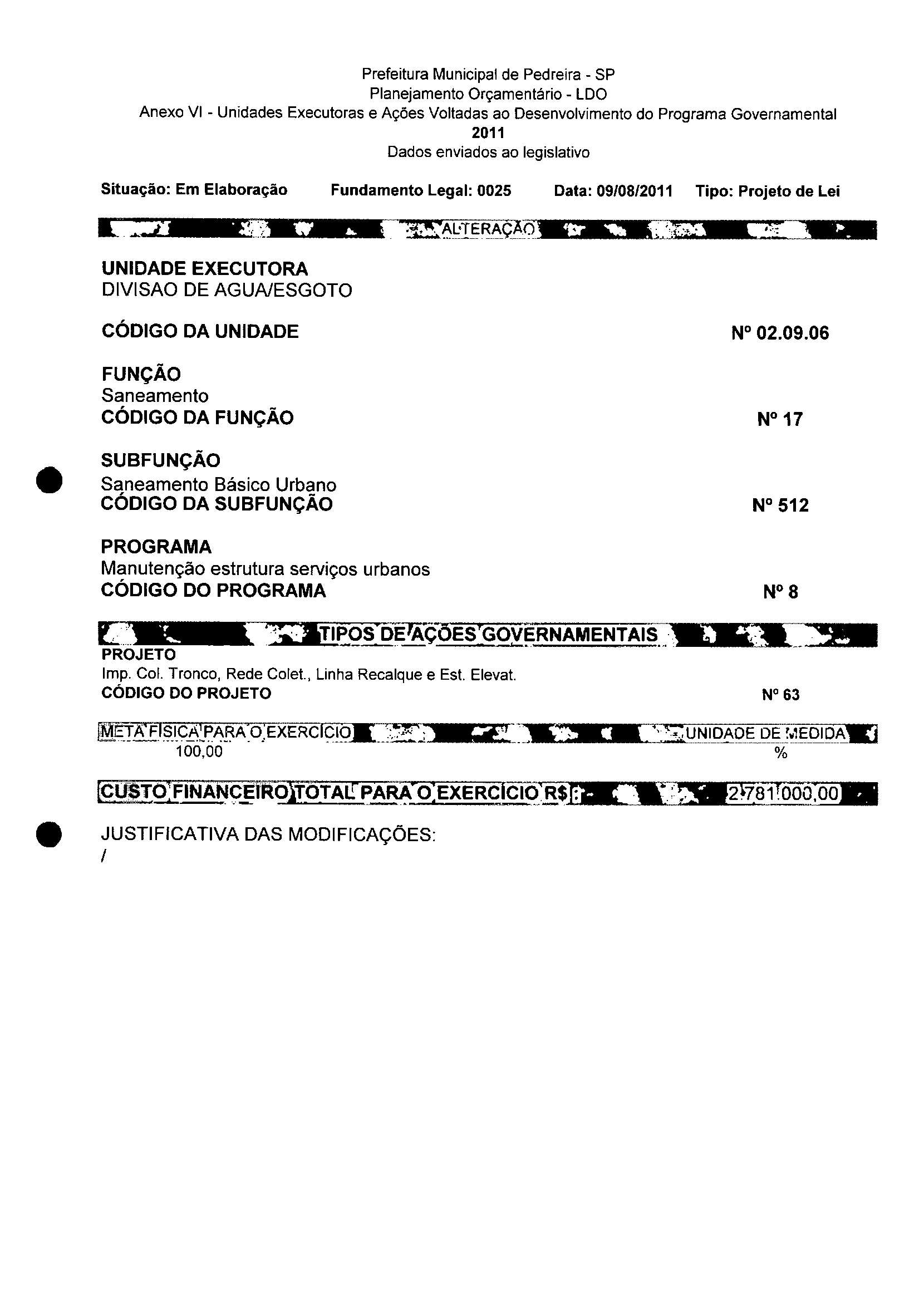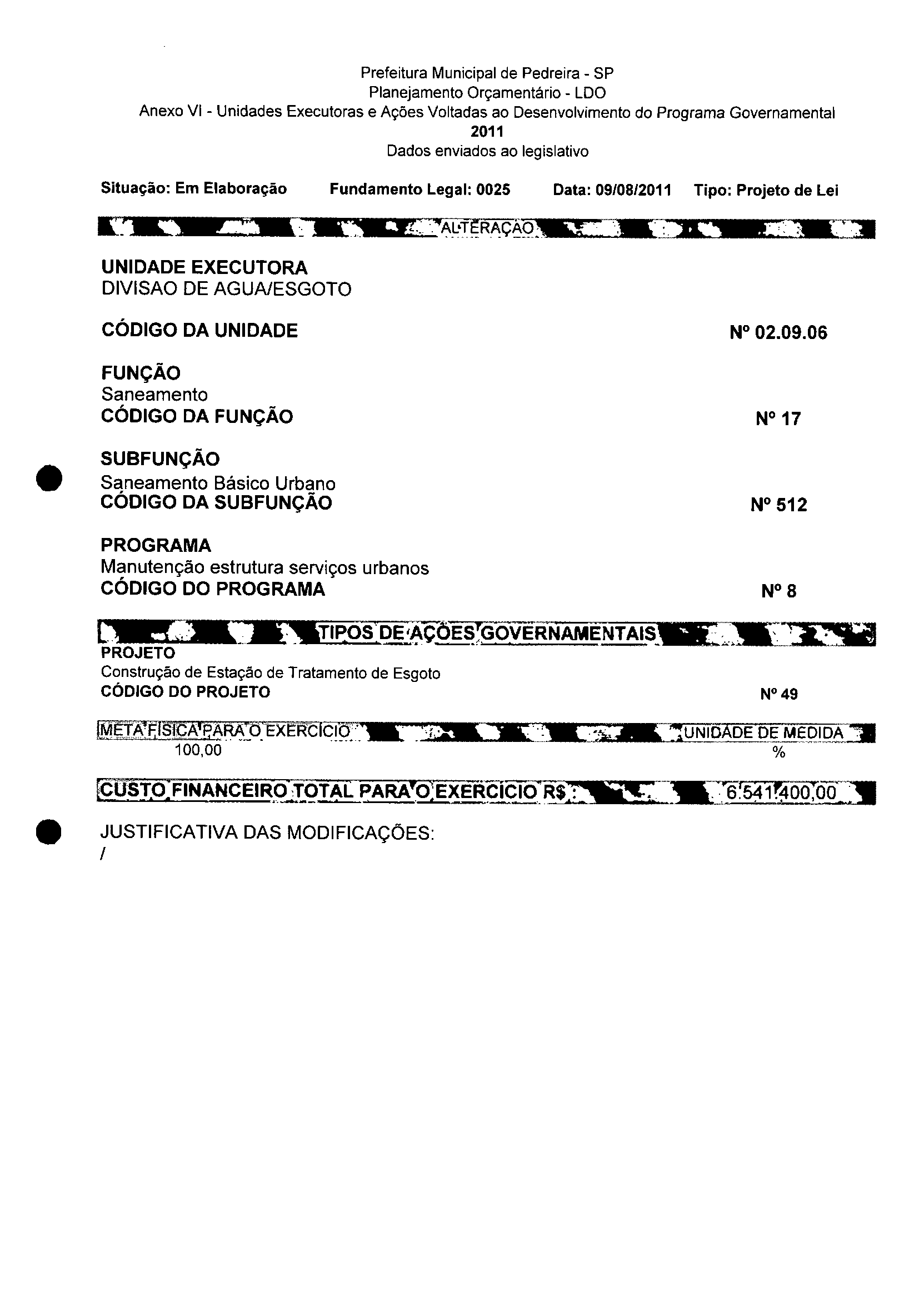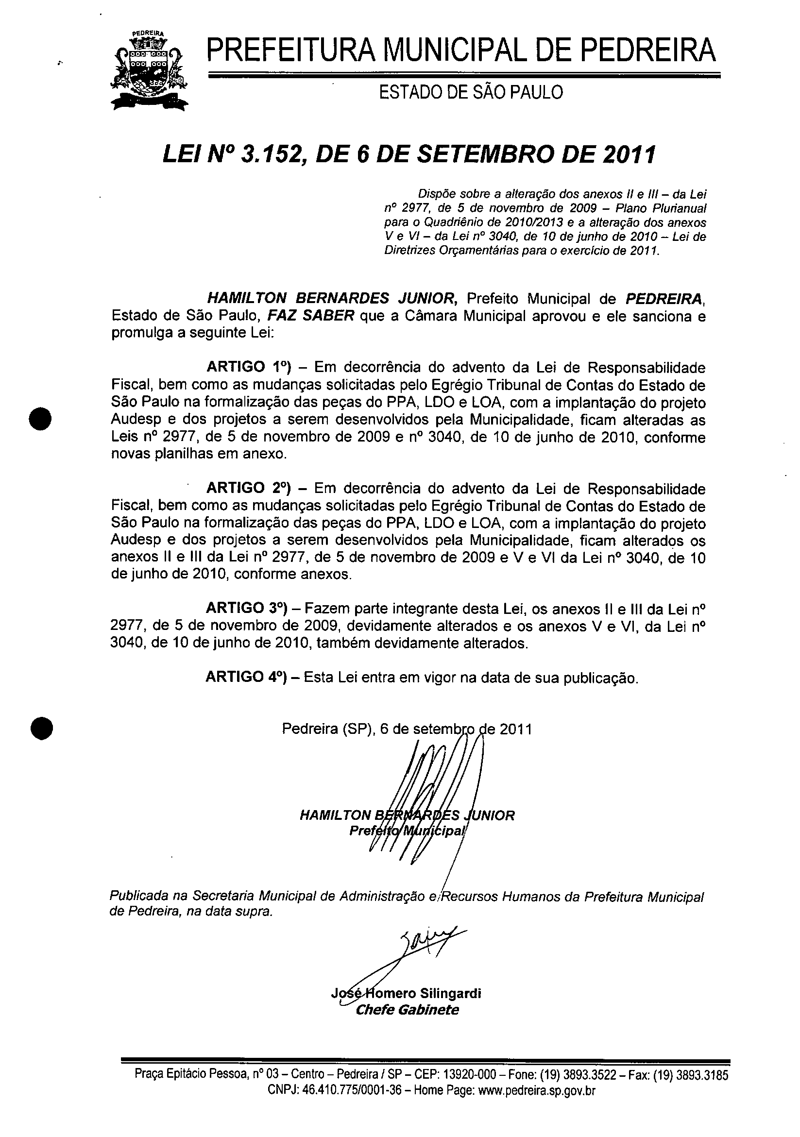 Lei Municipal - N° 3152 de 06/09/2011