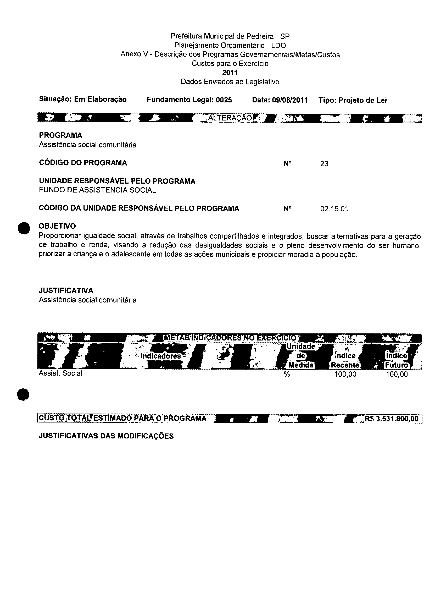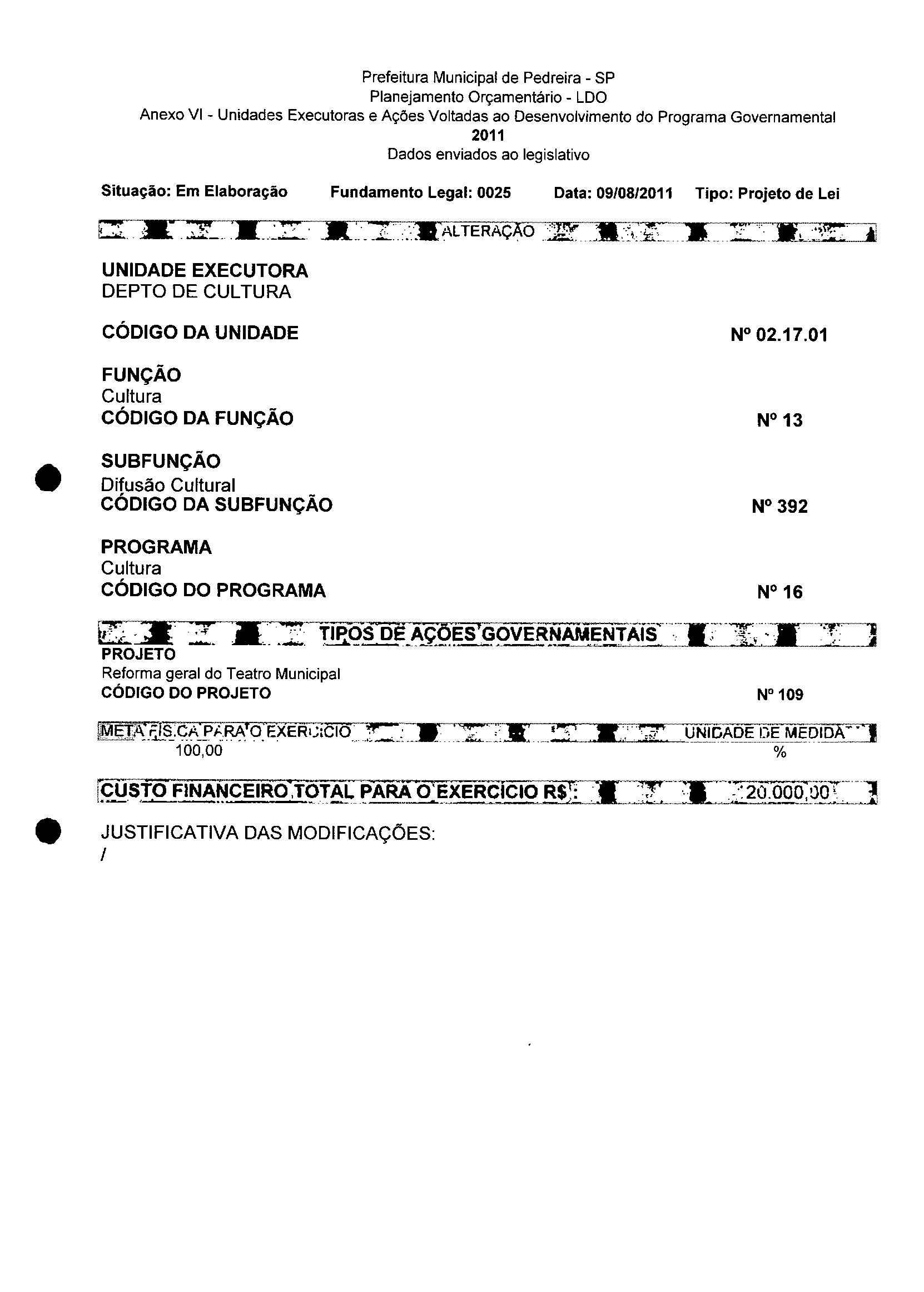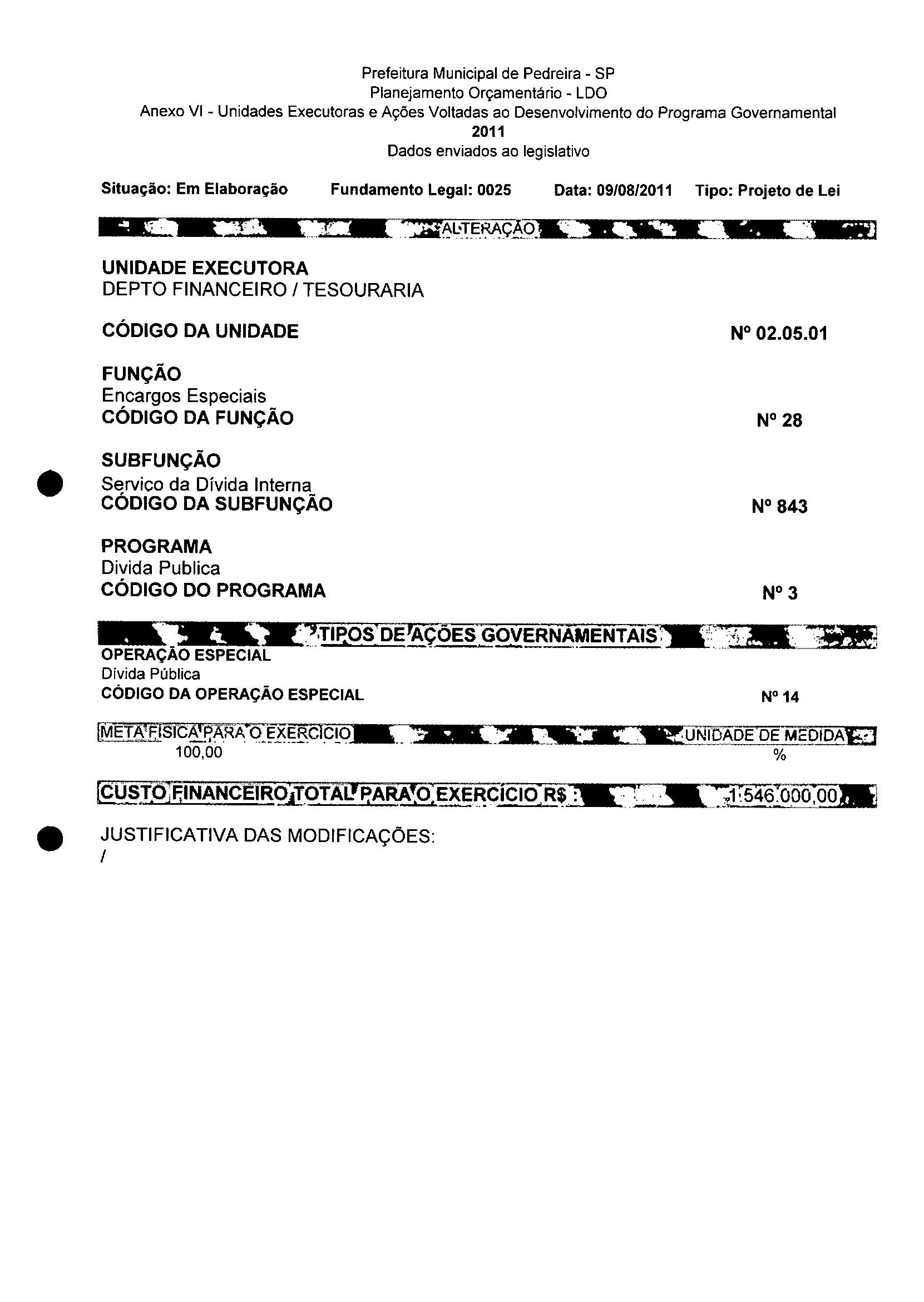 Lei Municipal - N° 3152 de 06/09/2011