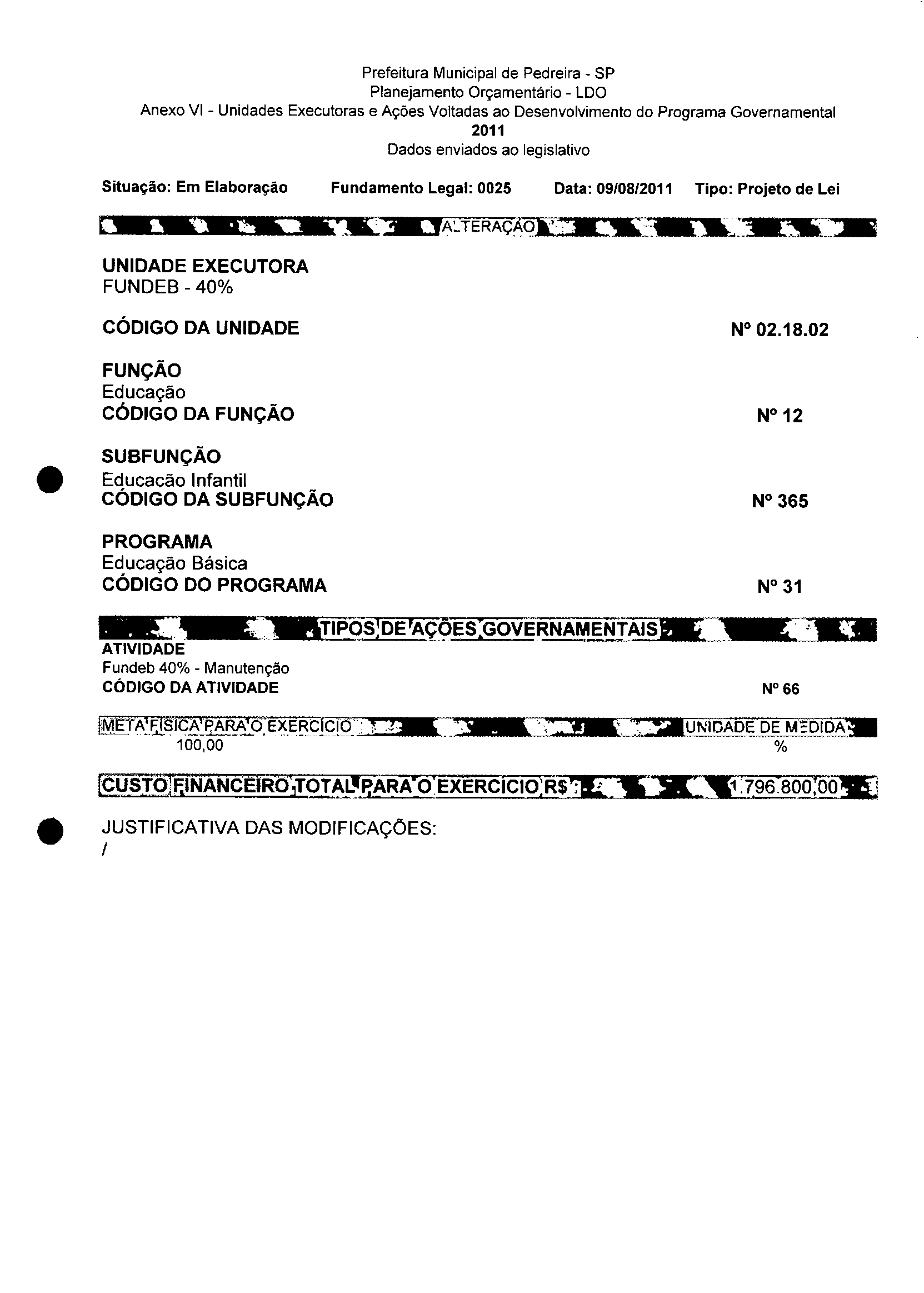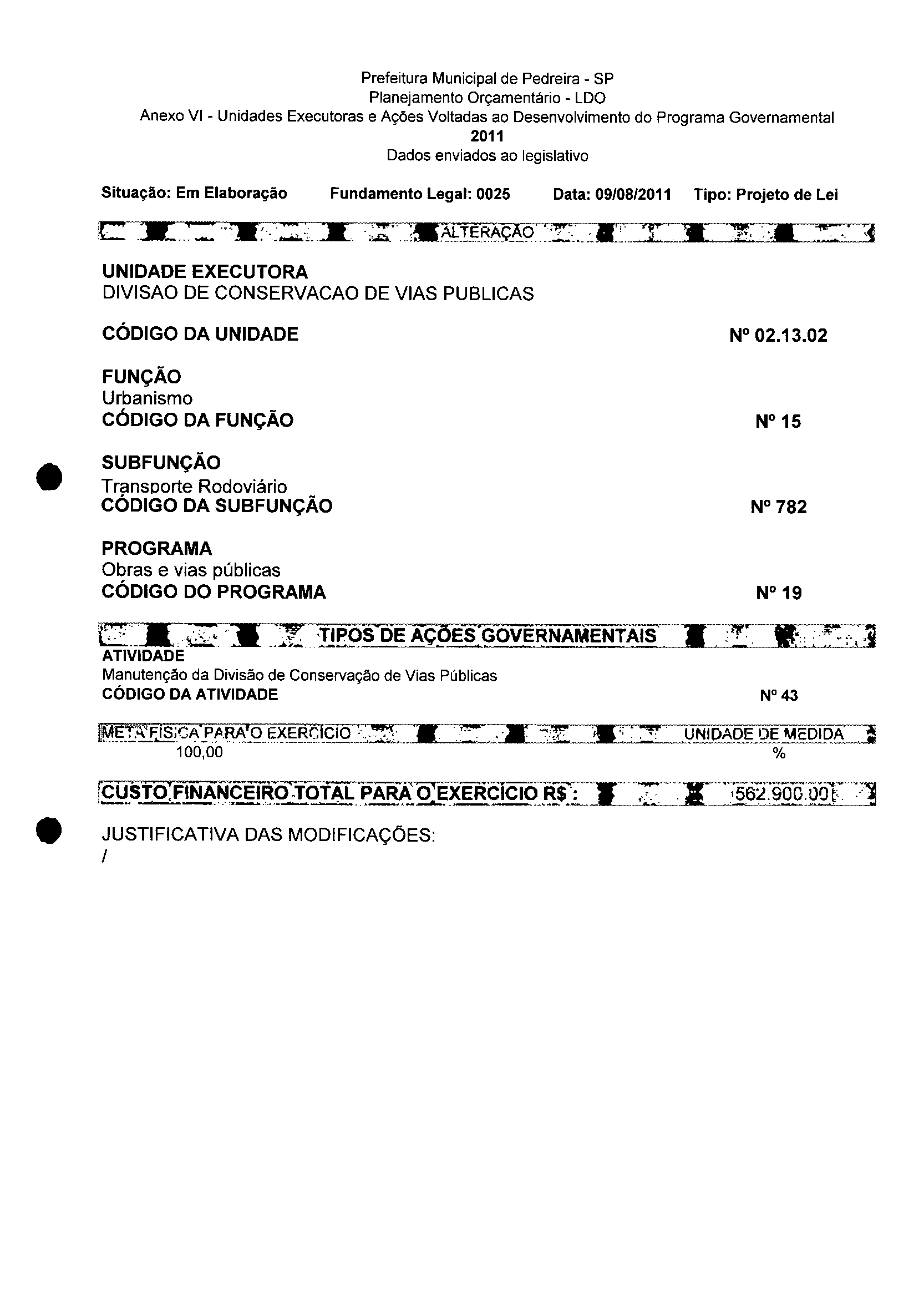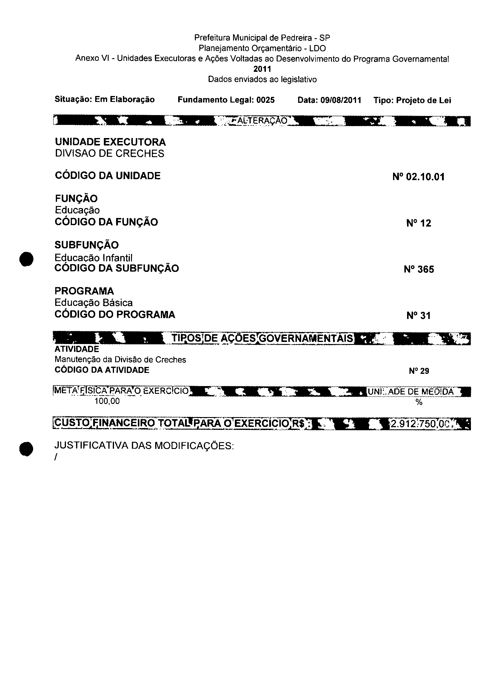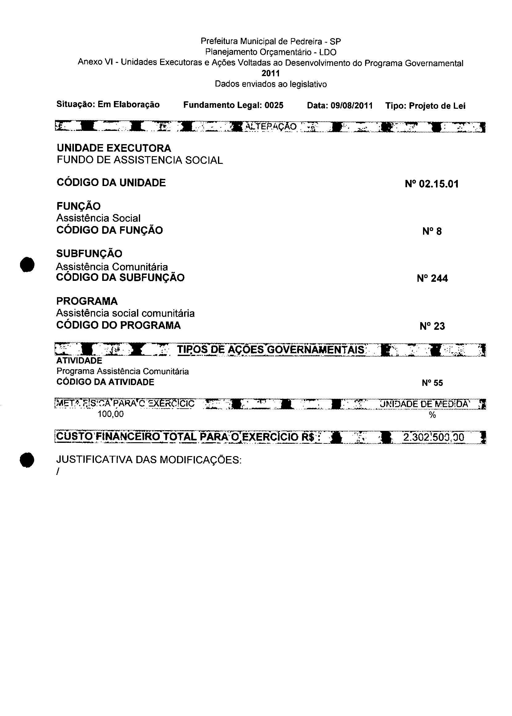 Lei Municipal - N° 3152 de 06/09/2011