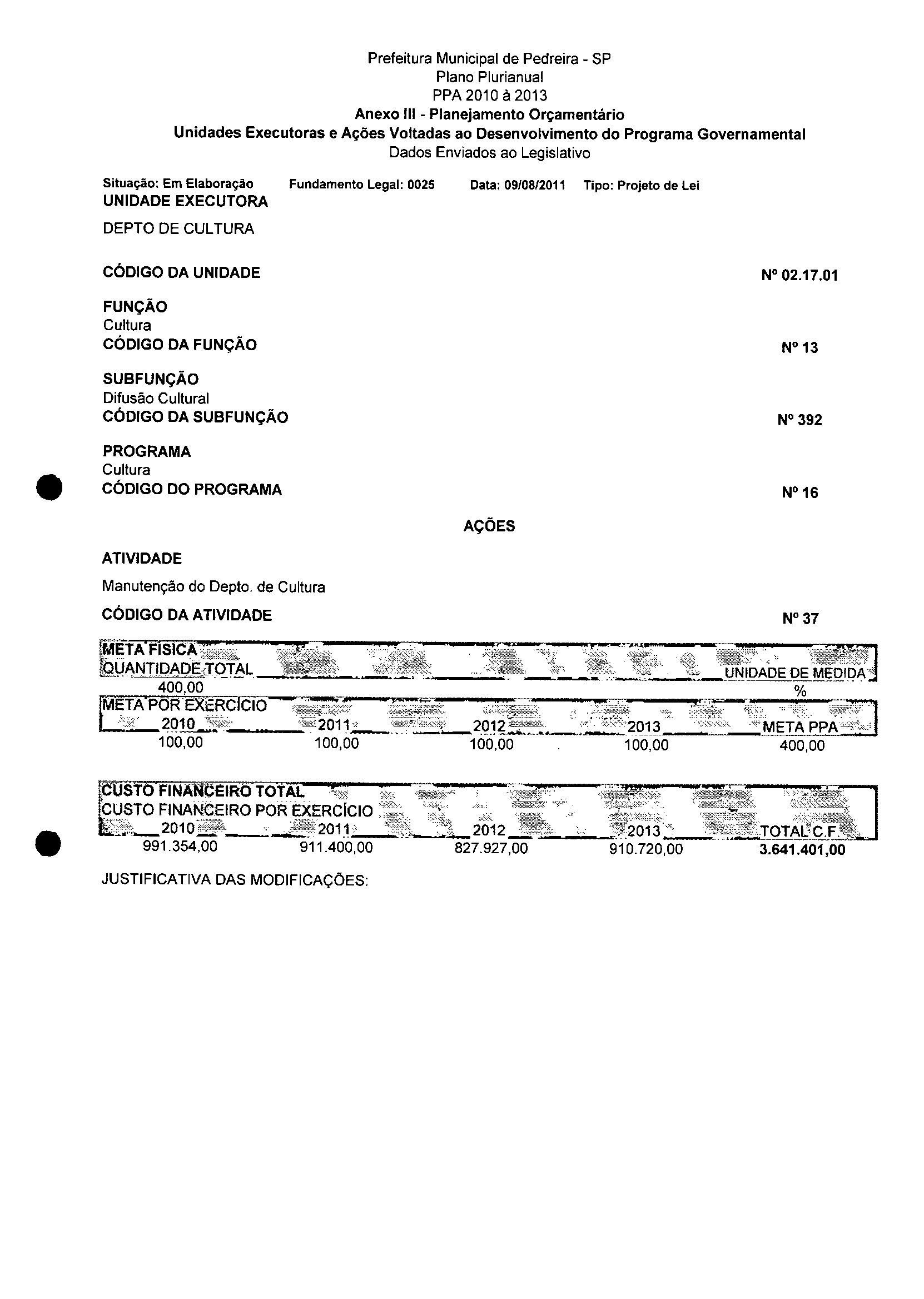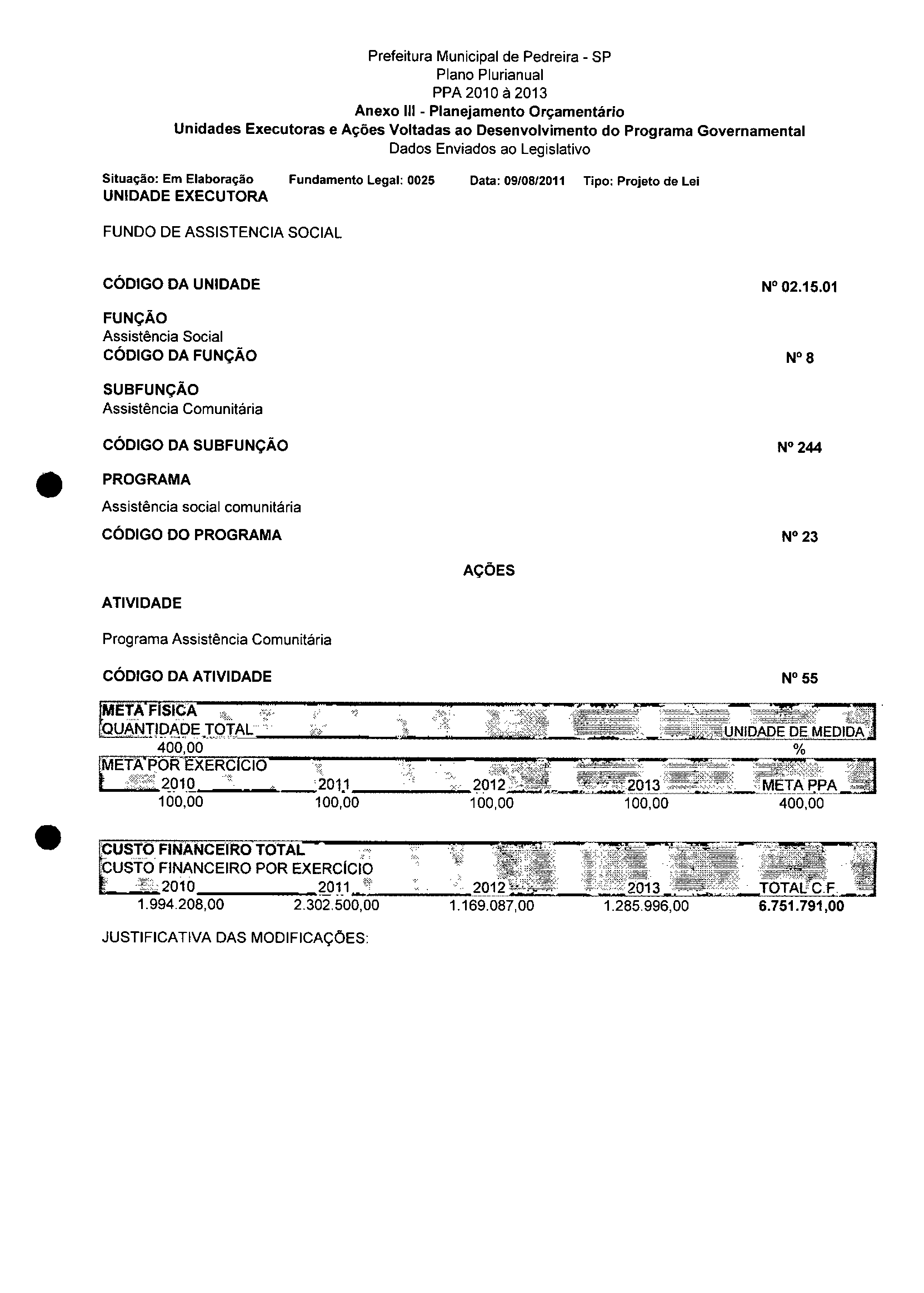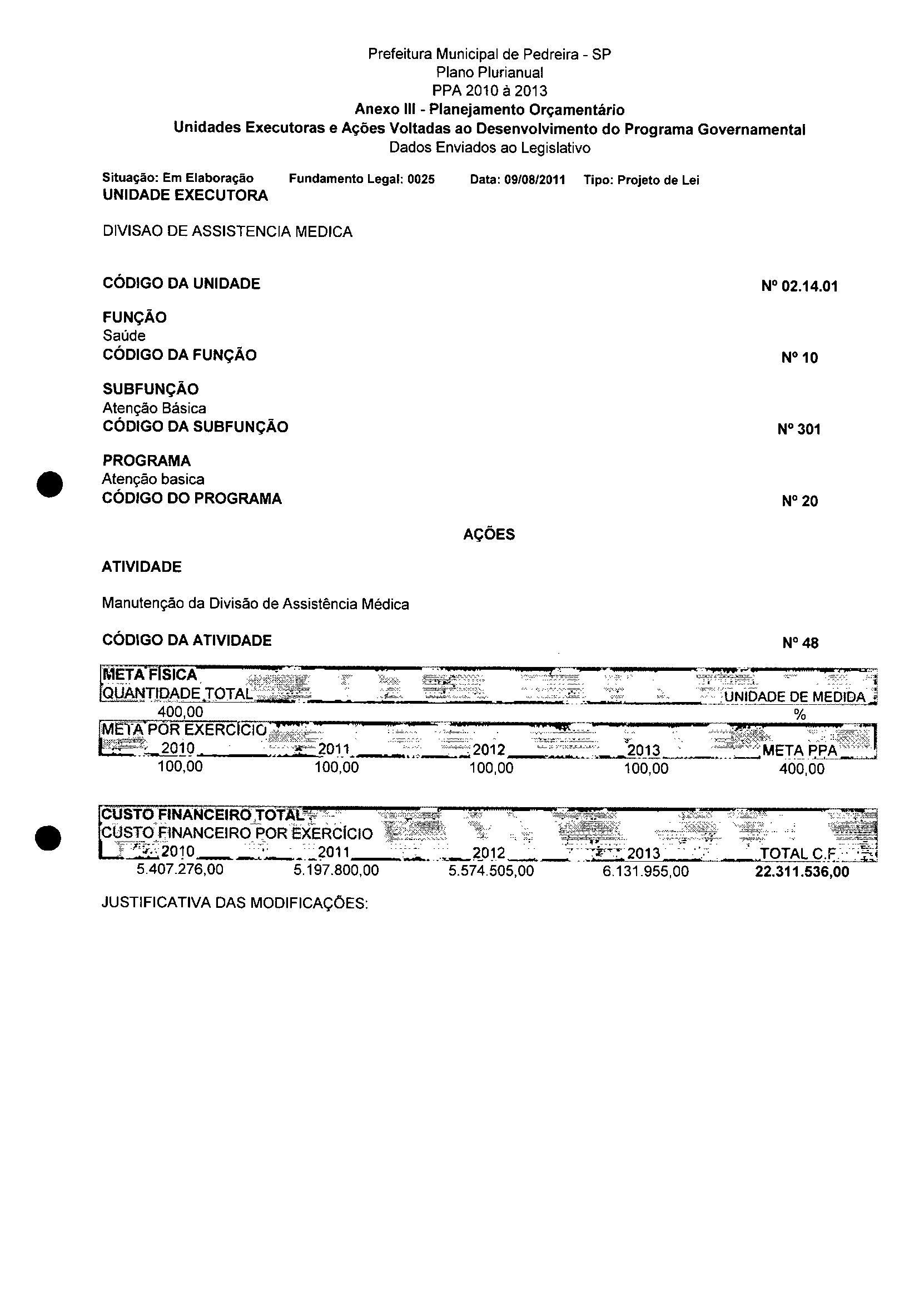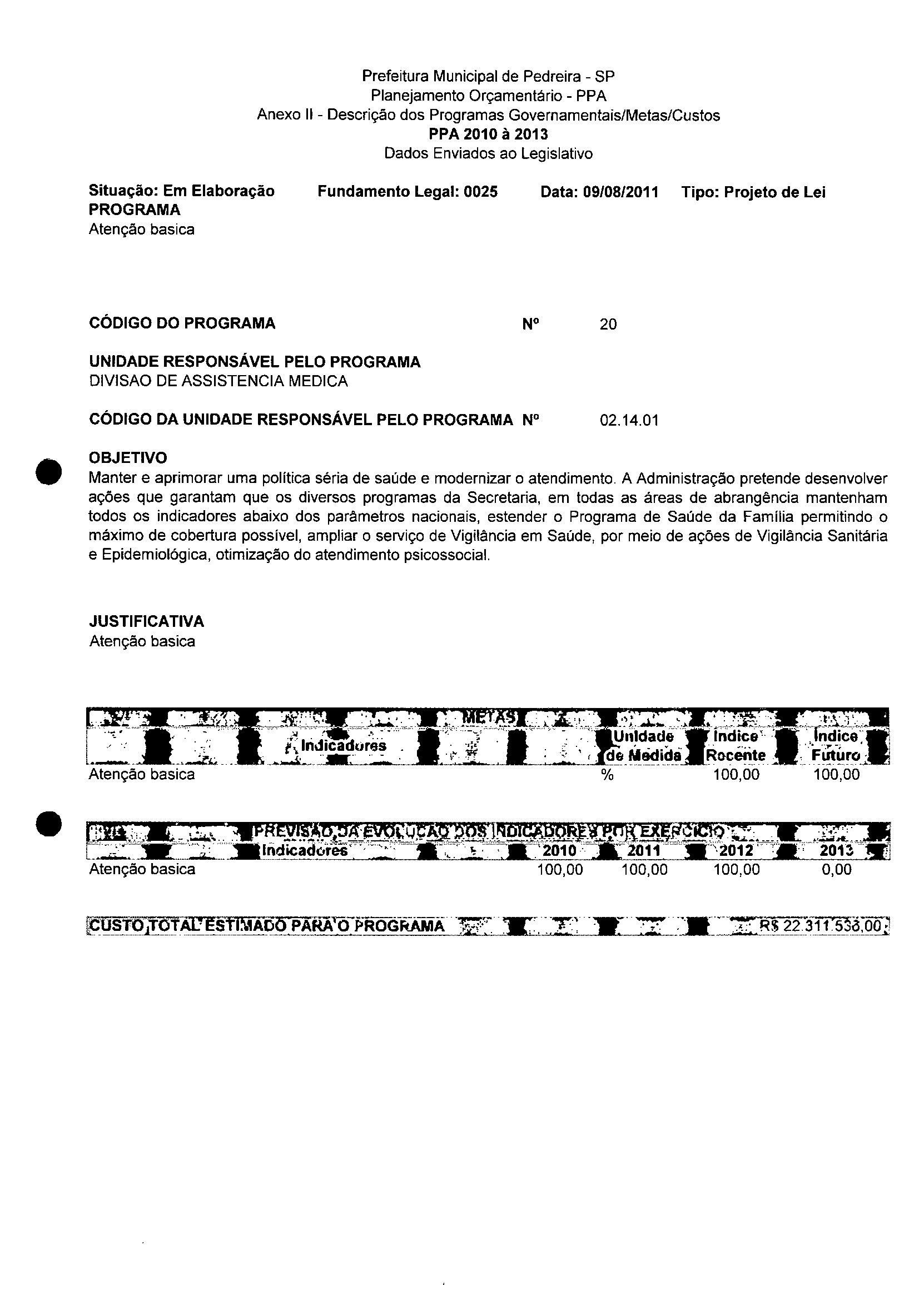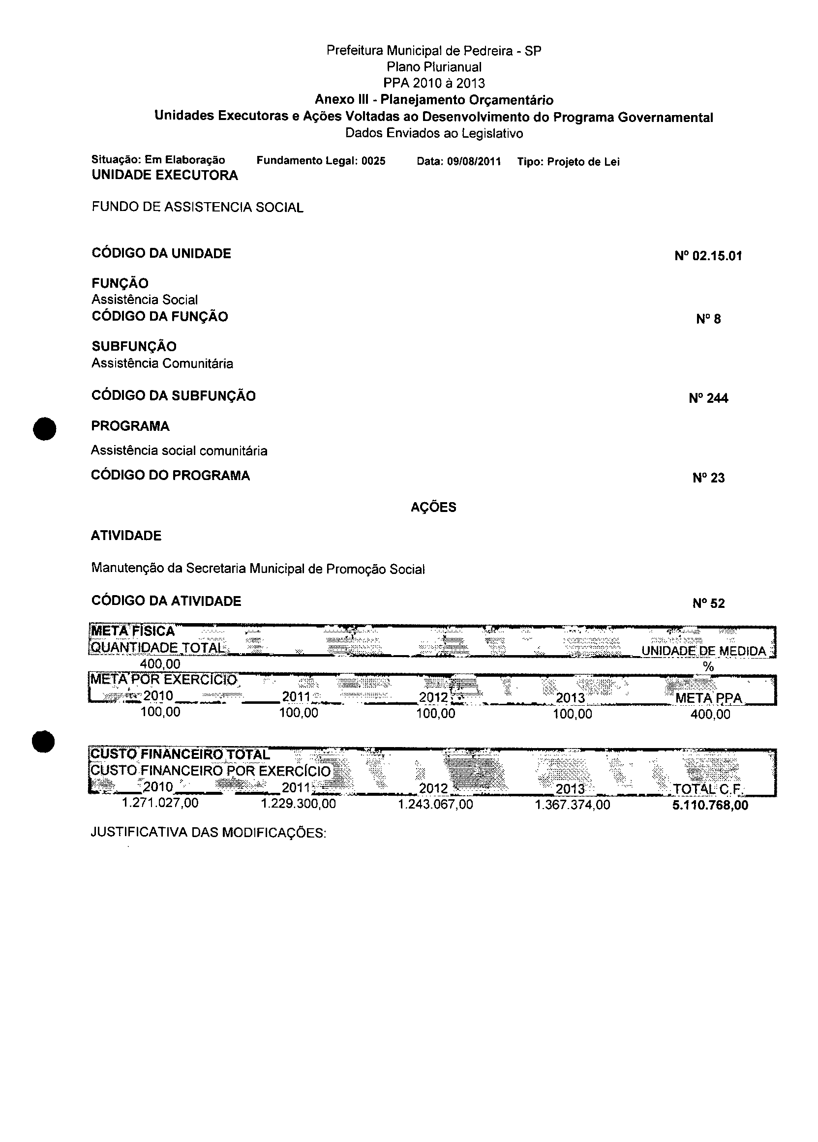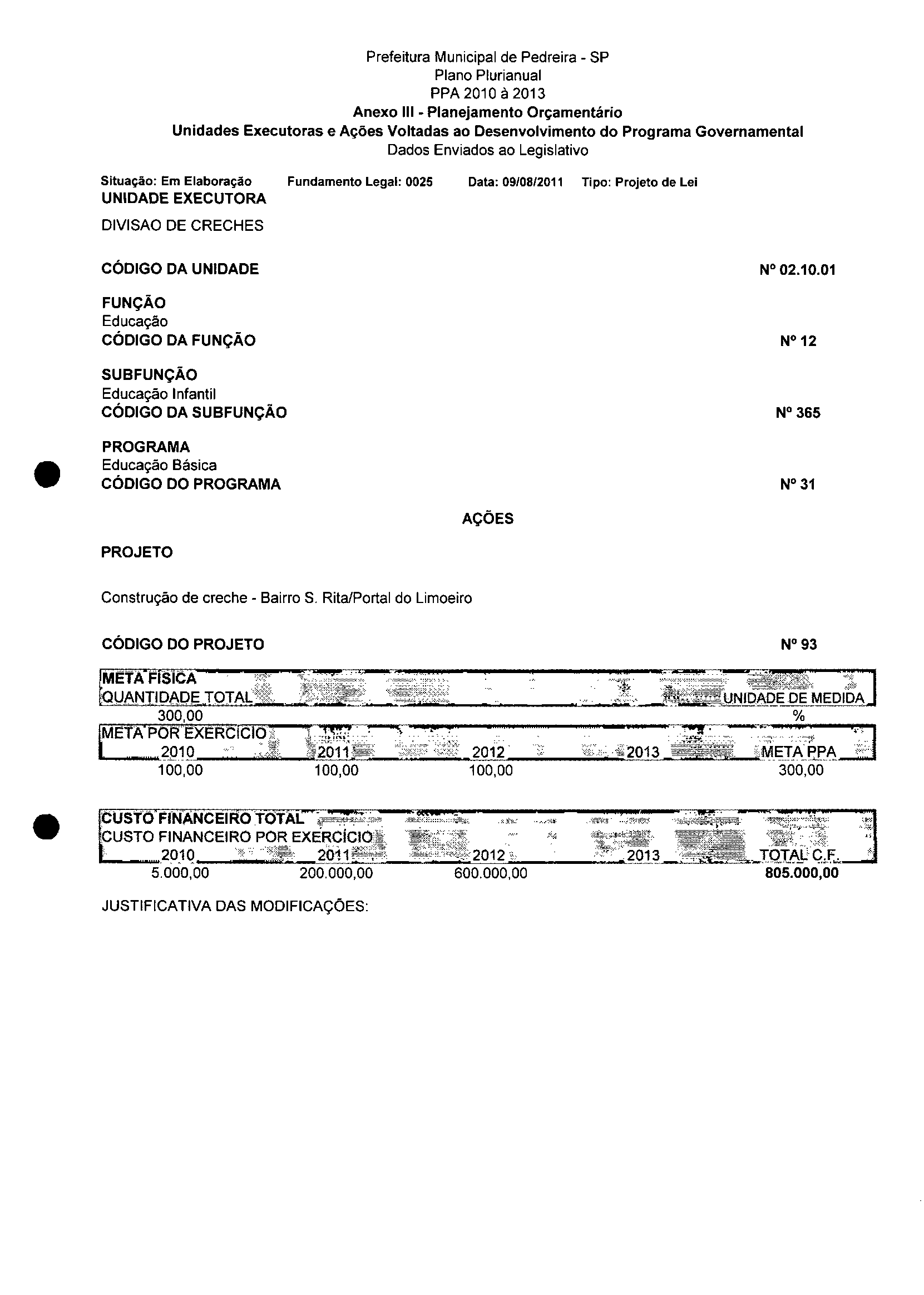Ementa: Dispõe sobre a alteração dos anexos II e III -da Lei nº 2977, de 5 de novembro de 2009 -Plano Plurianual para o Quadriênio de 2010/2013 e a alteração dos anexos V e VI -da Lei n° 3040, de 10 de junho de 2010 -Lei de Diretrizes Orçamentárias para o exercício de 2011.