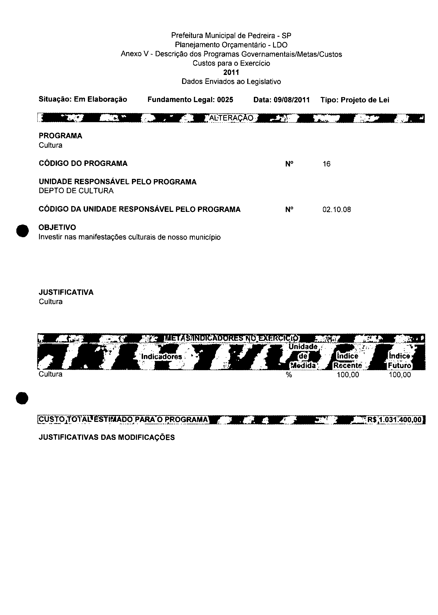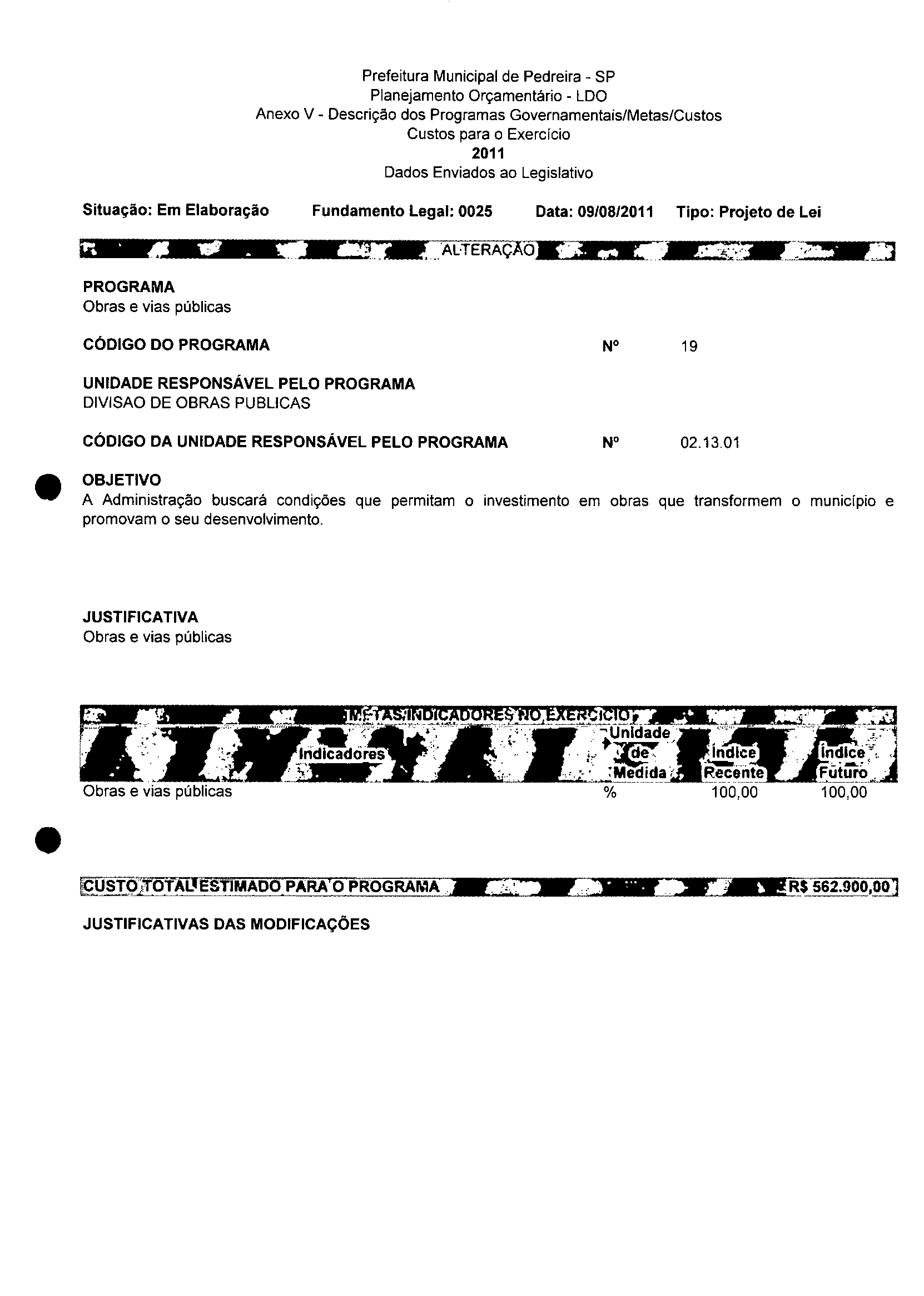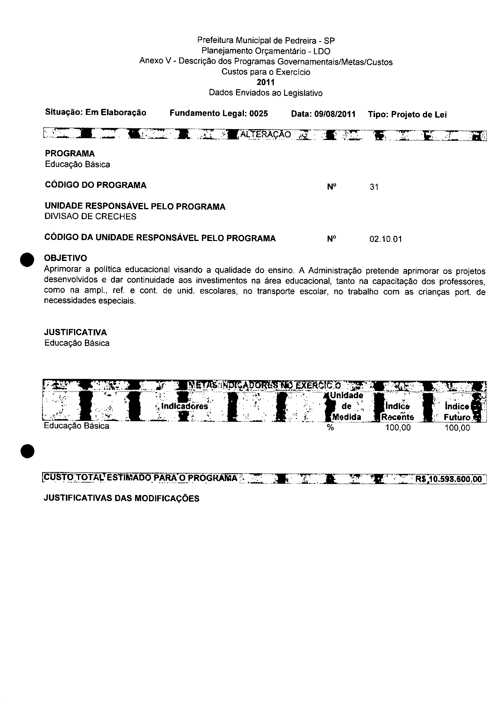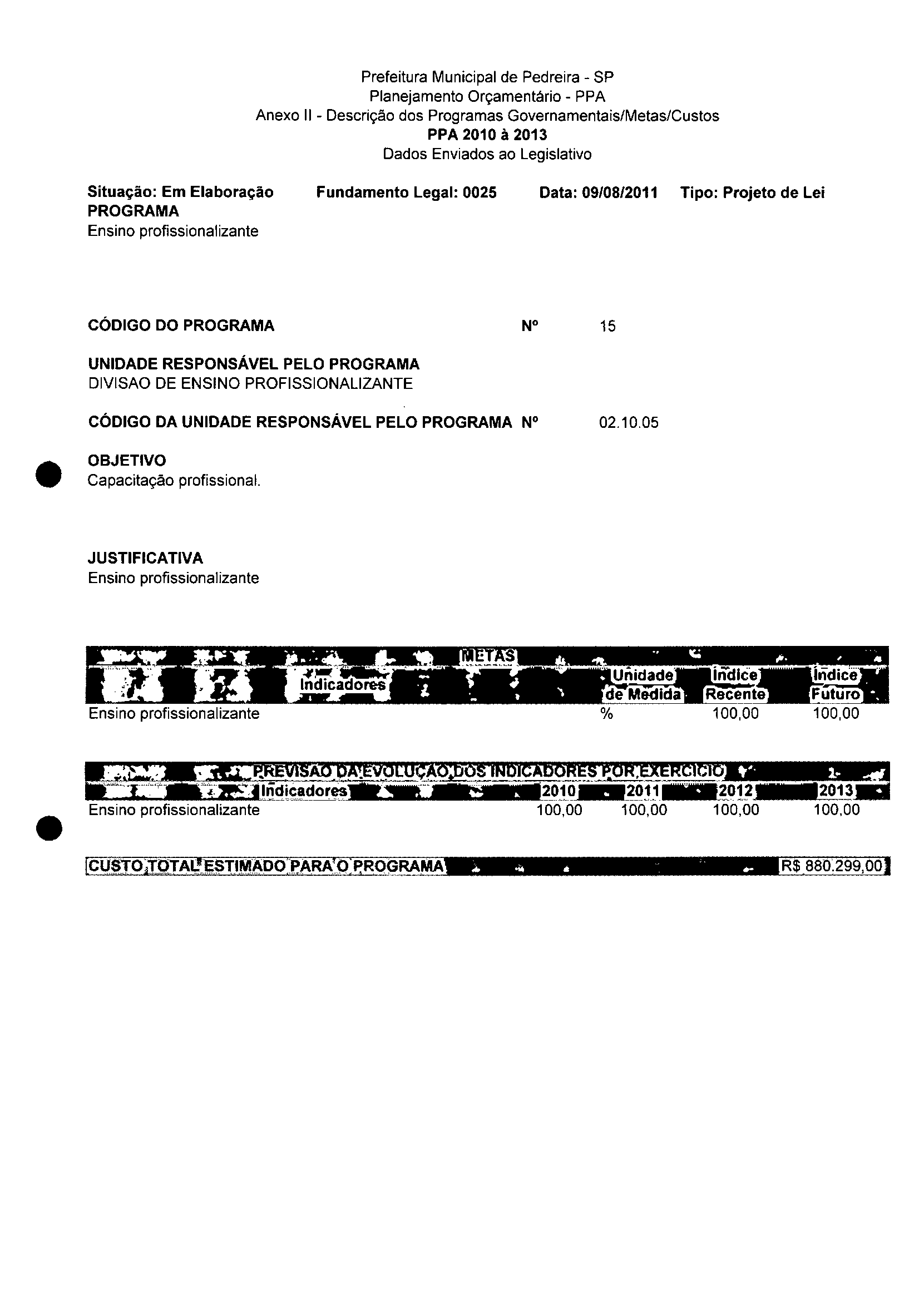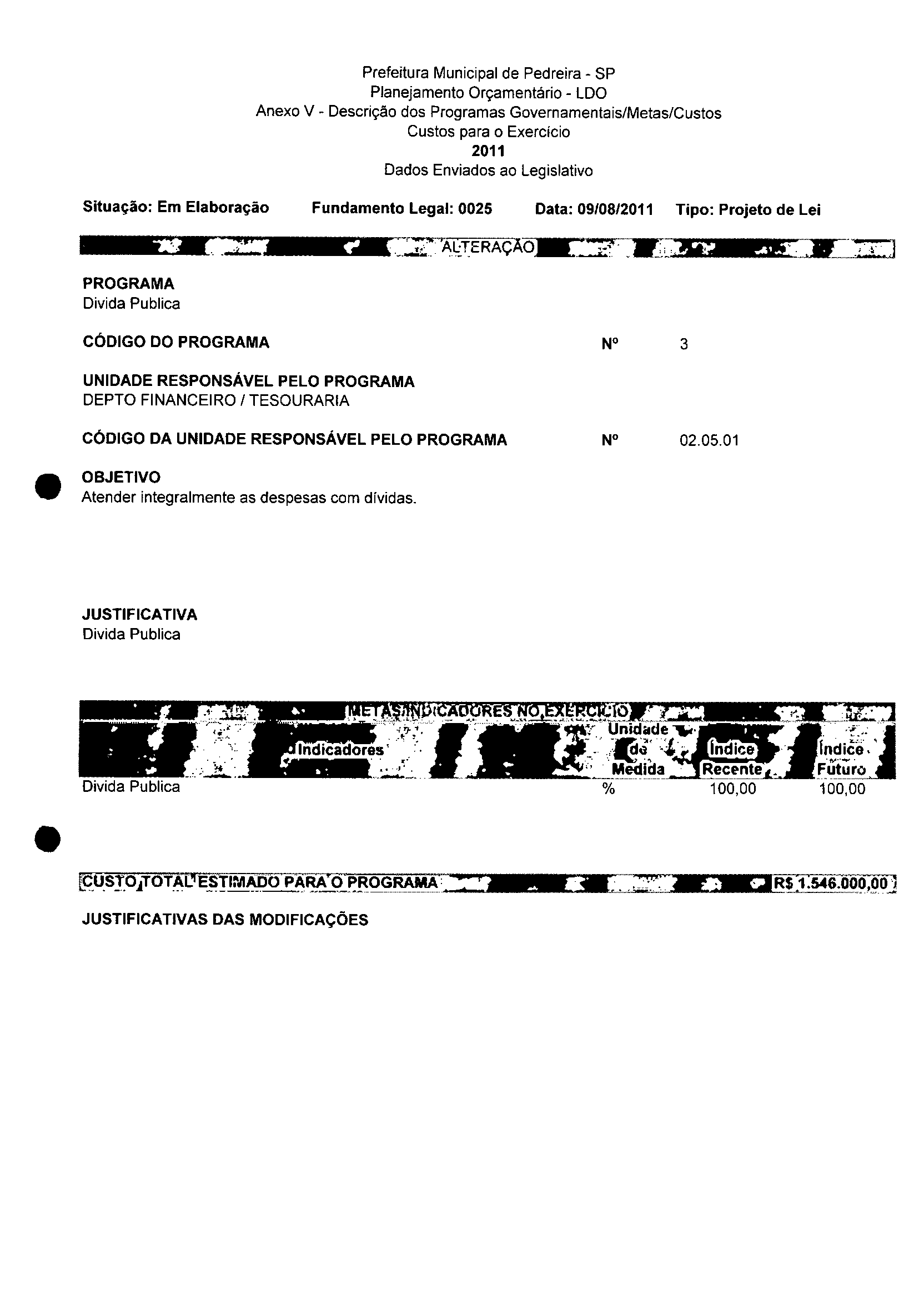 Ementa: Dispõe sobre a alteração dos anexos II e III -da Lei nº 2977, de 5 de novembro de 2009 -Plano Plurianual para o Quadriênio de 2010/2013 e a alteração dos anexos V e VI -da Lei n° 3040, de 10 de junho de 2010 -Lei de Diretrizes Orçamentárias para o exercício de 2011.