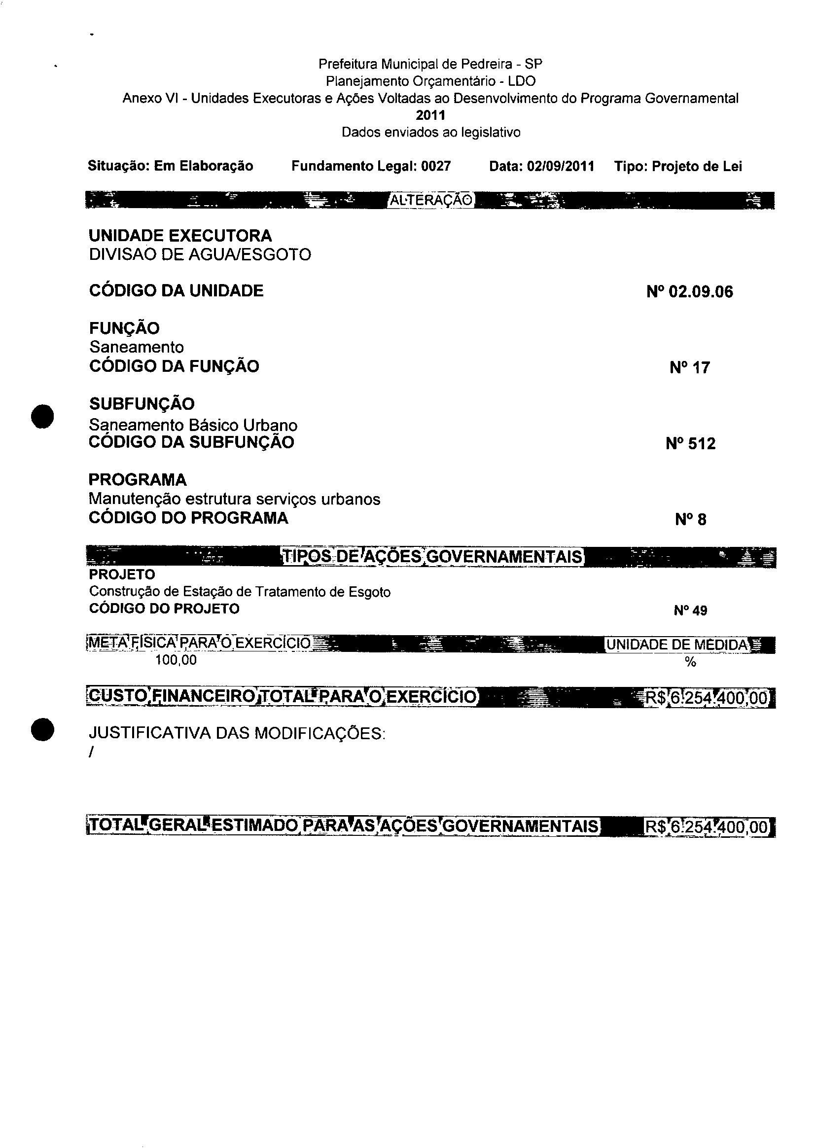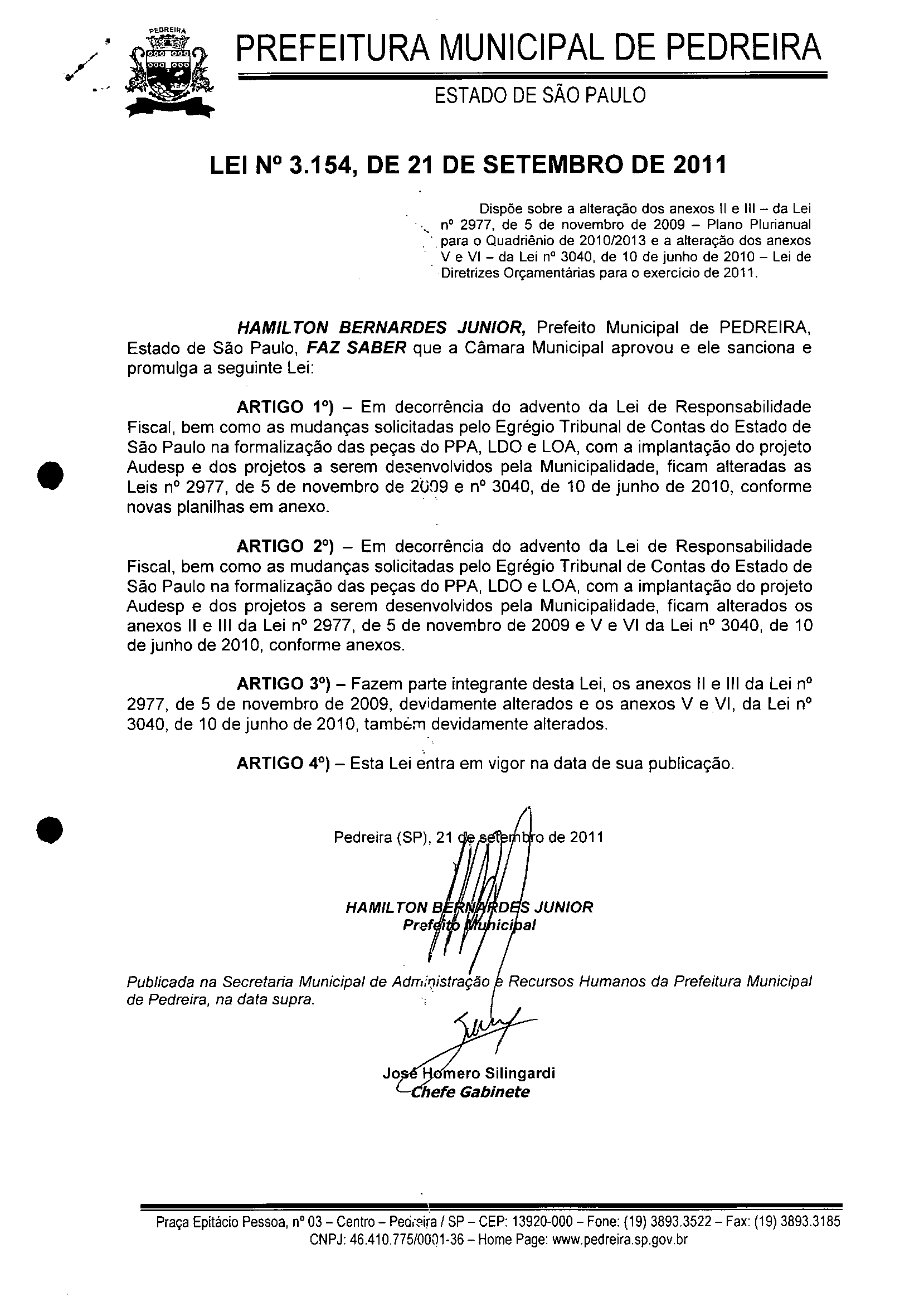 Lei Municipal - N° 3154 de 21/09/2011