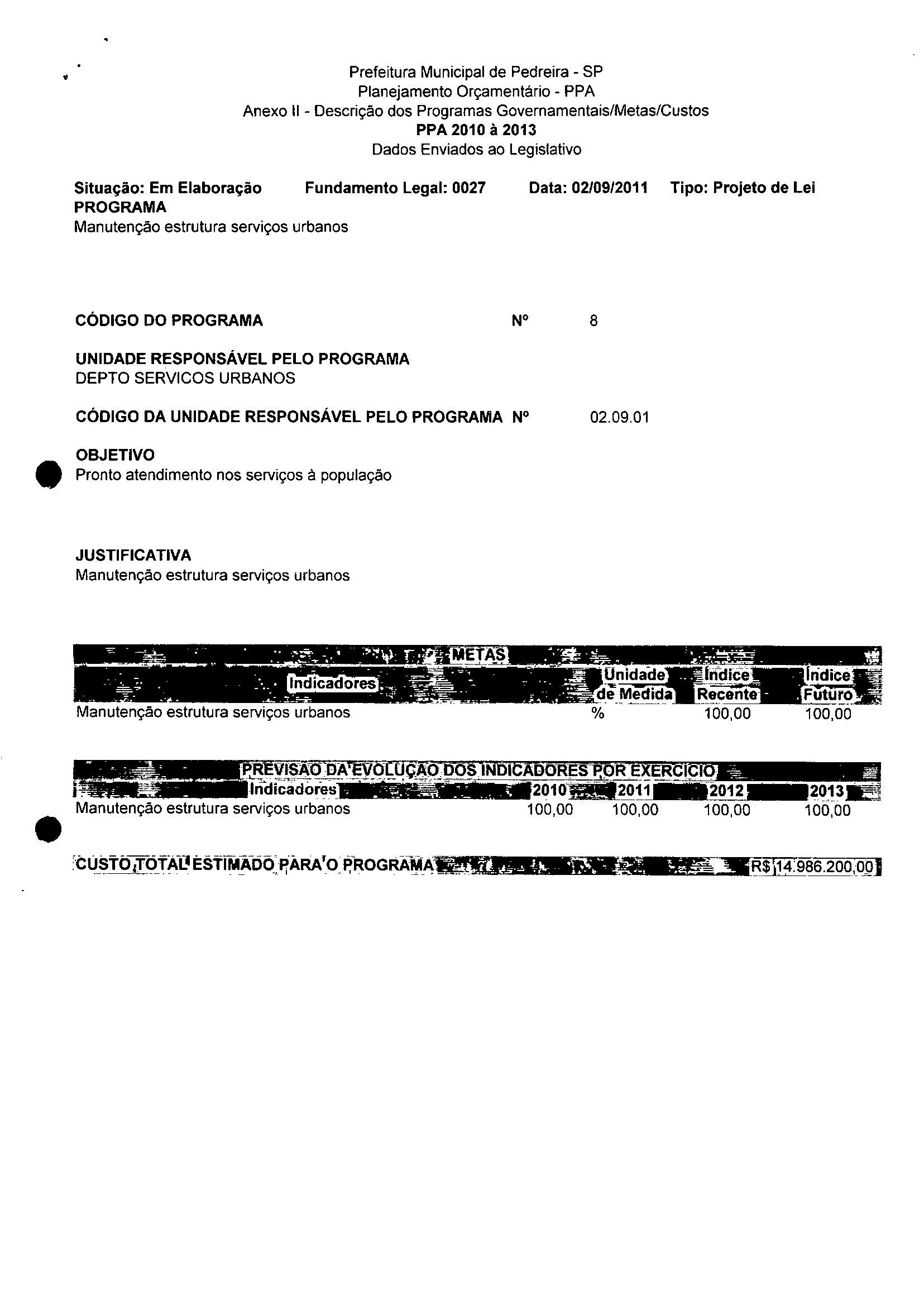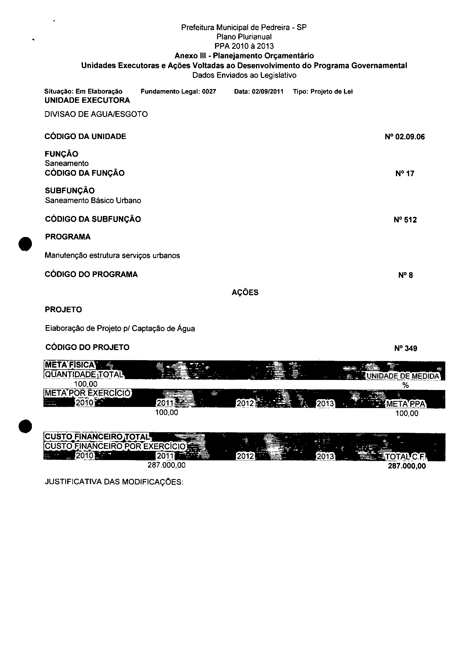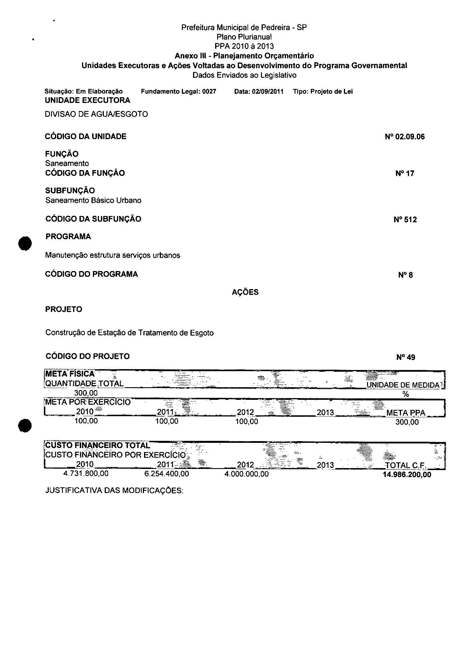 Ementa: Dispõe sobre a alteração dos anexos II e III -da Lei . nº 2977, de 5 de novembro de 2009 -Plano Plurianual - para o Quadriênio de 2010/2013 e a alteração dos anexos V e VI -da Lei nº 3040, de 10 de junho de 2010 -Lei de Diretrizes Orçamentárias para o exercício de 2011.