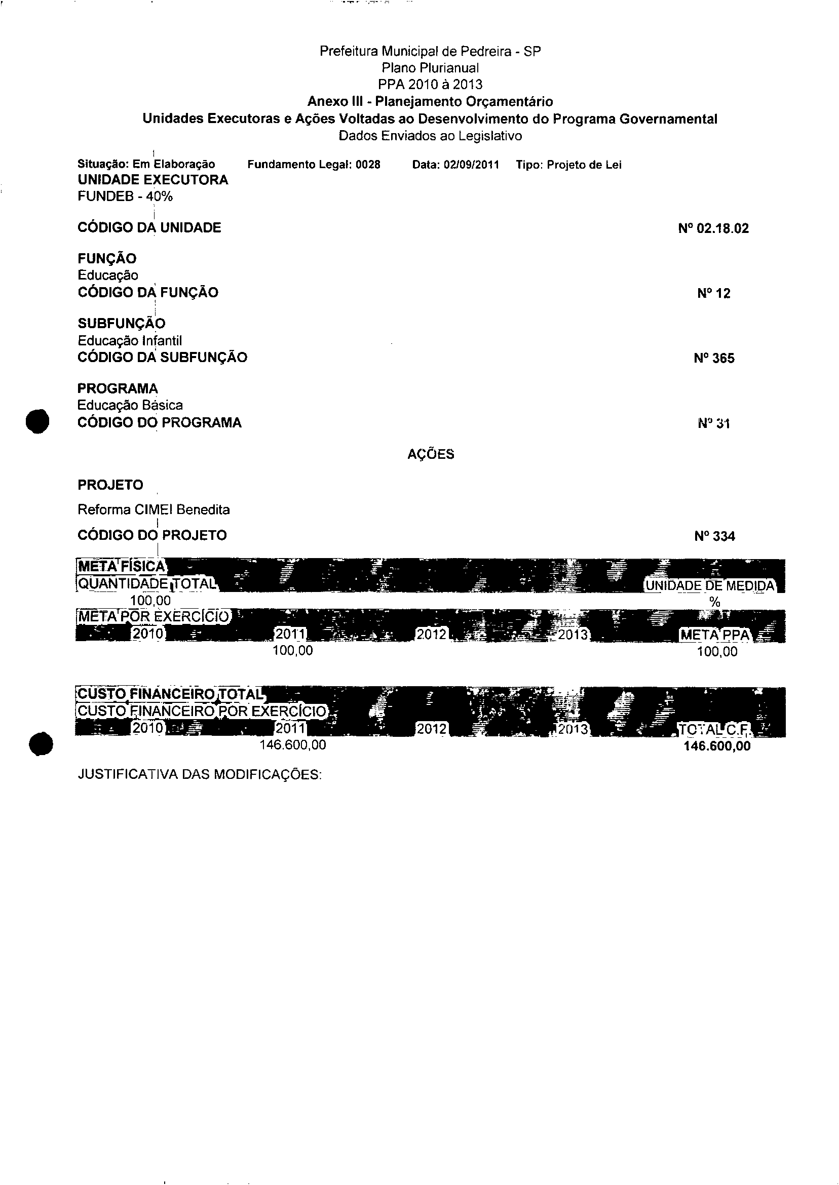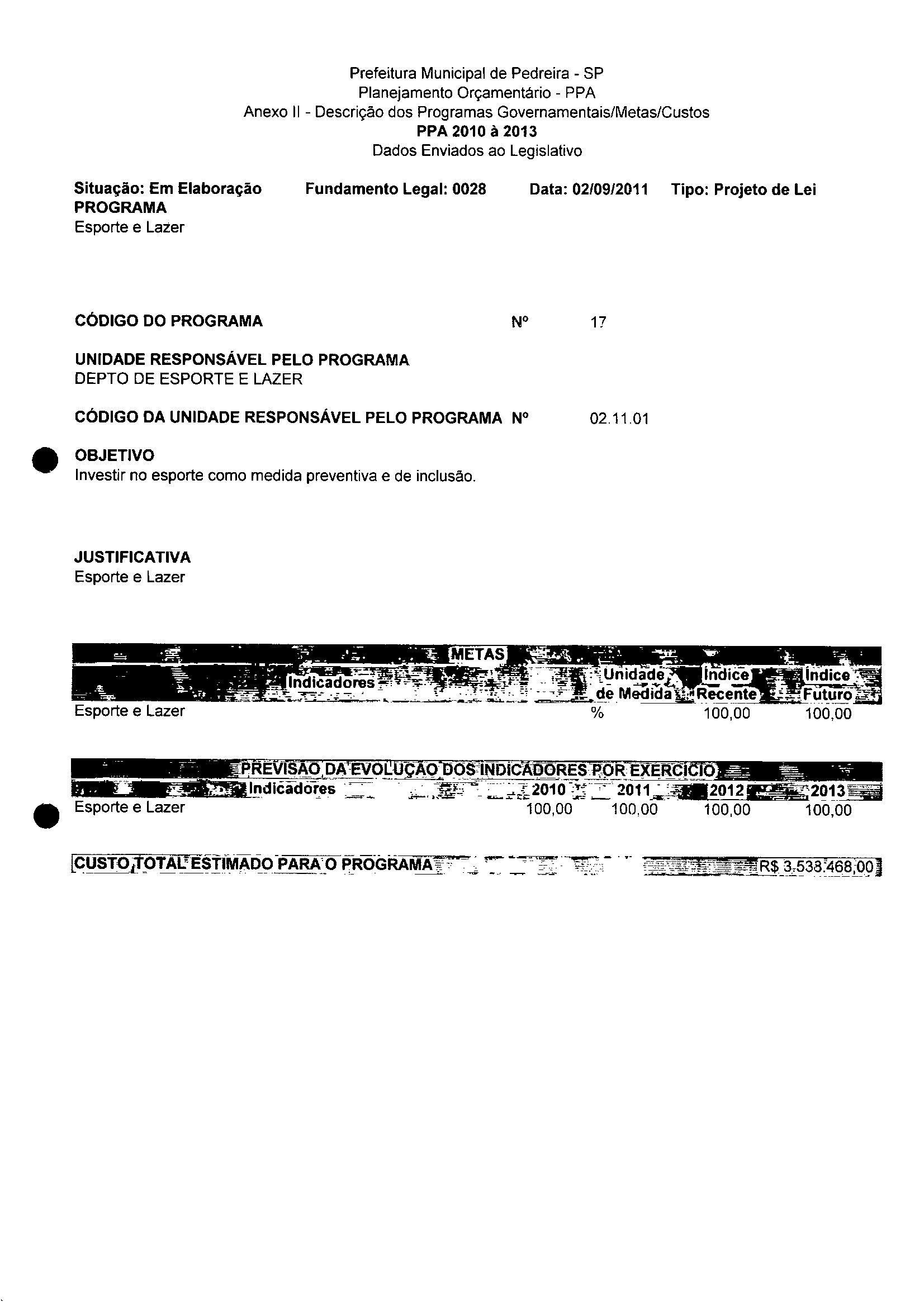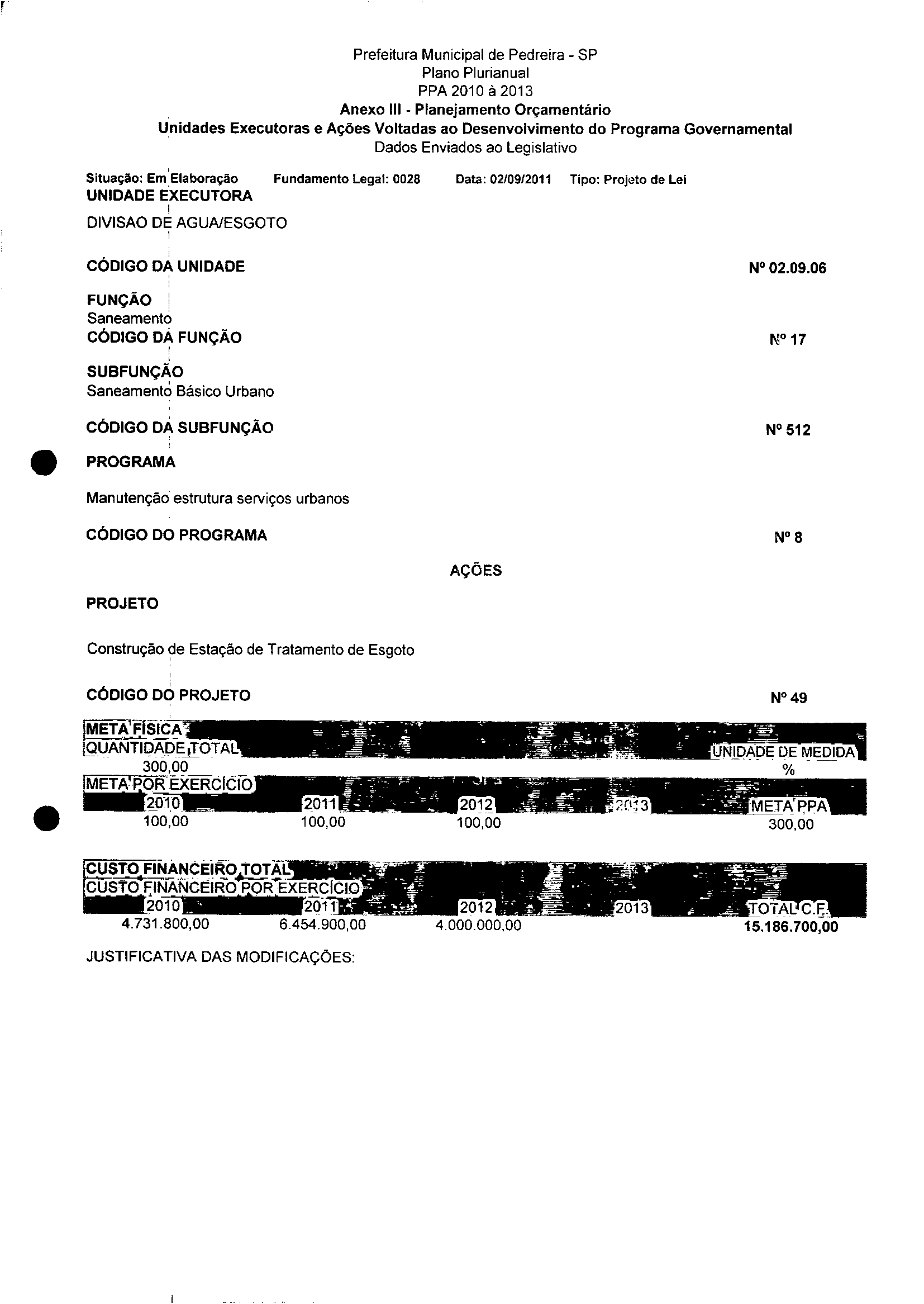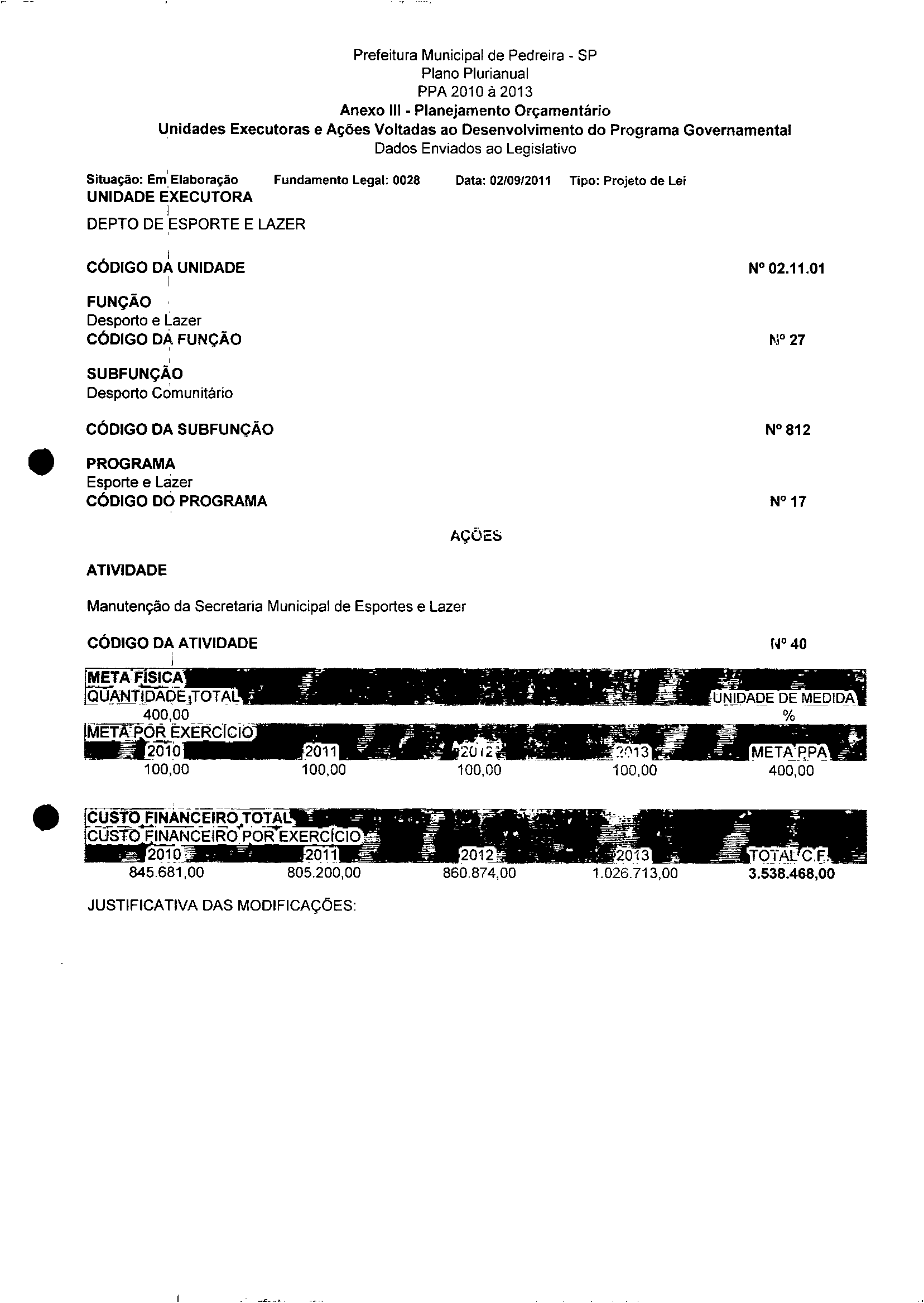 Ementa: Dispõe sobre a aijeração dos anexos II e III -da Lei nº 2977, de 5 de novembro de 2009 -Plano Plurianual para o Quadriênio de 2010/2013 e a alteração dos anexos V e VI -da Lei nº 3040, de 10 de junho de 2010 -Lei de Diretrizes Orçamentárias para o exercicio de 2011.