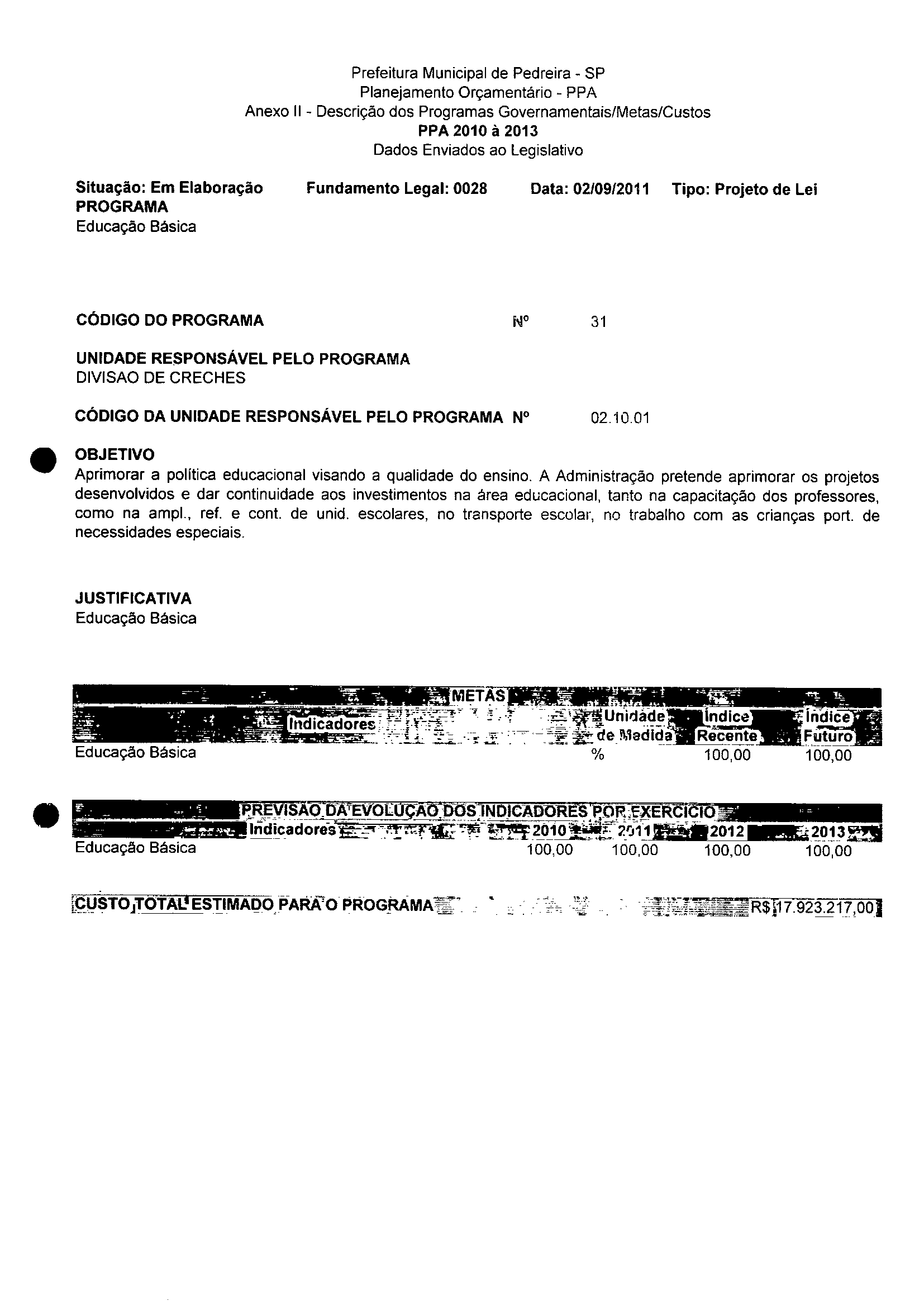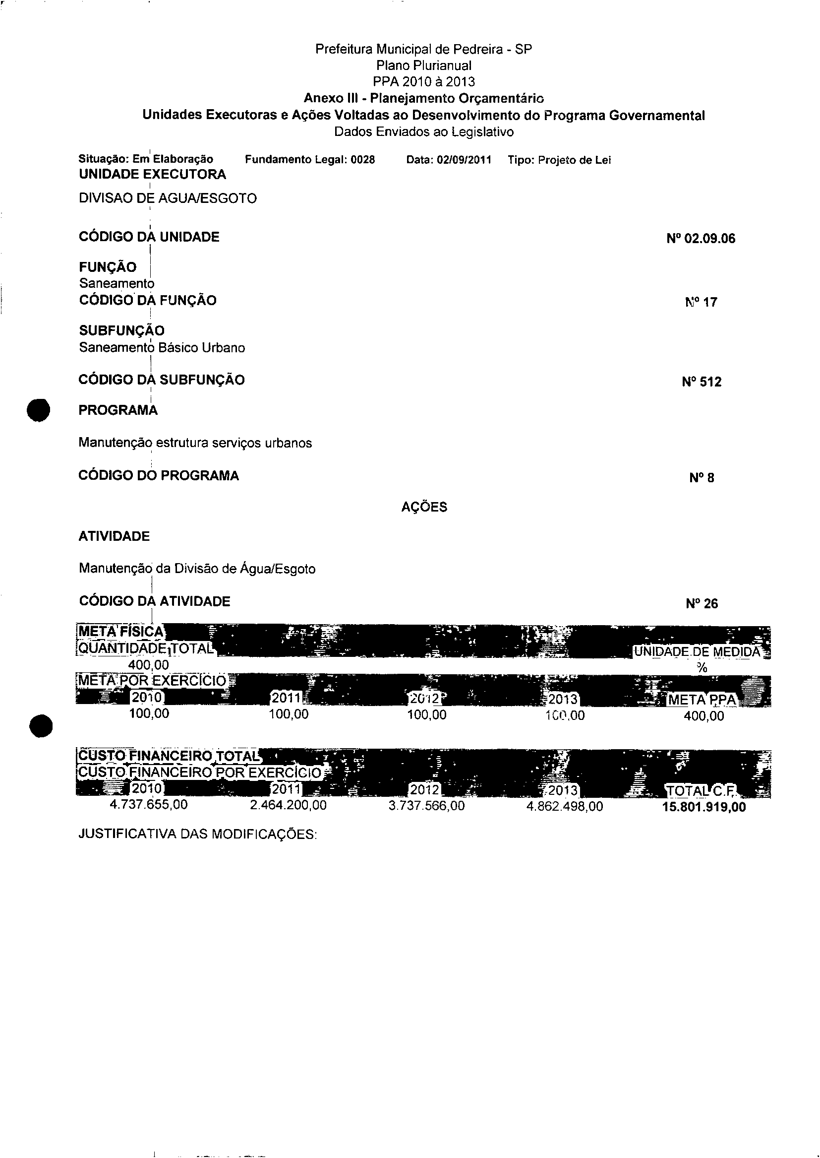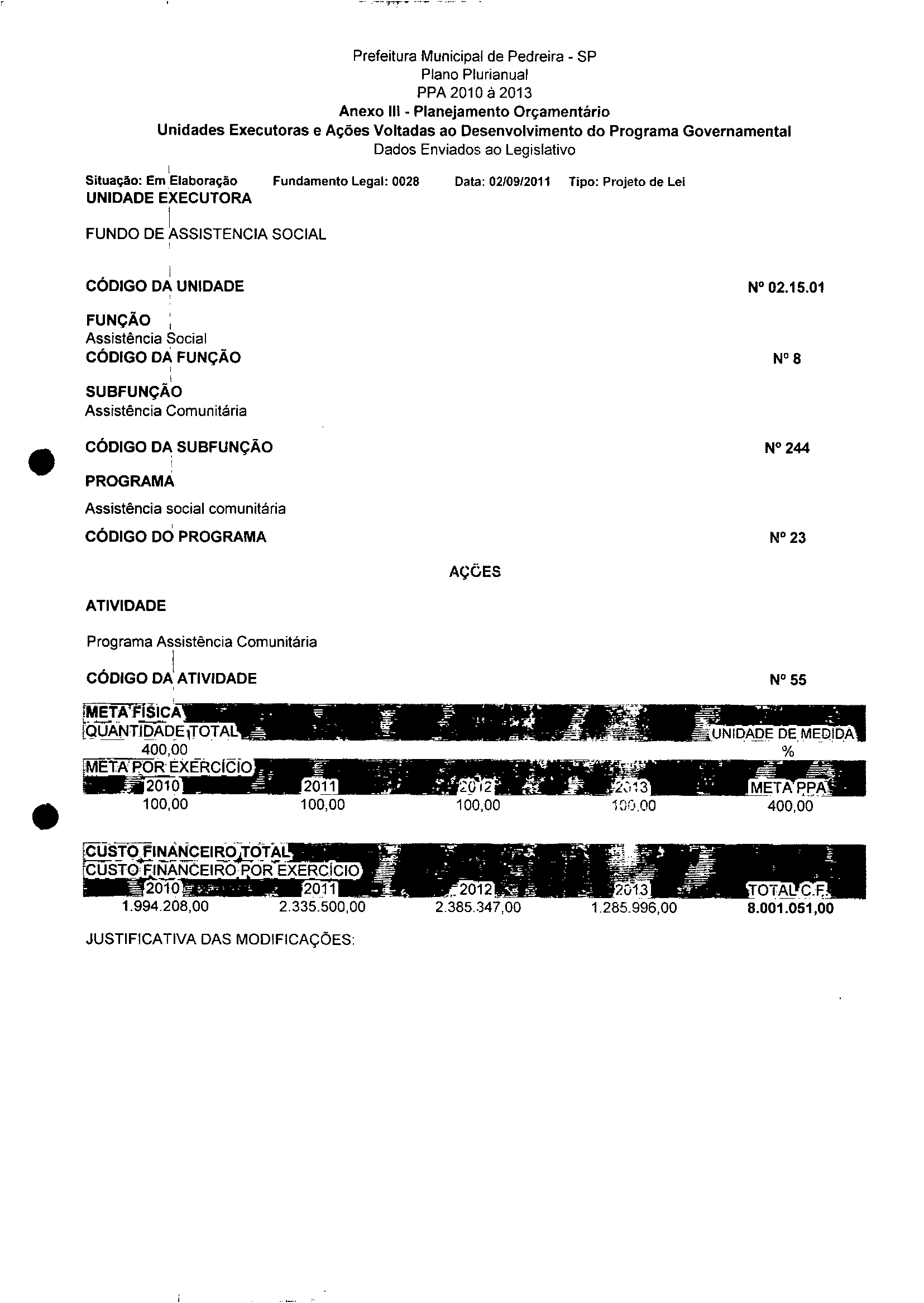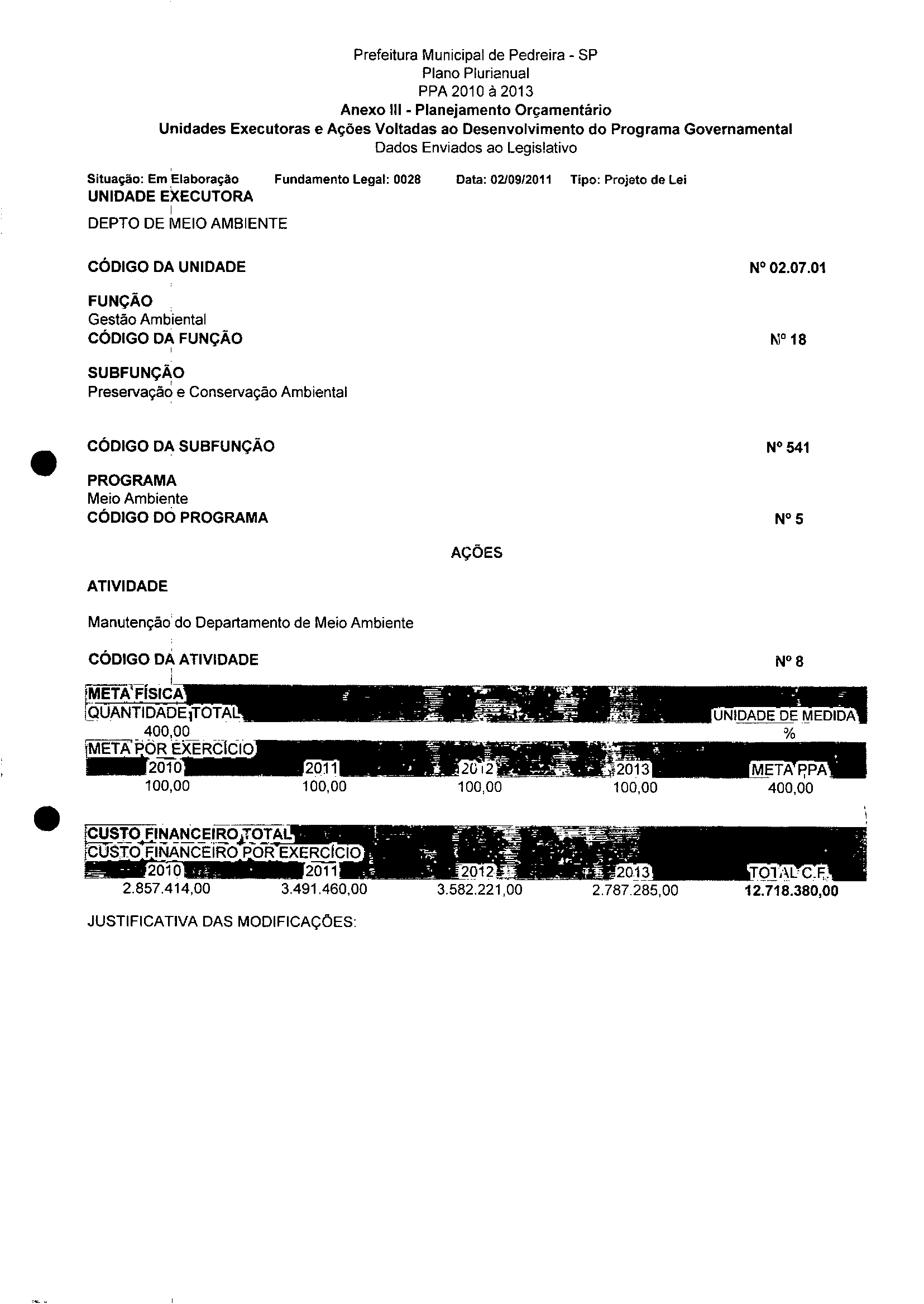 Ementa: Dispõe sobre a aijeração dos anexos II e III -da Lei nº 2977, de 5 de novembro de 2009 -Plano Plurianual para o Quadriênio de 2010/2013 e a alteração dos anexos V e VI -da Lei nº 3040, de 10 de junho de 2010 -Lei de Diretrizes Orçamentárias para o exercicio de 2011.