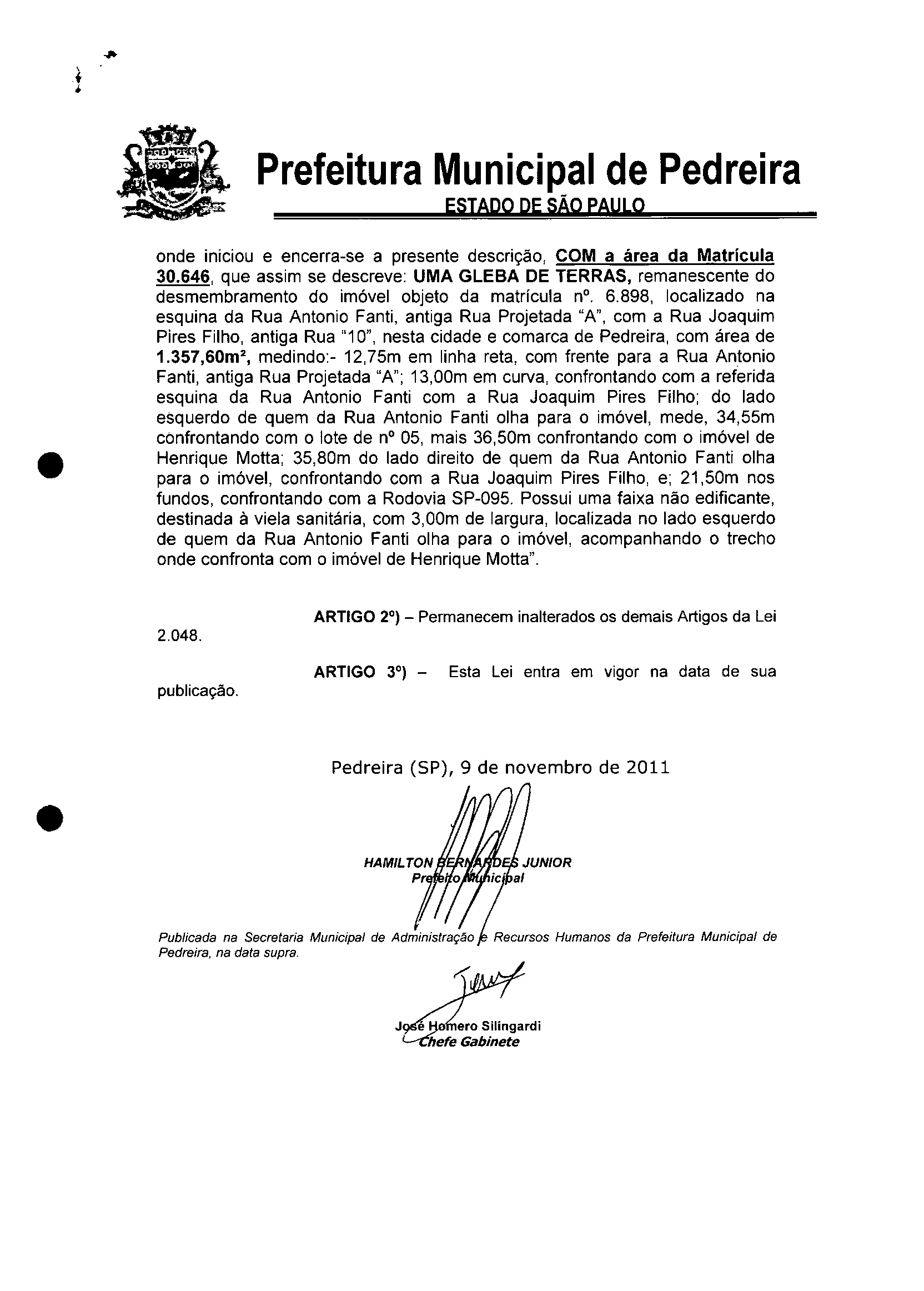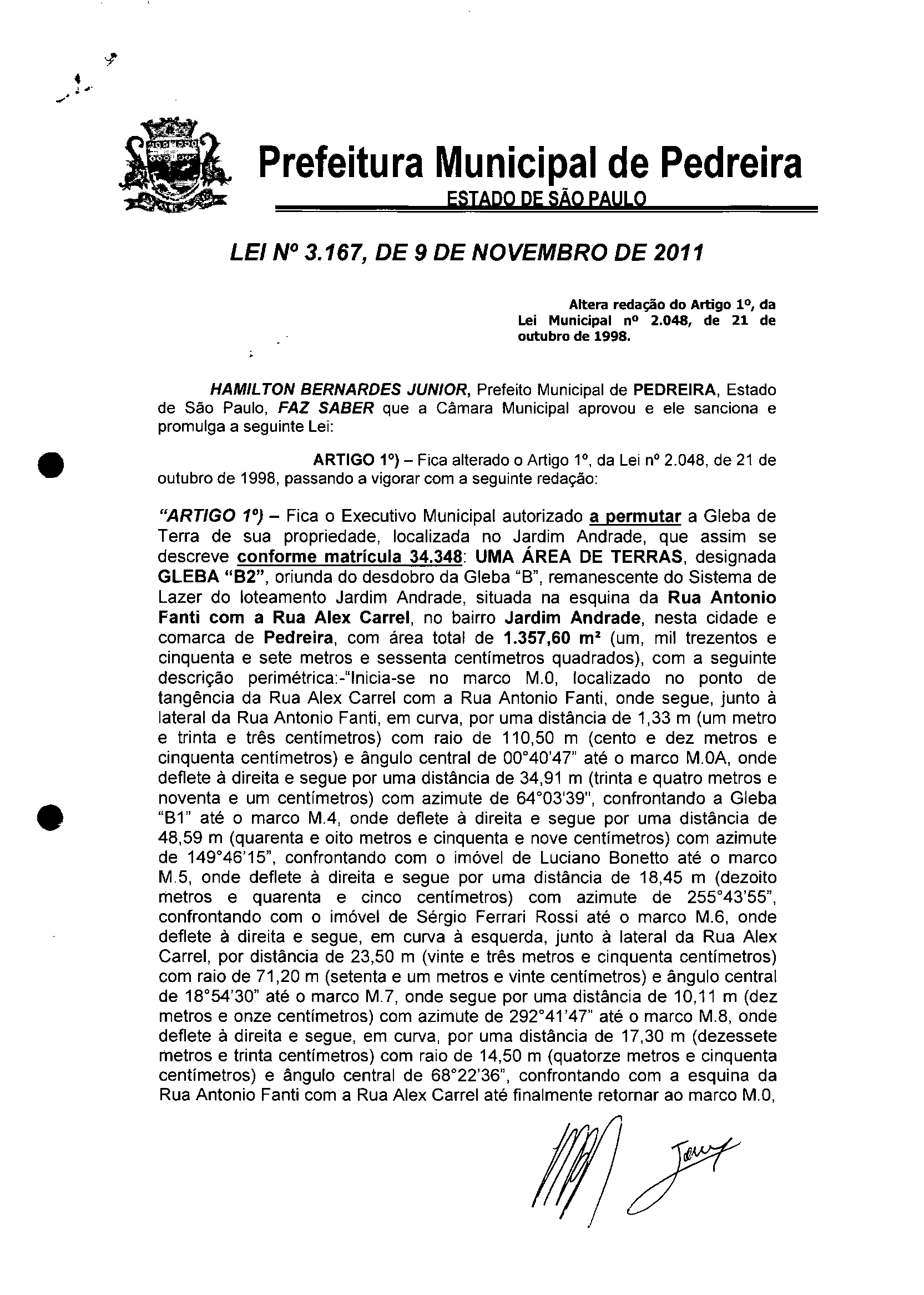 Ementa: Altera redação do Artigo 1º, da Lei Municipal nº 2.048, de 21 de outubro de 1998 .