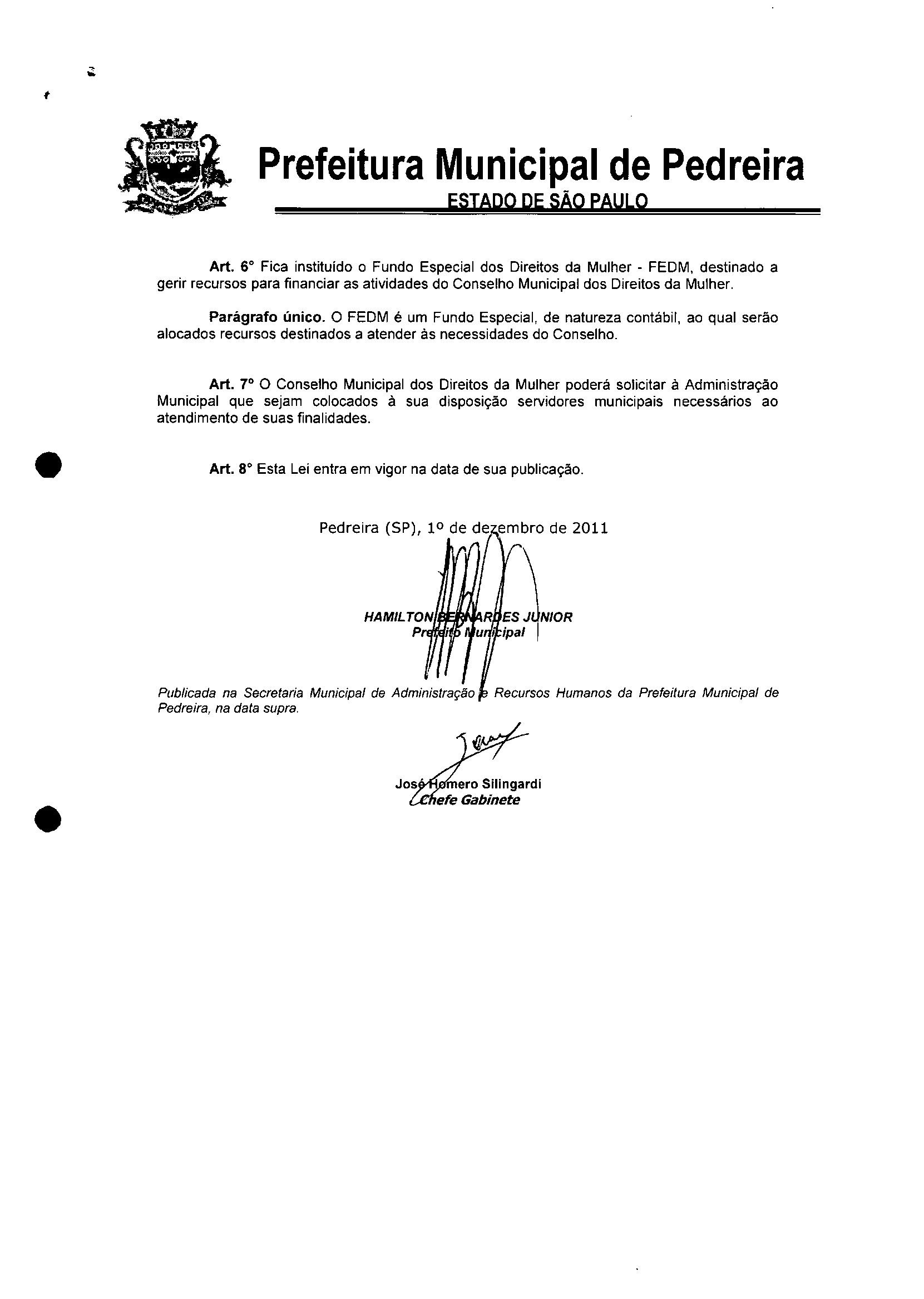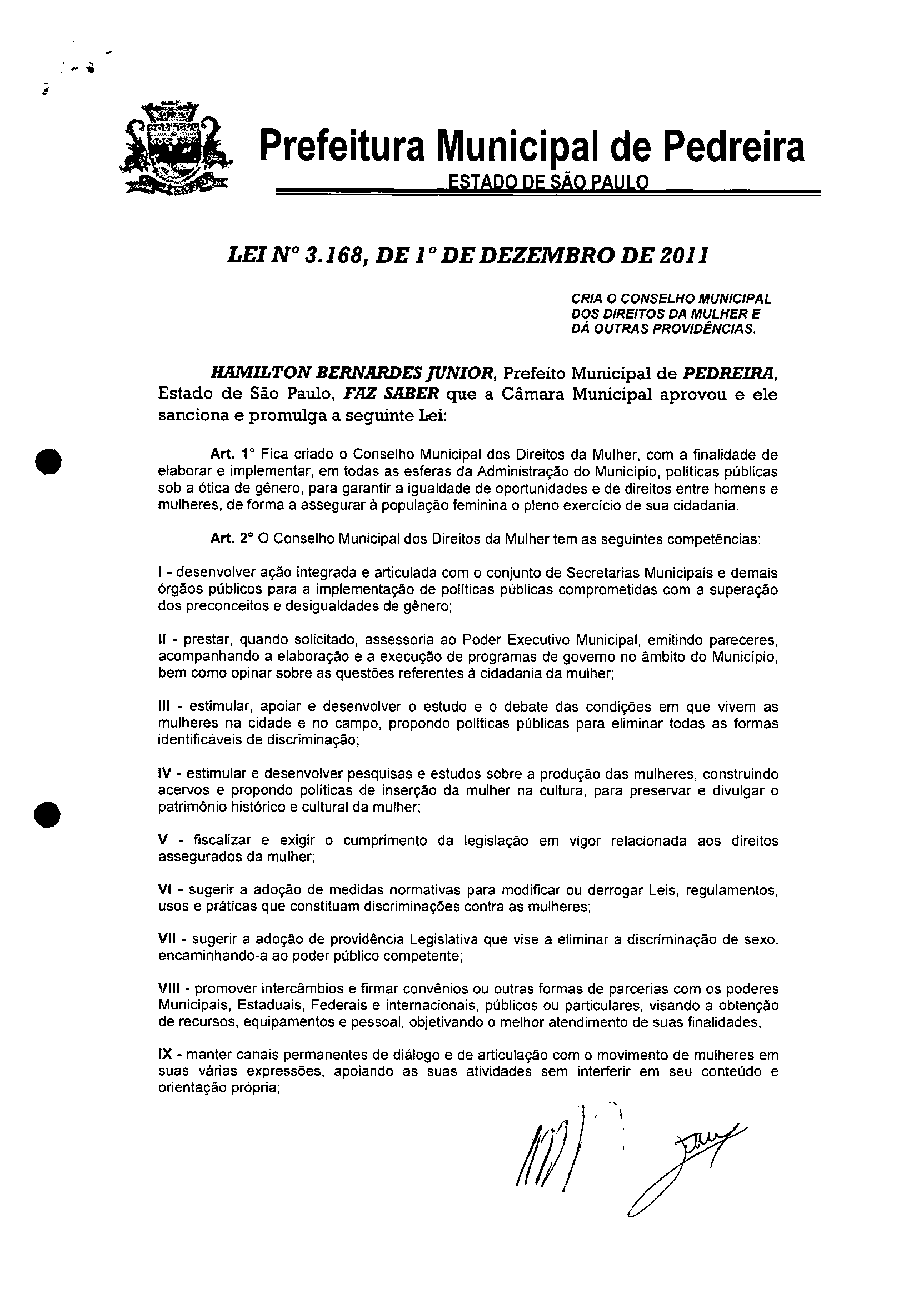 Lei Municipal - N° 3168 de 01/12/2011