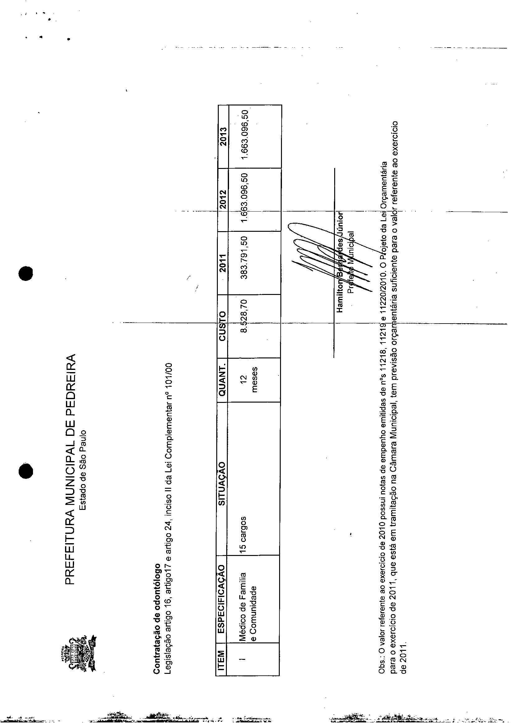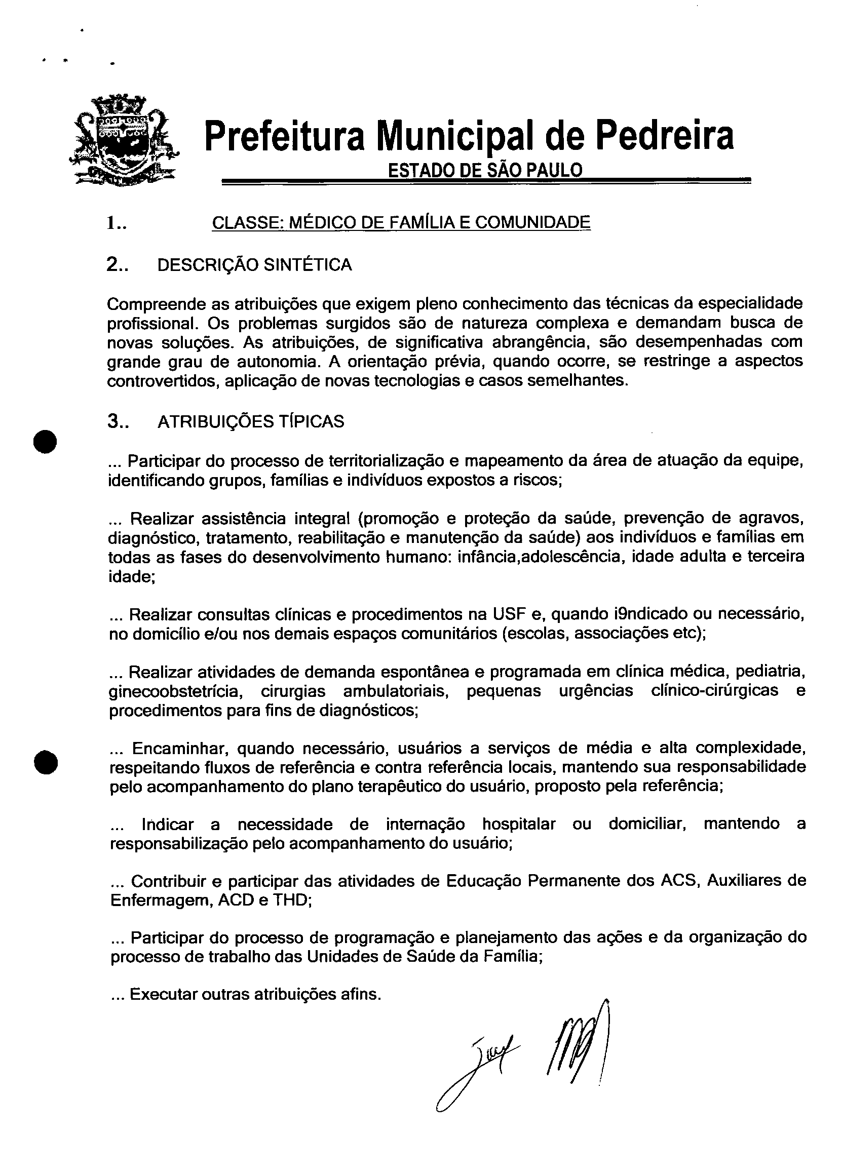 Ementa: Altera o Anexo I - Quadro de Cargos de Provimento Efetivo da Prefeitura Municipal• da Lei na 1.765, de 28/09/94, e modificações posteriores, em especial as Leis nºs: 1.884, de 22/05/96; 2.223, de 09/08/2001; 2.256, de 20/11/2001; 2.627, de 21/09/2006; 2.671, de 13/02/2007; 2.772, de 12/02/2008, 3.015, de 18 de março de 2010, ]3.061, de 22/09/2010, 3.131, de 27/06/2011, com a criação do cargo de MEDICO DE FAMILlA E COMUNIDADE, conforme especifica.