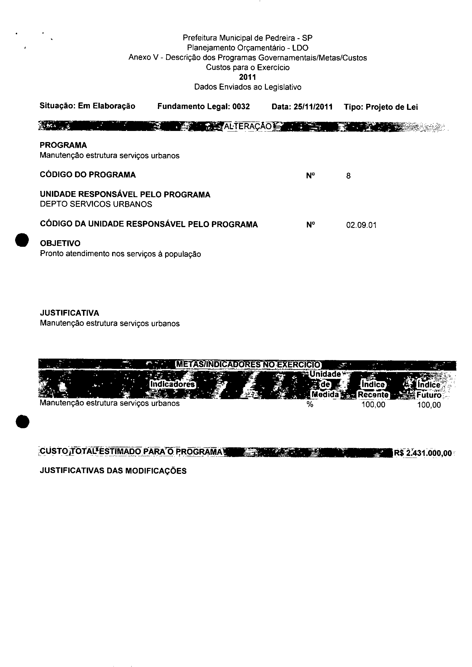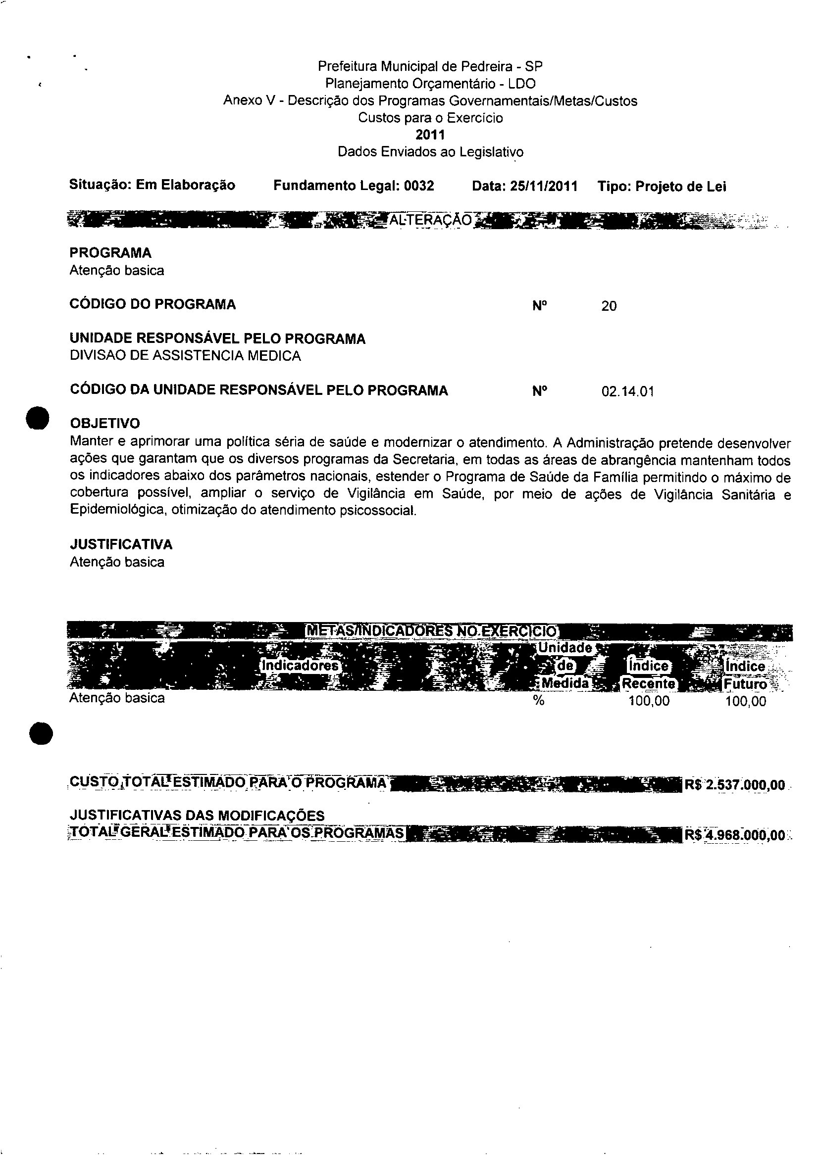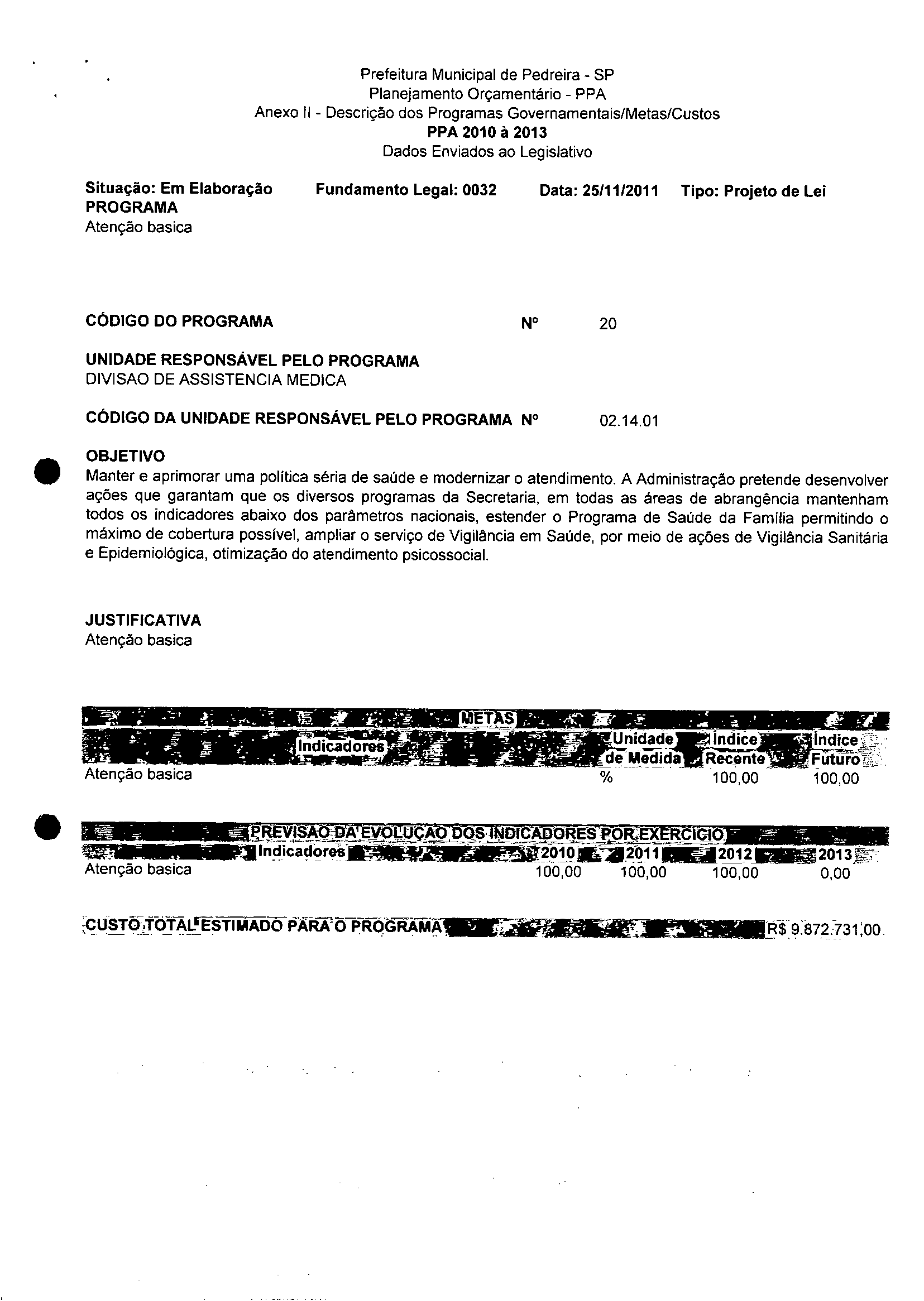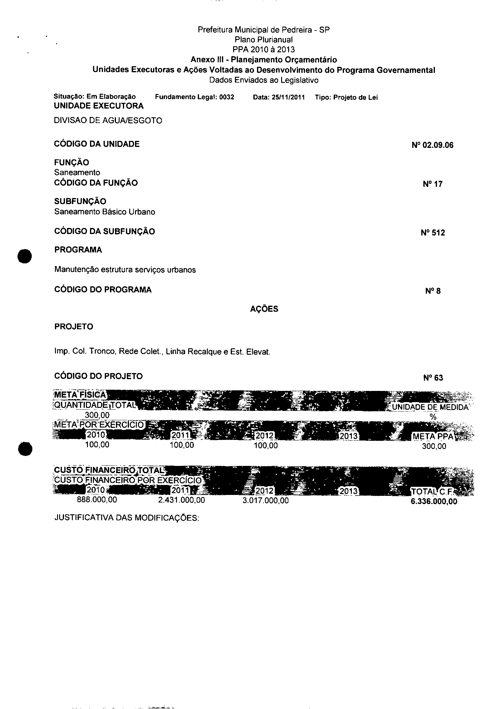 Ementa: Dispõe sobre a alteração dos anexos II e III -da Lei nº 2977, de 5 de novembro de 2009 -Plano Plurianual para o Quadriênio de 2010/2013 e a alteração dos anexos Ve VI - da Lei nº 3040, de 10 de junho de 2010 - Lei de Diretrizes Orçamentárias para o exercicio de 2011.