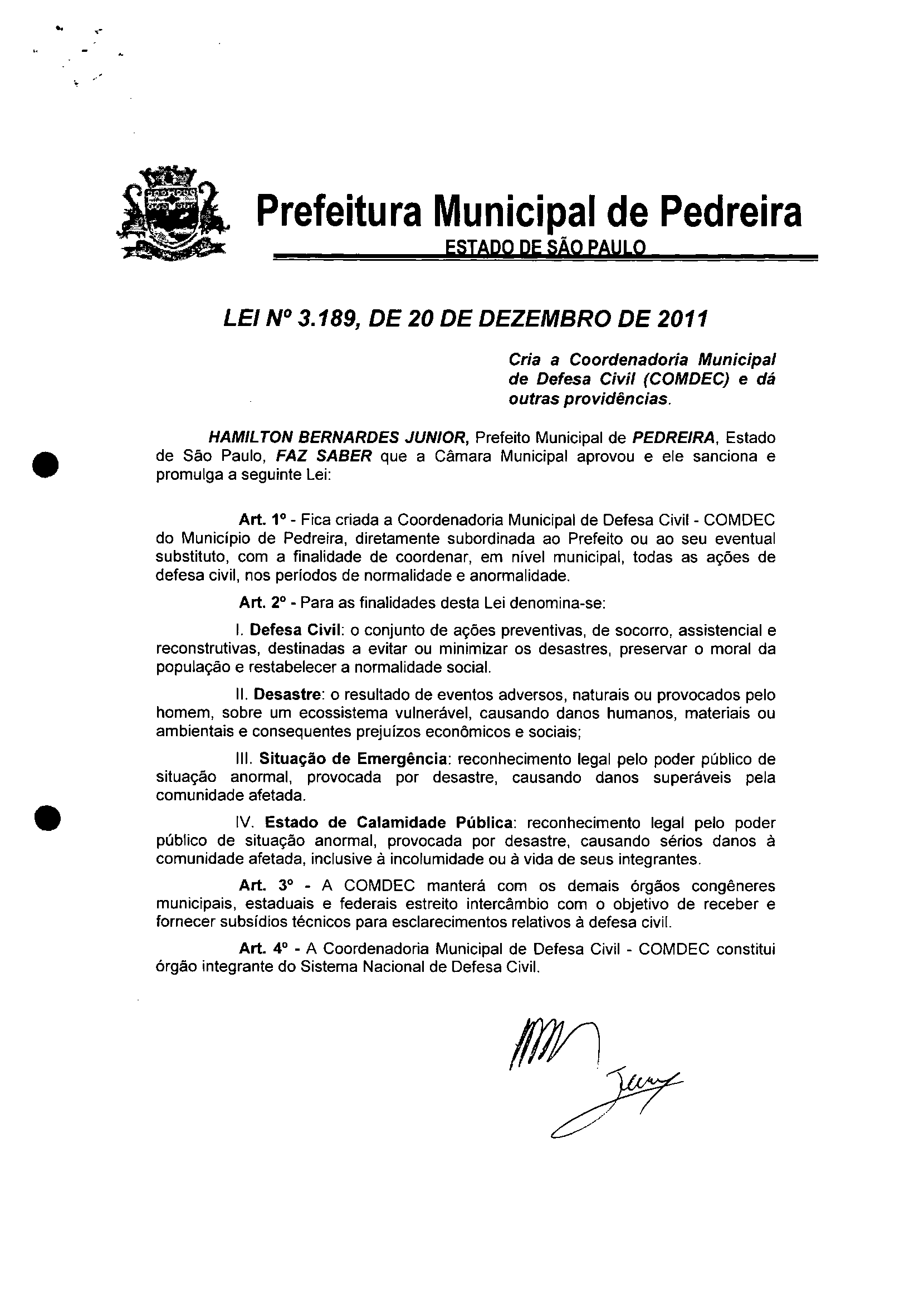 Ementa: Cria a Coordenadoria Municipal de Defesa Civil (COMDEC) e dá outras providências.