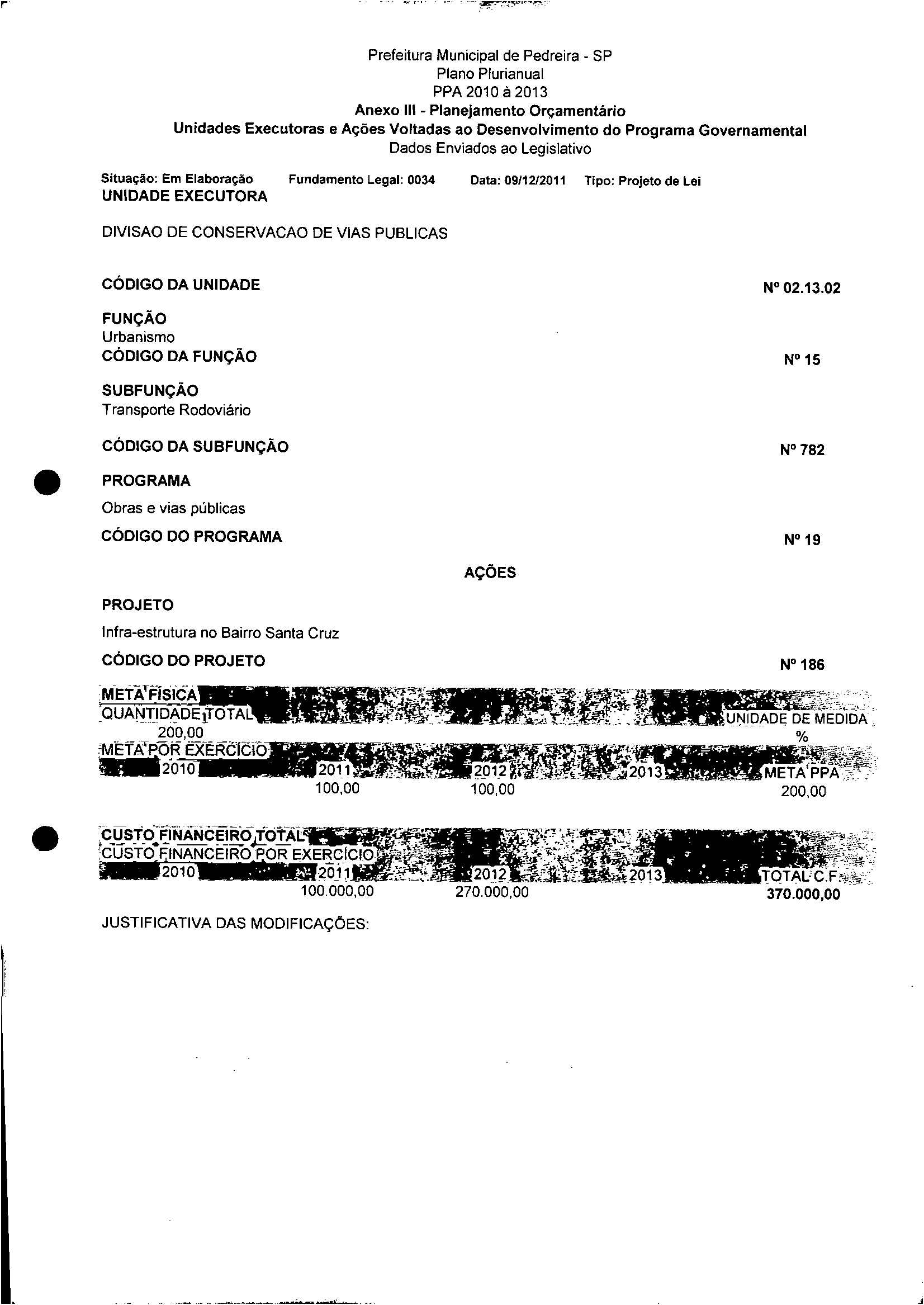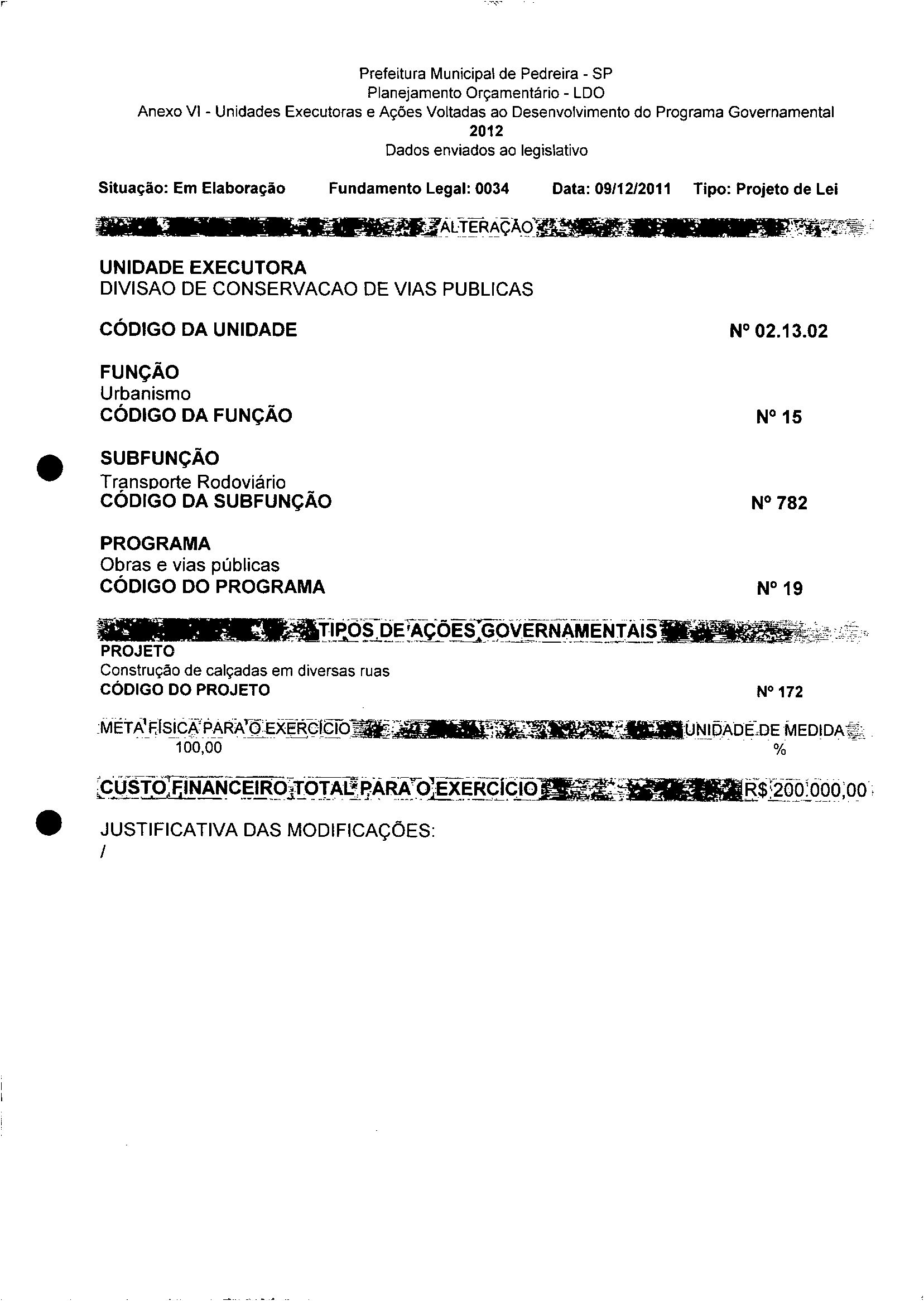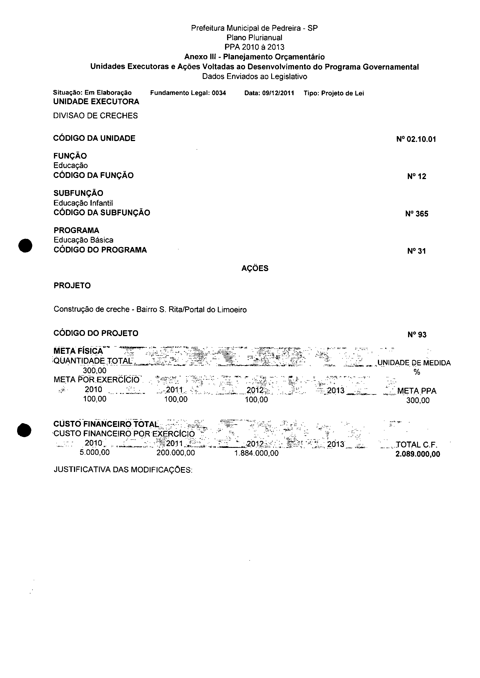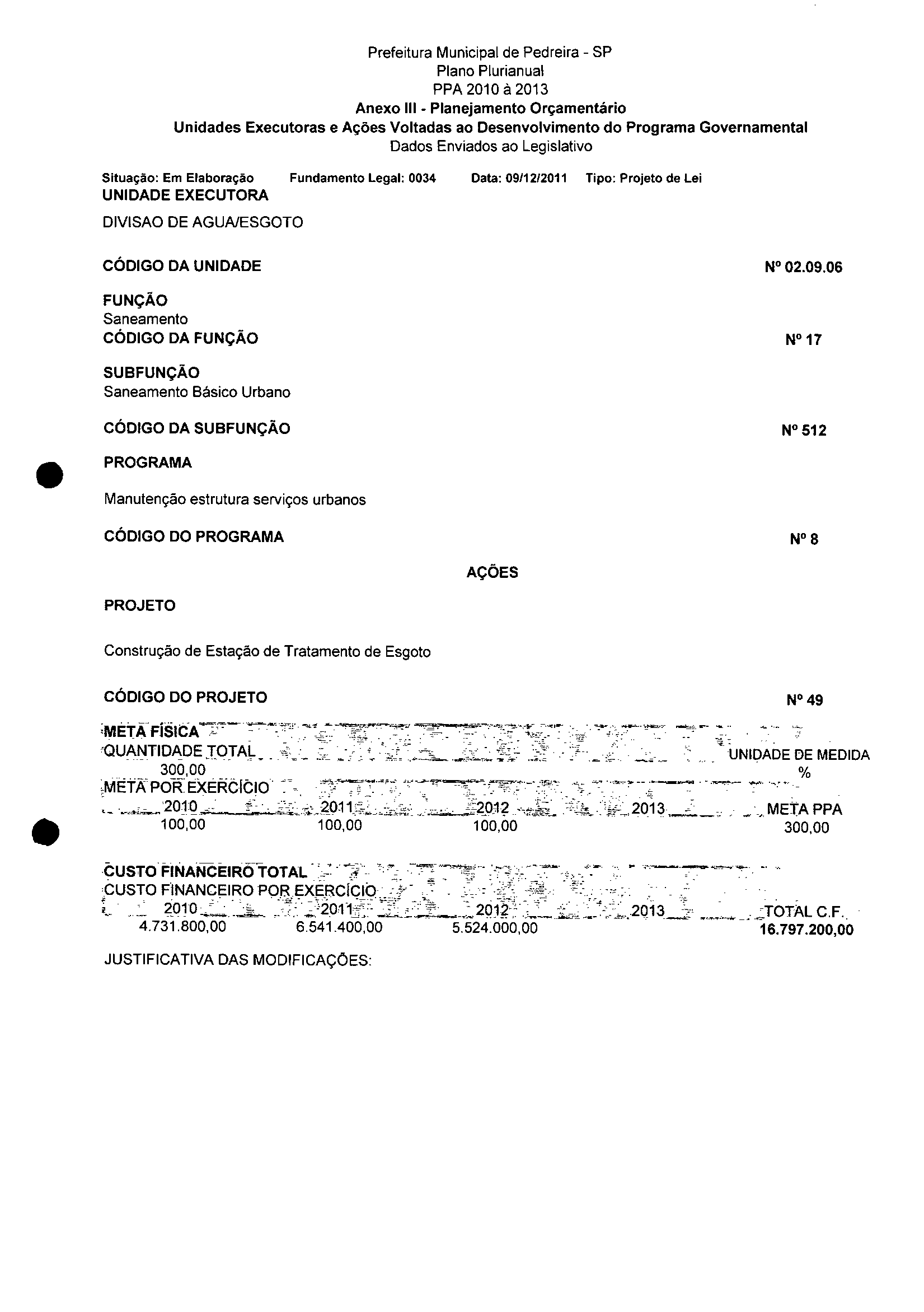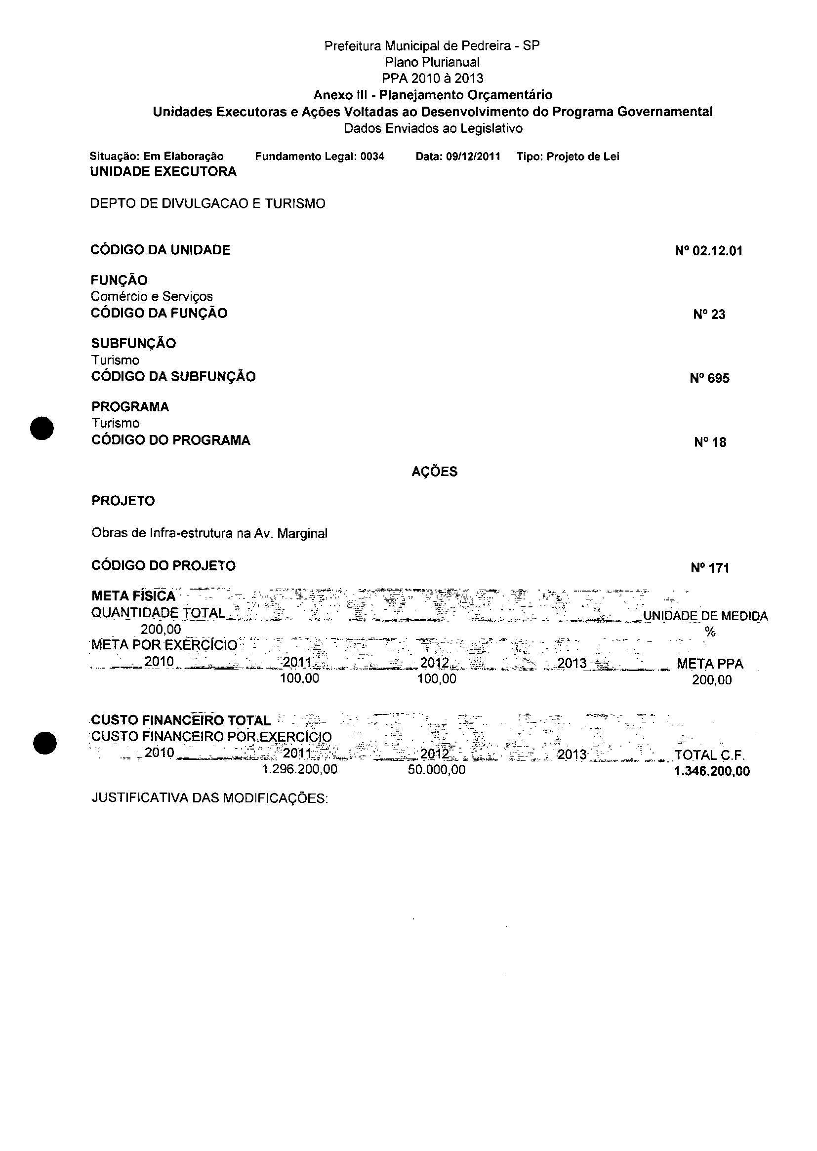 Ementa: Dispõe sobre a alteração dos anexos II e III -da Lei nº 2.977, de 5 de novembro de 2009 -Plano Plurianual para o Quadriênio de 2010/2013 e a alteração dos anexos Ve VI-da Lei nº 3.138, de 27 de junho de 2011 -Lei de Diretrizes Orçamentárias para o exercicio de 2012.