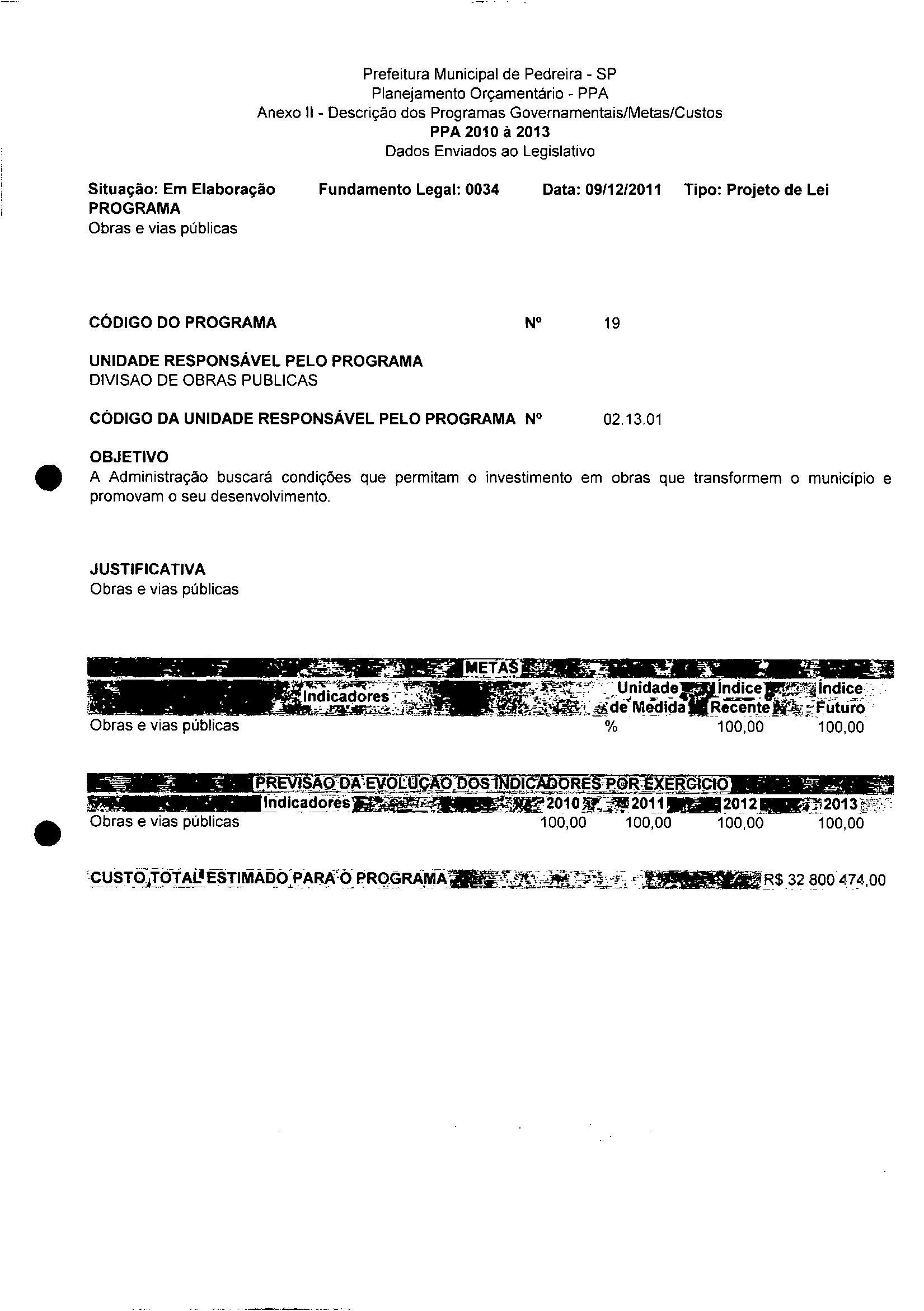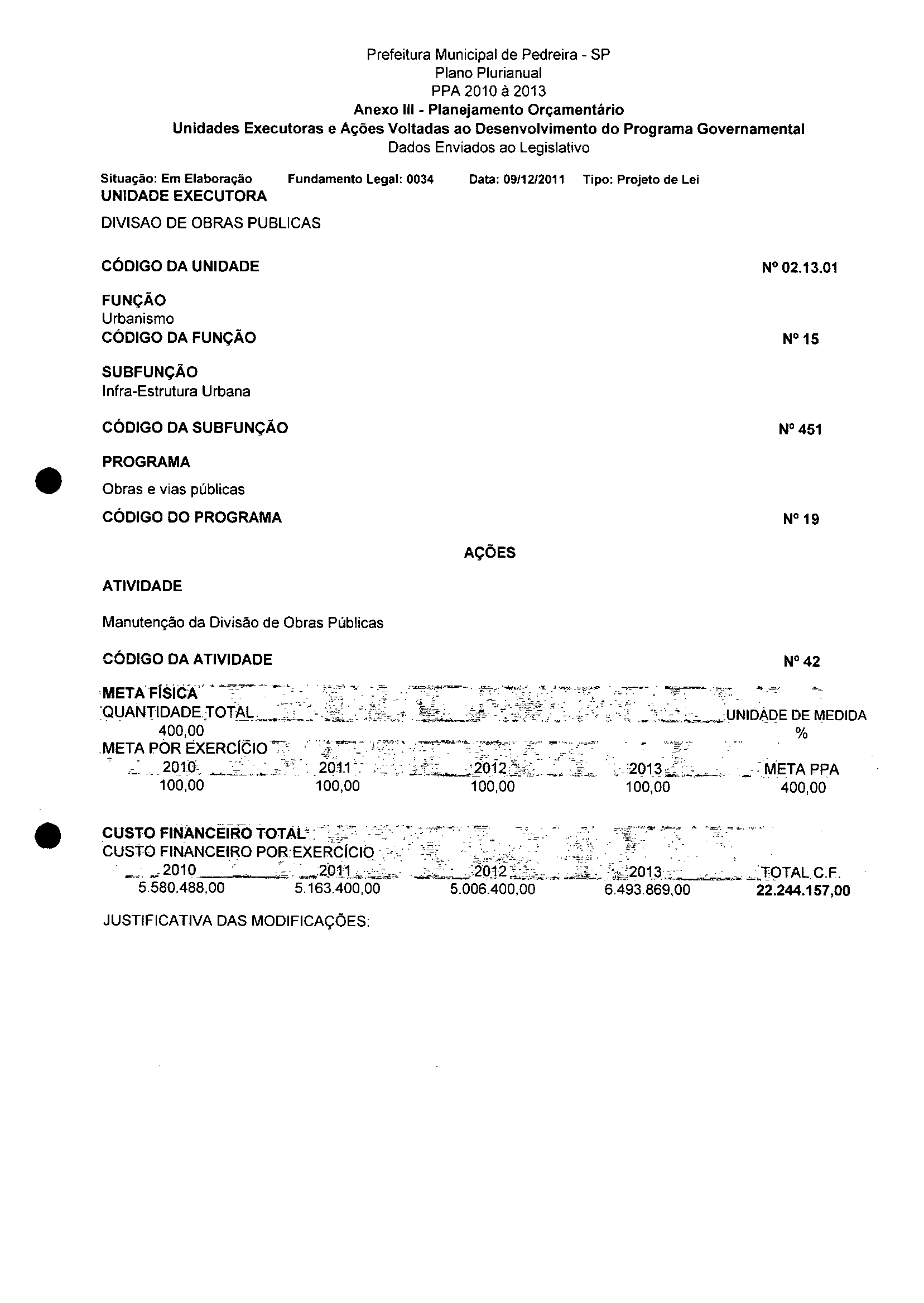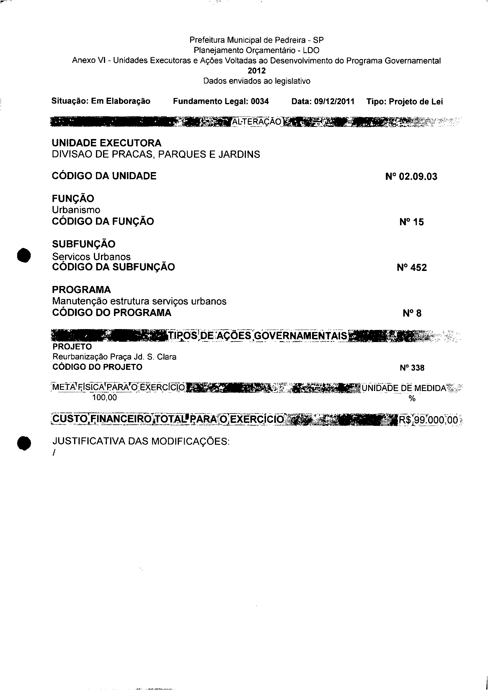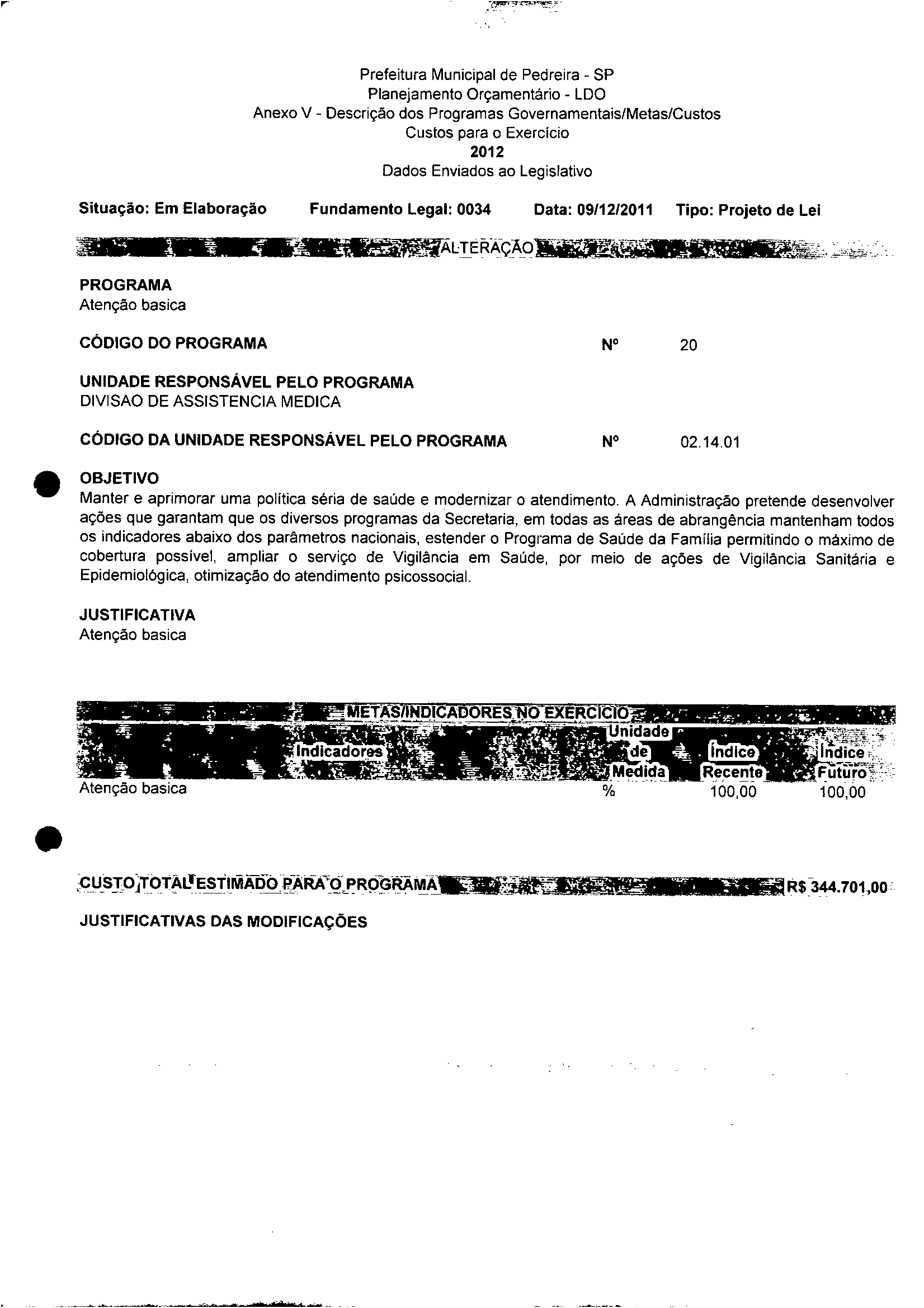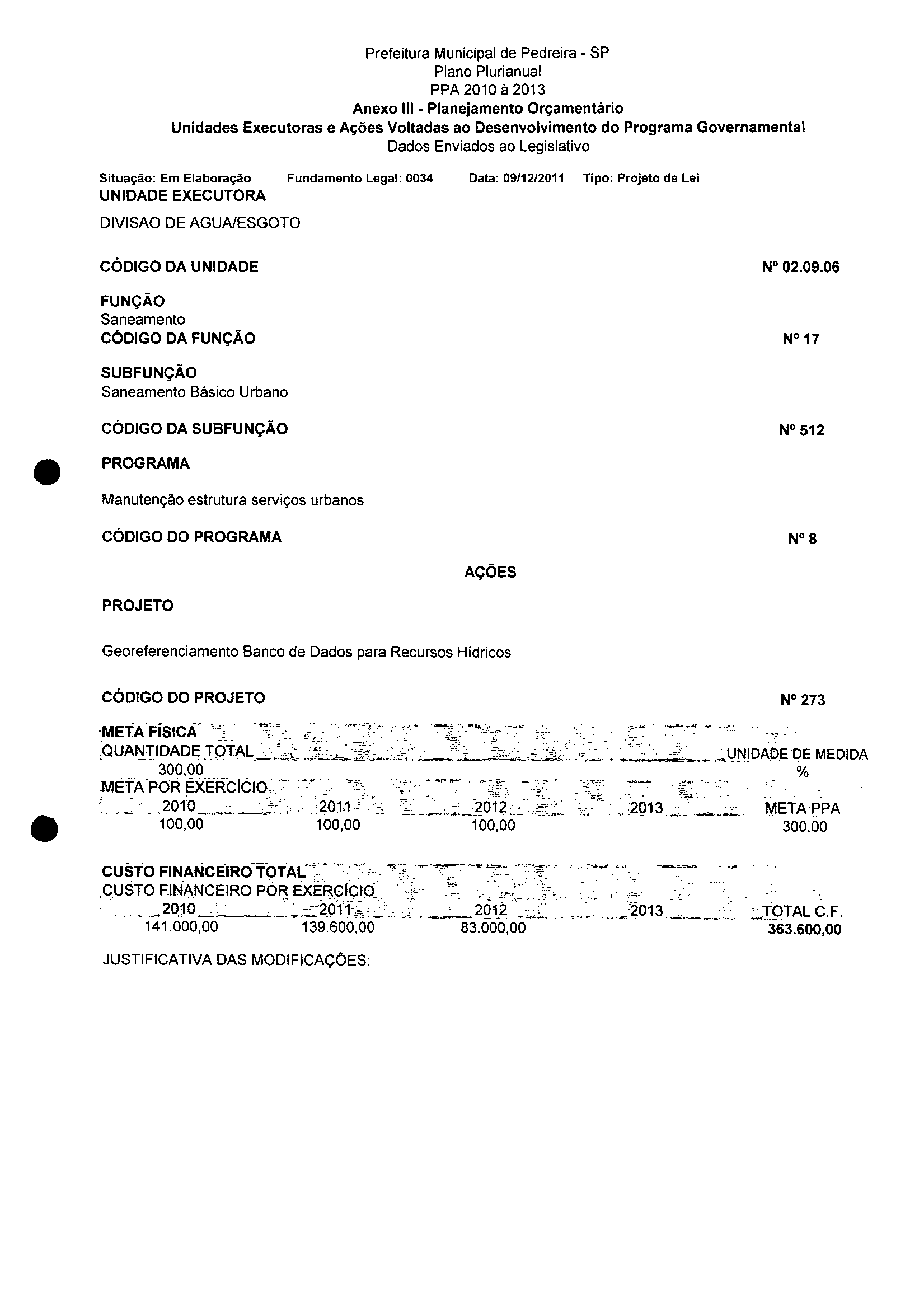 Ementa: Dispõe sobre a alteração dos anexos II e III -da Lei nº 2.977, de 5 de novembro de 2009 -Plano Plurianual para o Quadriênio de 2010/2013 e a alteração dos anexos Ve VI-da Lei nº 3.138, de 27 de junho de 2011 -Lei de Diretrizes Orçamentárias para o exercicio de 2012.