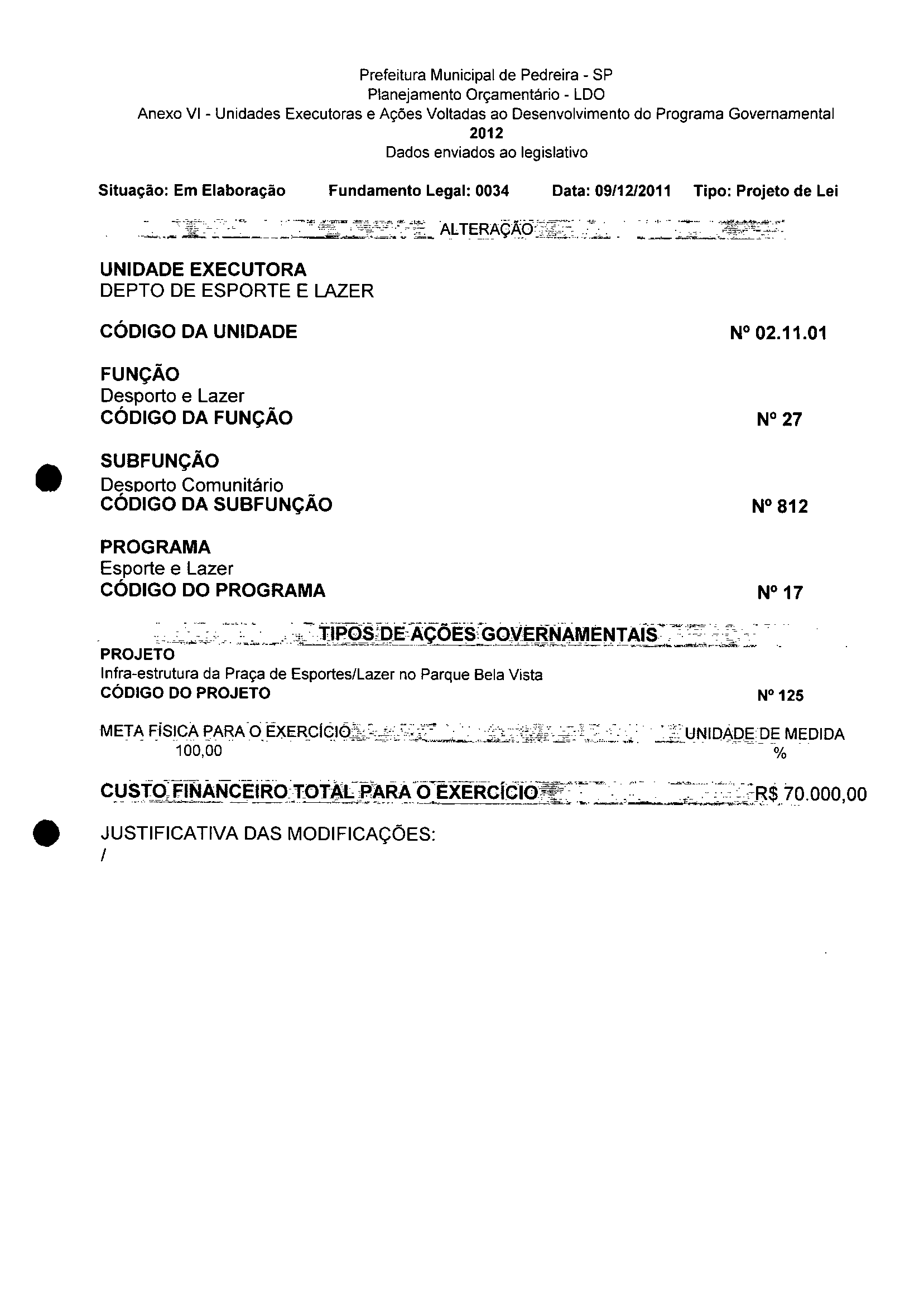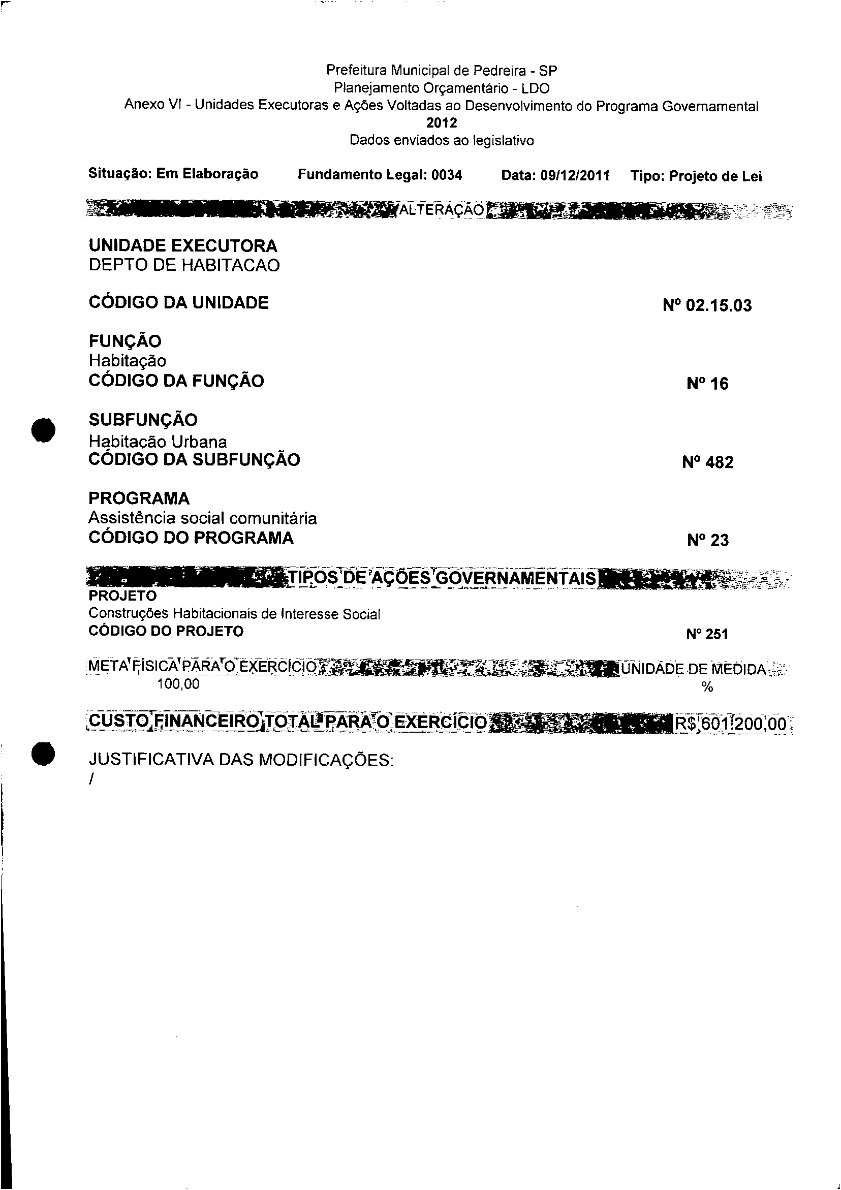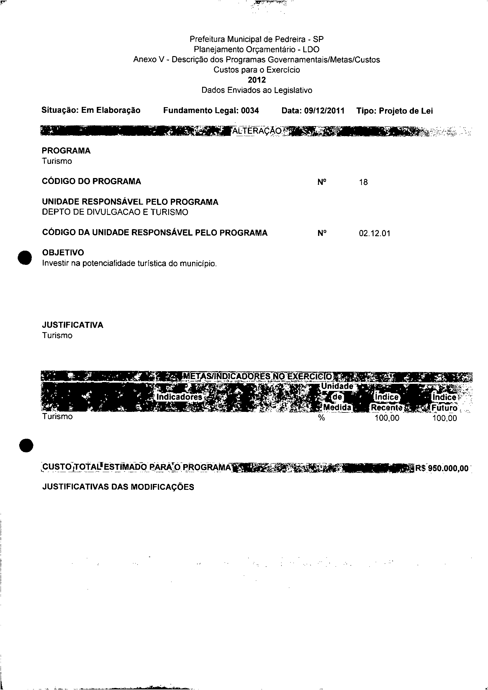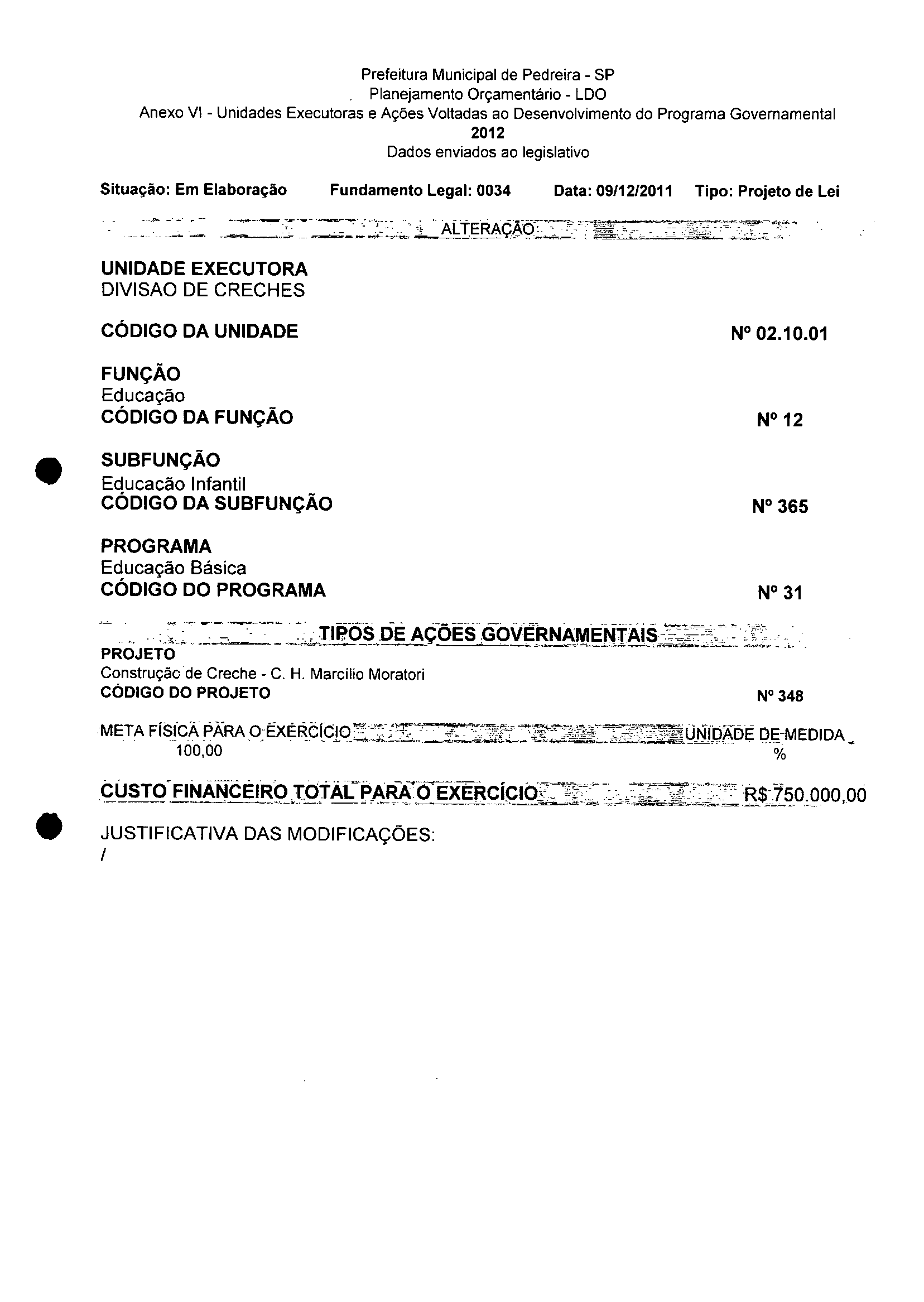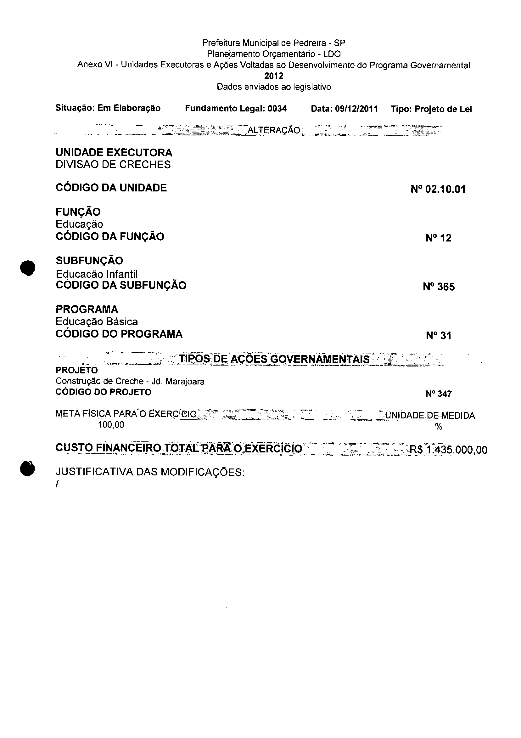 Ementa: Dispõe sobre a alteração dos anexos II e III -da Lei nº 2.977, de 5 de novembro de 2009 -Plano Plurianual para o Quadriênio de 2010/2013 e a alteração dos anexos Ve VI-da Lei nº 3.138, de 27 de junho de 2011 -Lei de Diretrizes Orçamentárias para o exercicio de 2012.