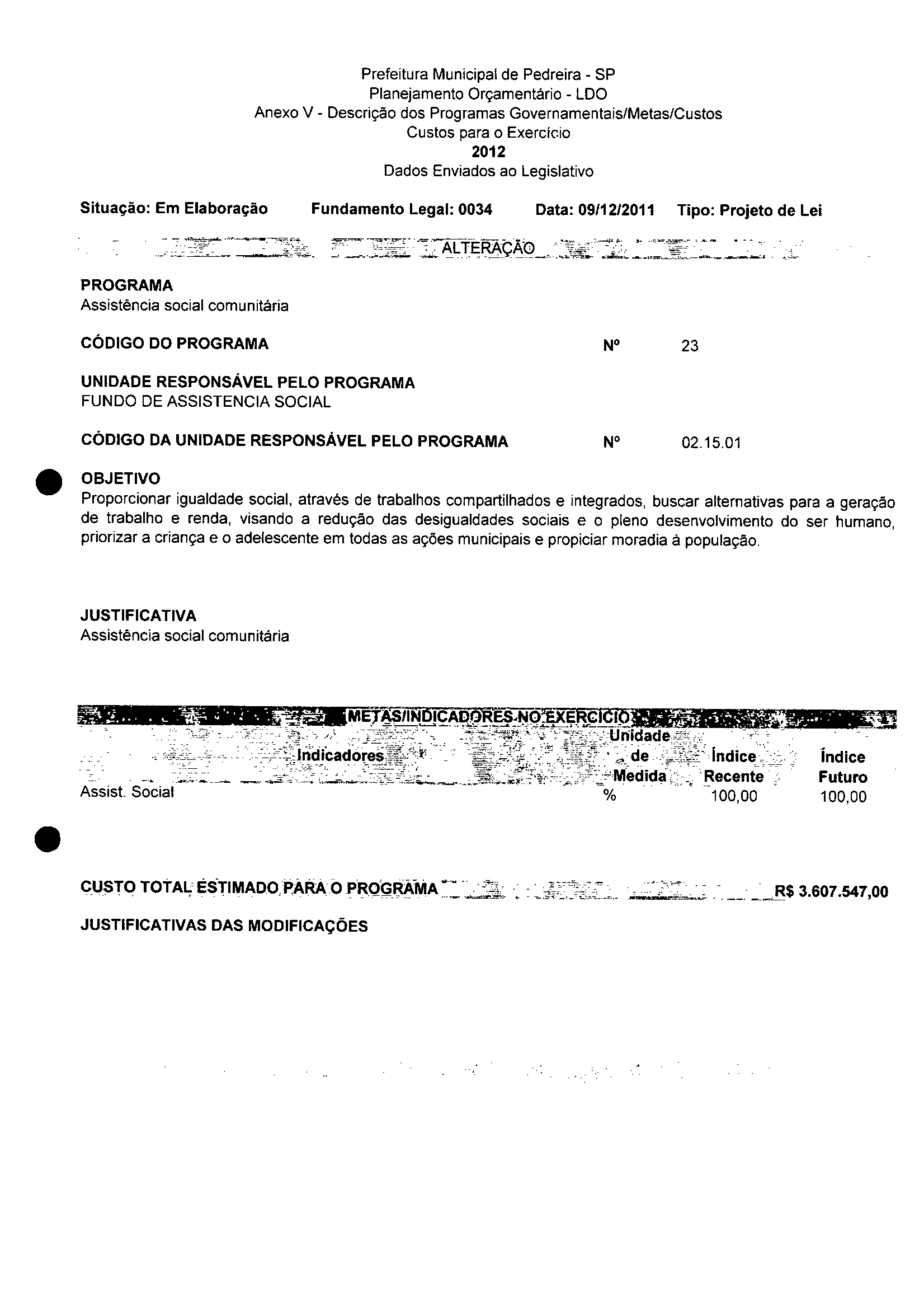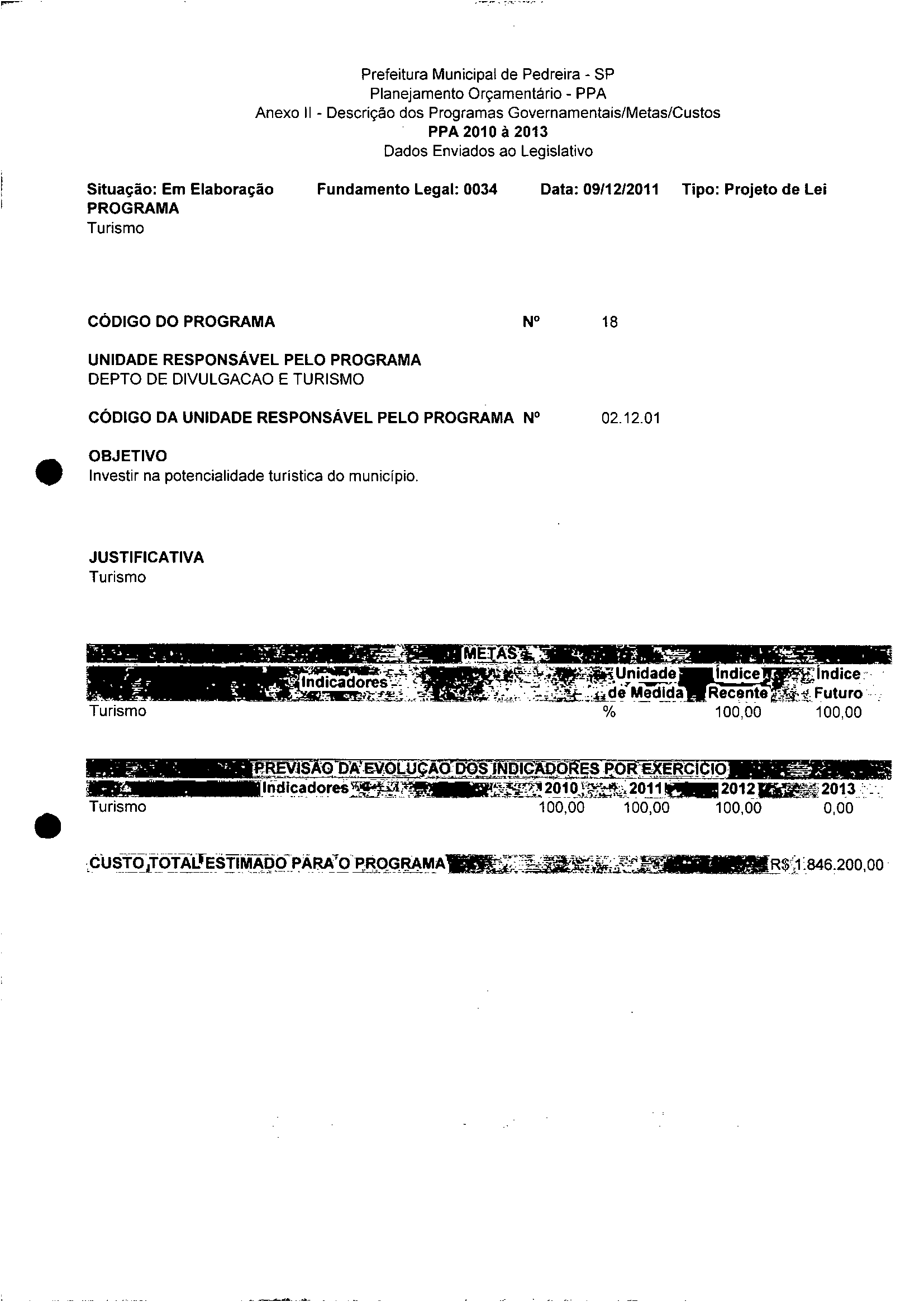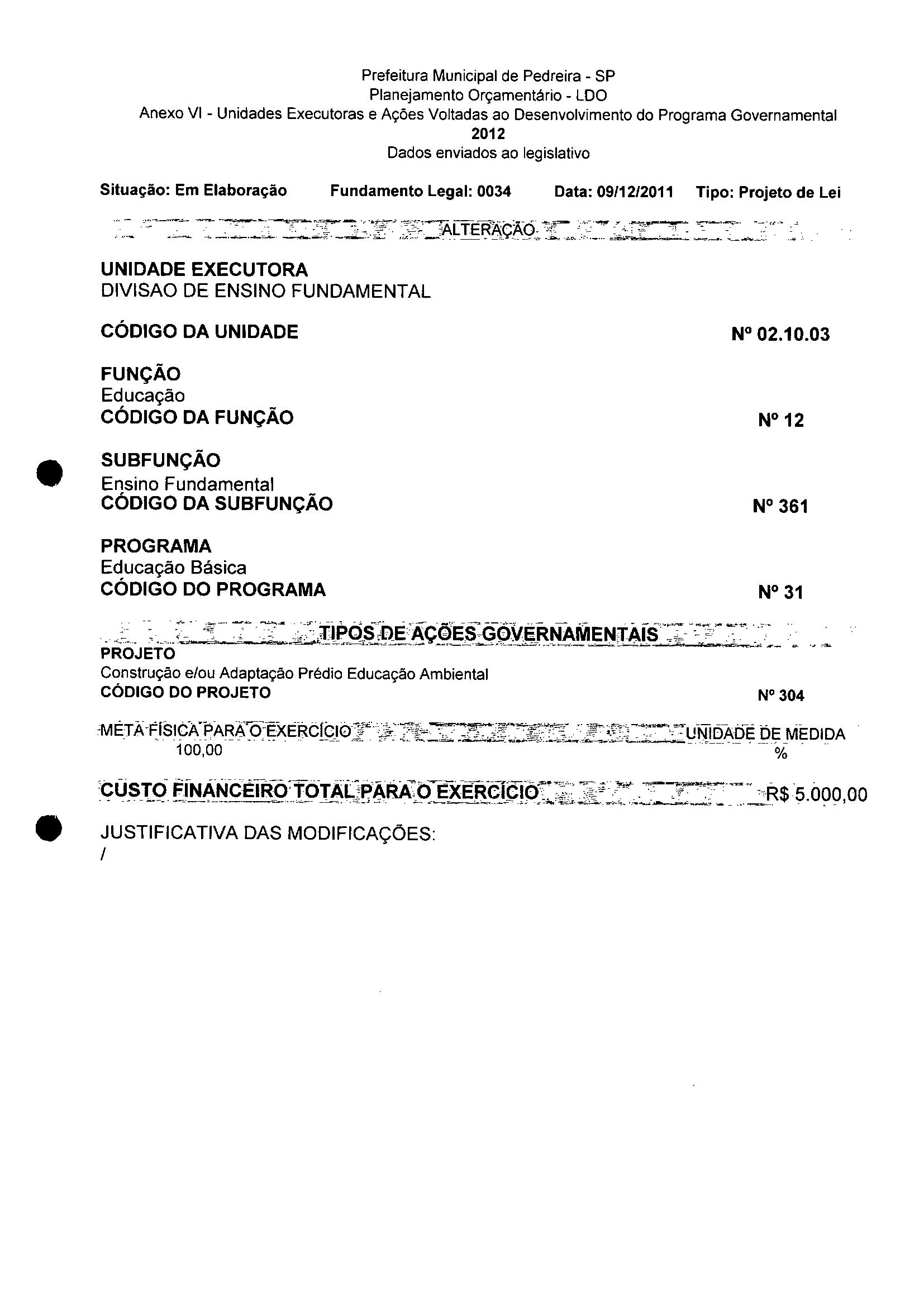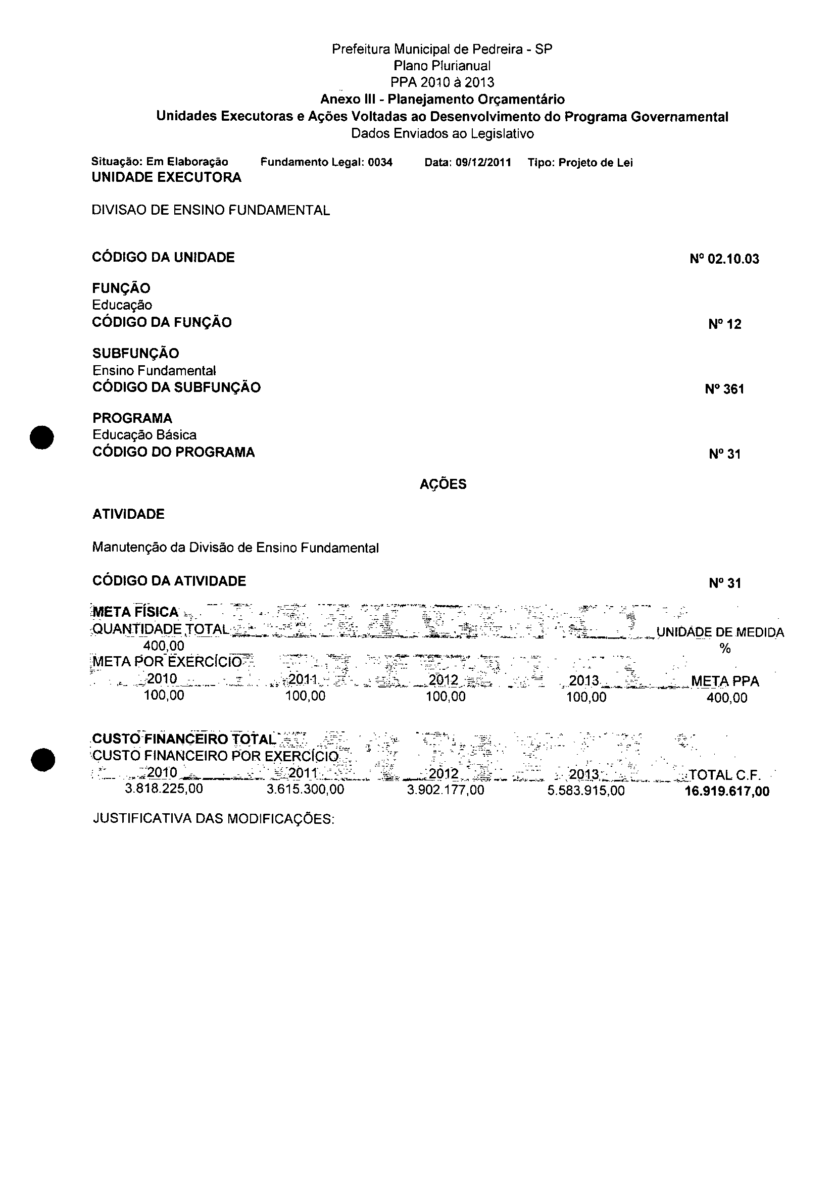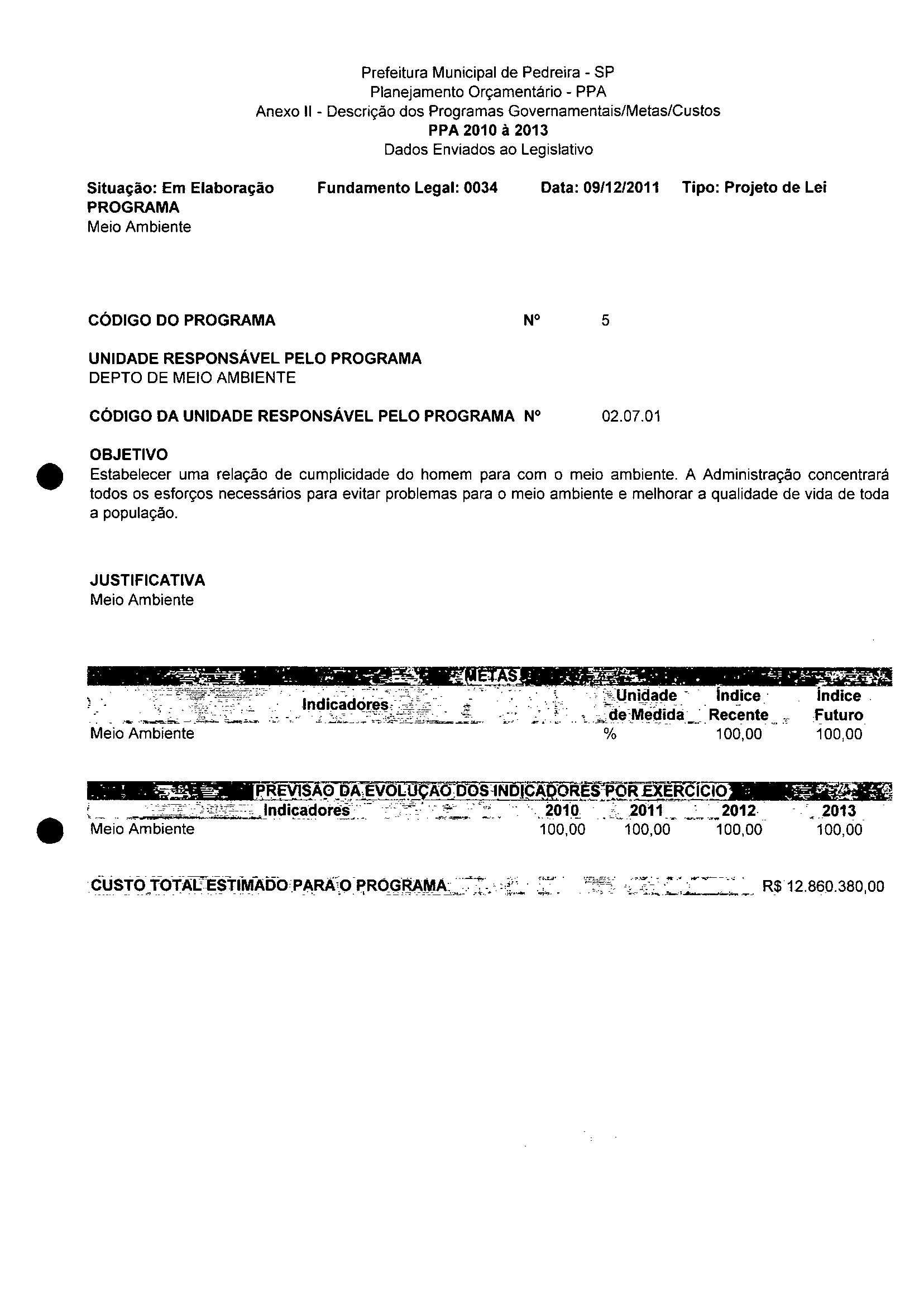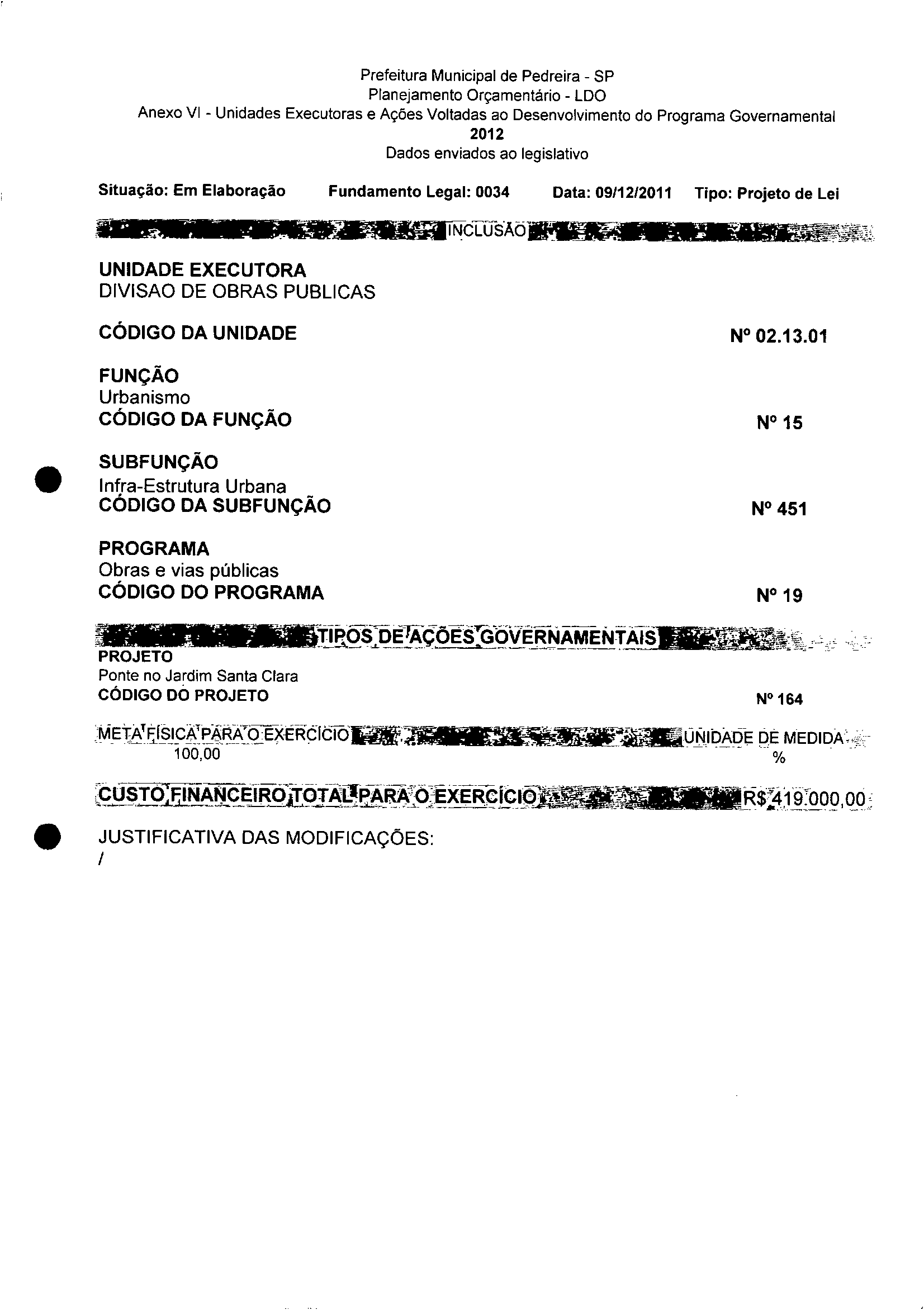 Ementa: Dispõe sobre a alteração dos anexos II e III -da Lei nº 2.977, de 5 de novembro de 2009 -Plano Plurianual para o Quadriênio de 2010/2013 e a alteração dos anexos Ve VI-da Lei nº 3.138, de 27 de junho de 2011 -Lei de Diretrizes Orçamentárias para o exercicio de 2012.