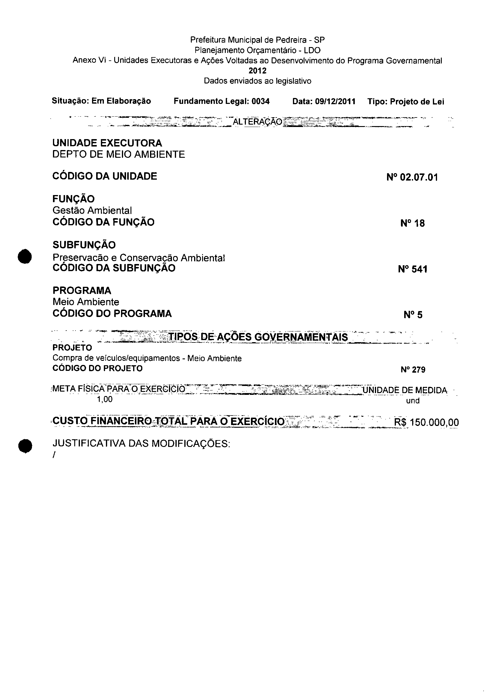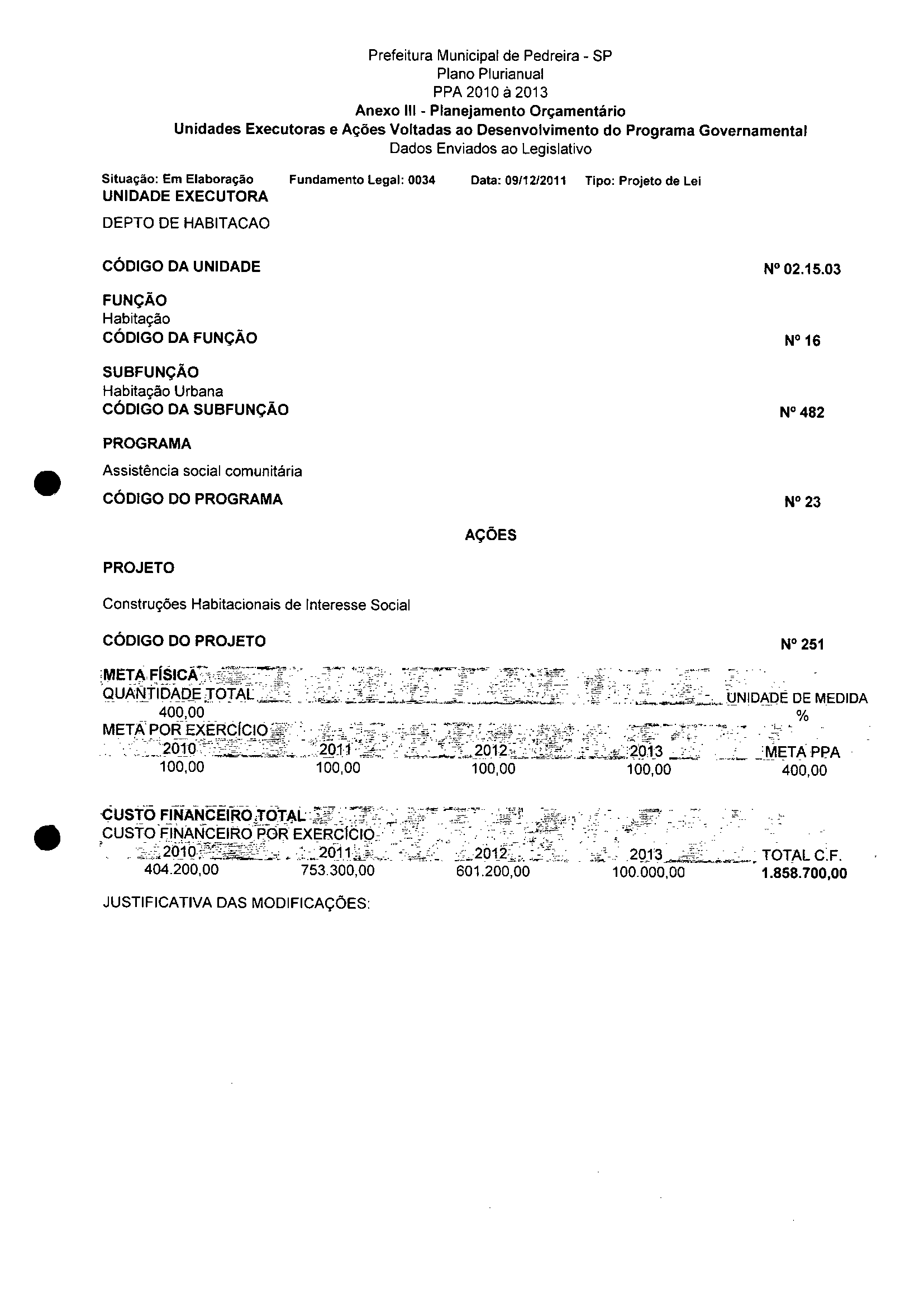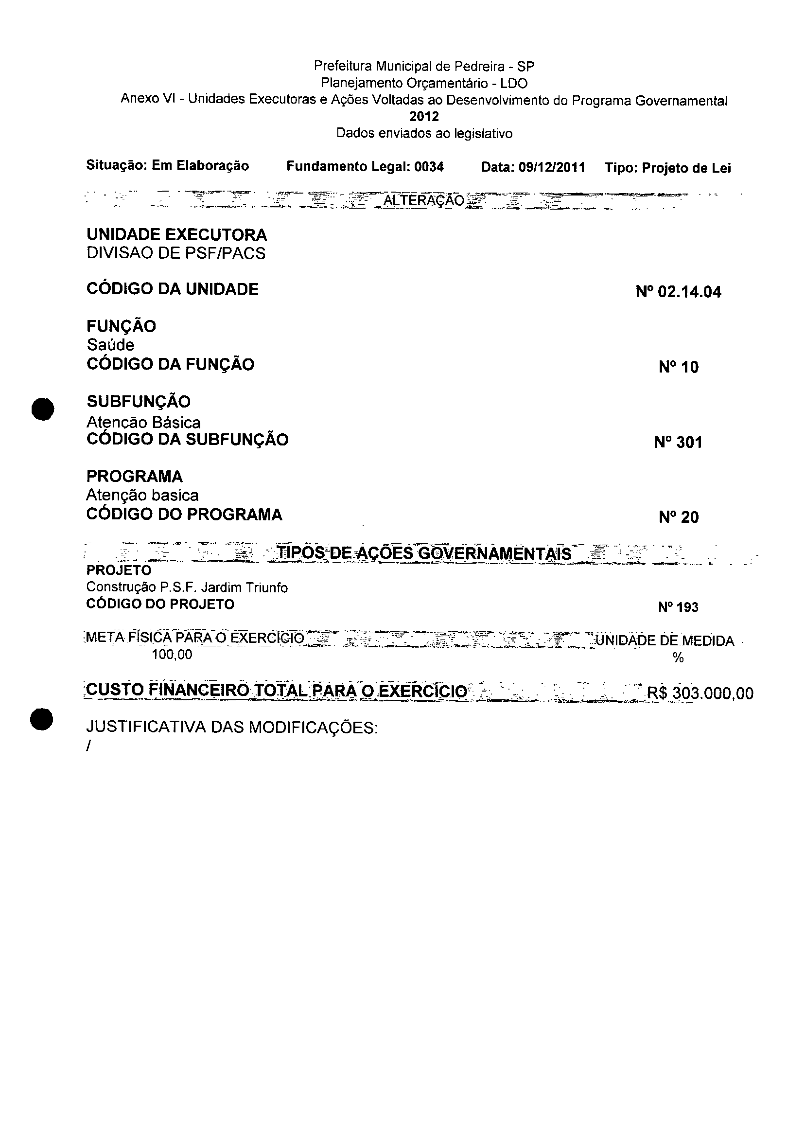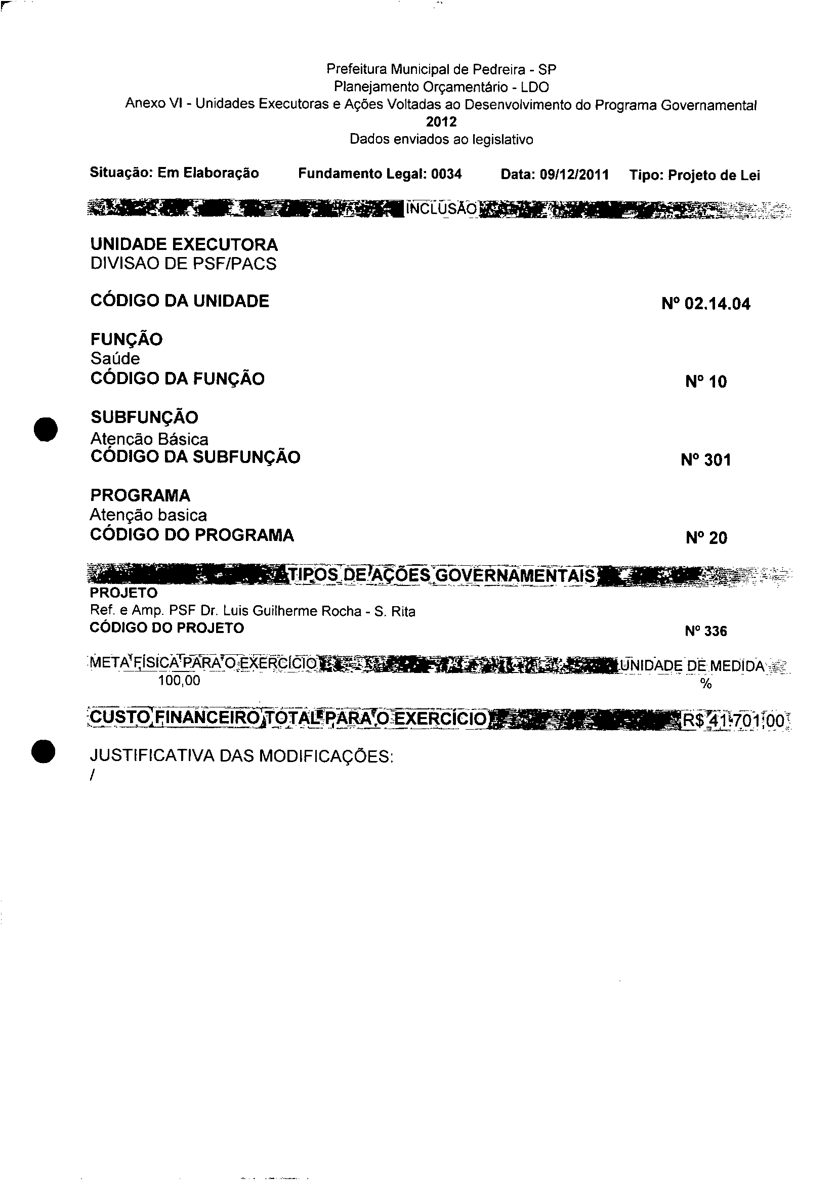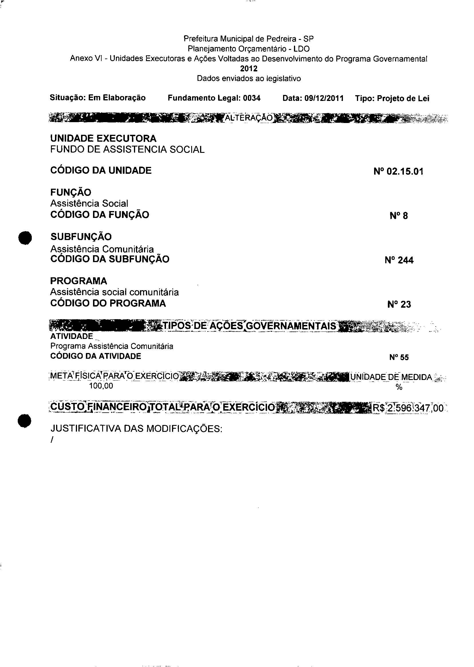 Ementa: Dispõe sobre a alteração dos anexos II e III -da Lei nº 2.977, de 5 de novembro de 2009 -Plano Plurianual para o Quadriênio de 2010/2013 e a alteração dos anexos Ve VI-da Lei nº 3.138, de 27 de junho de 2011 -Lei de Diretrizes Orçamentárias para o exercicio de 2012.