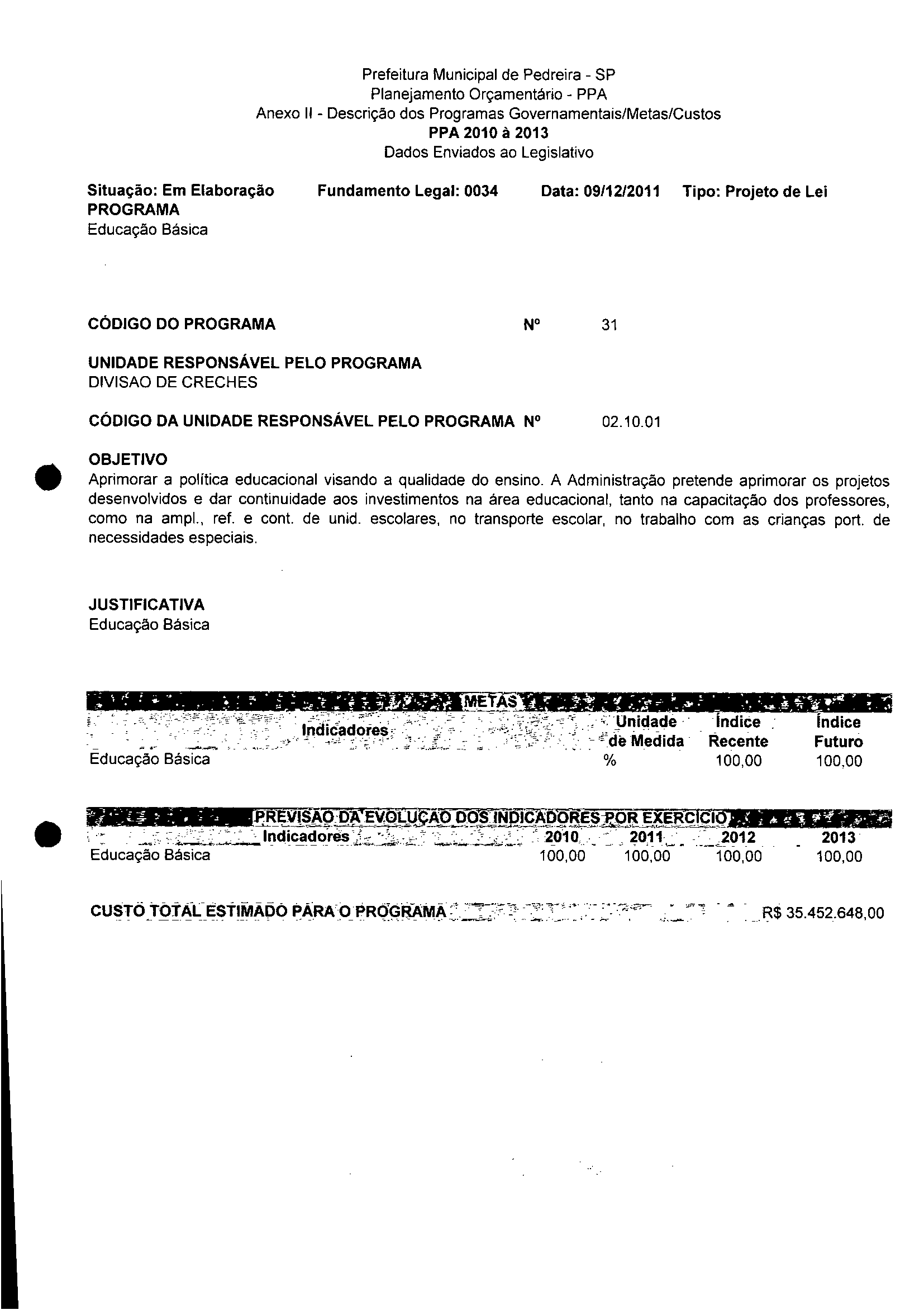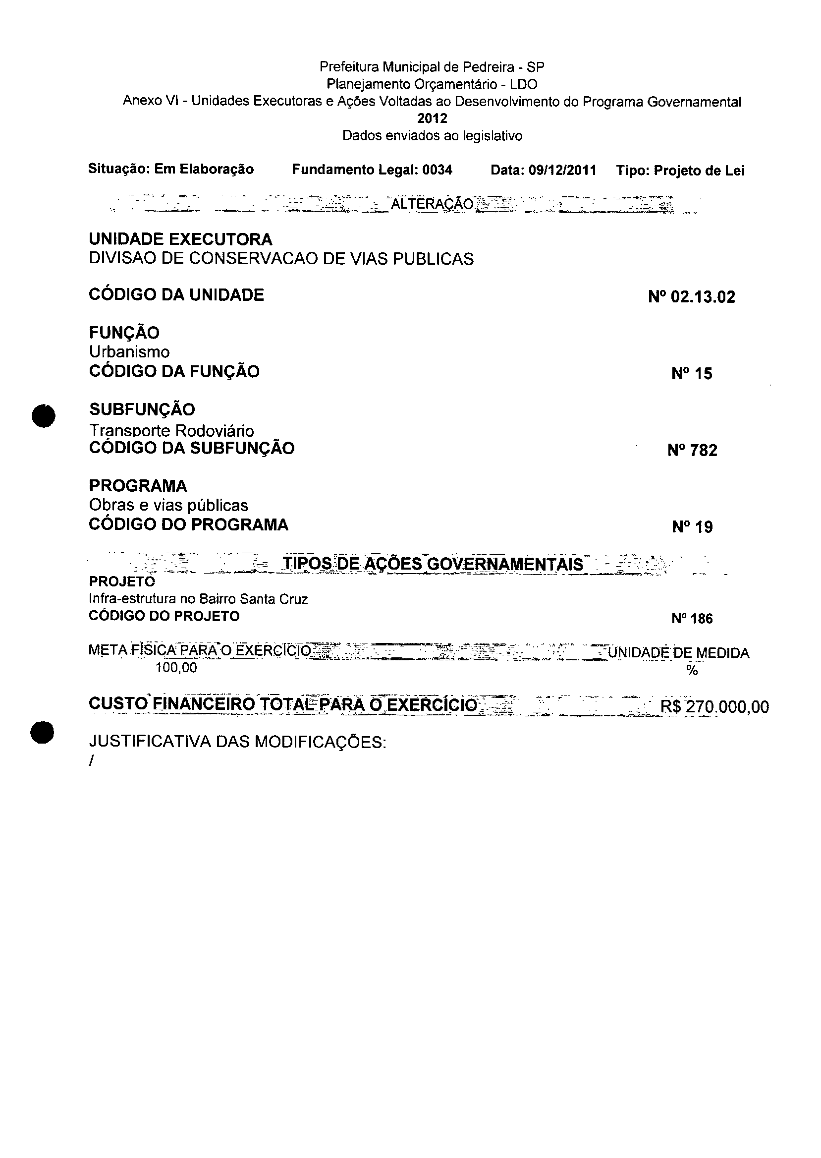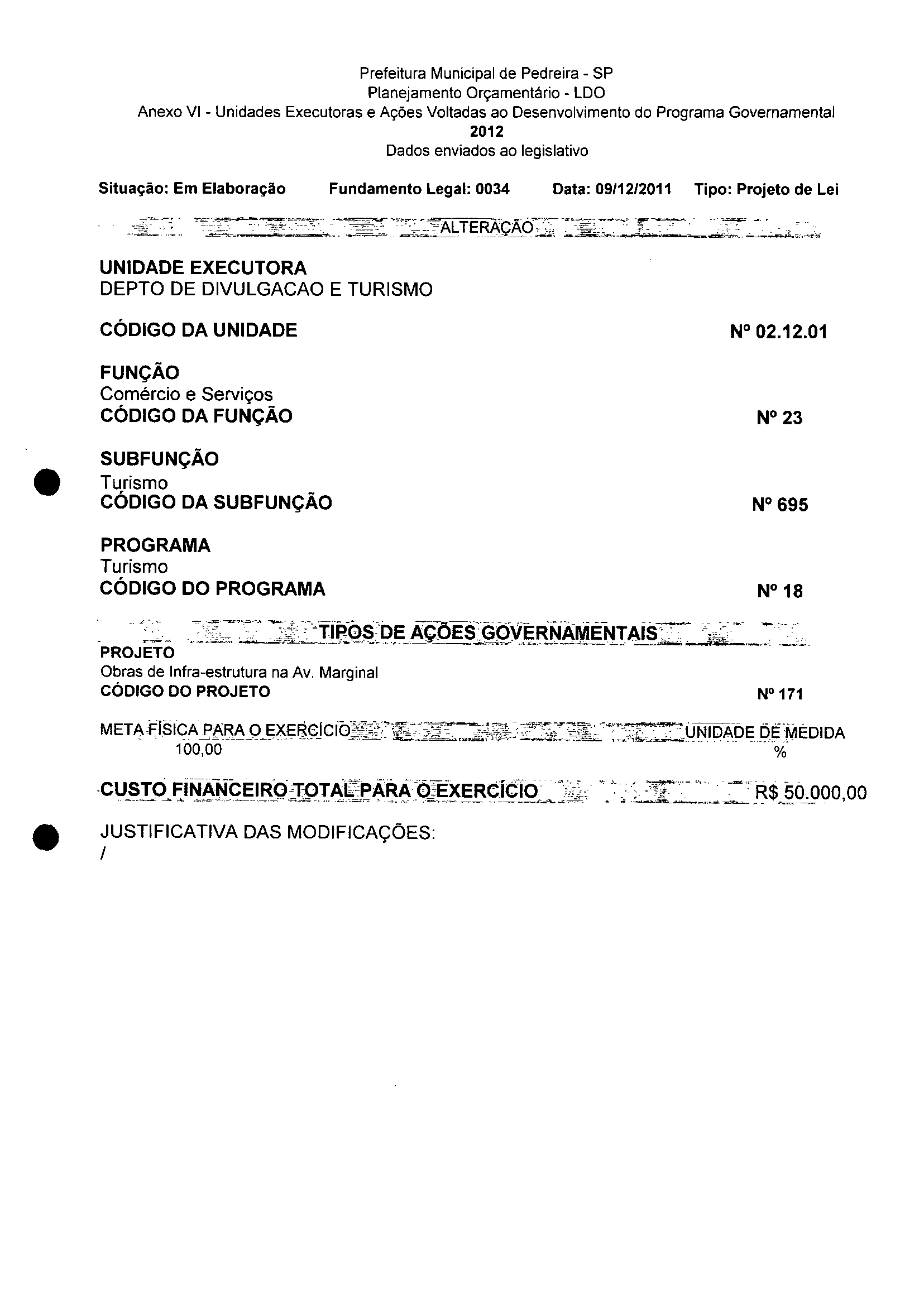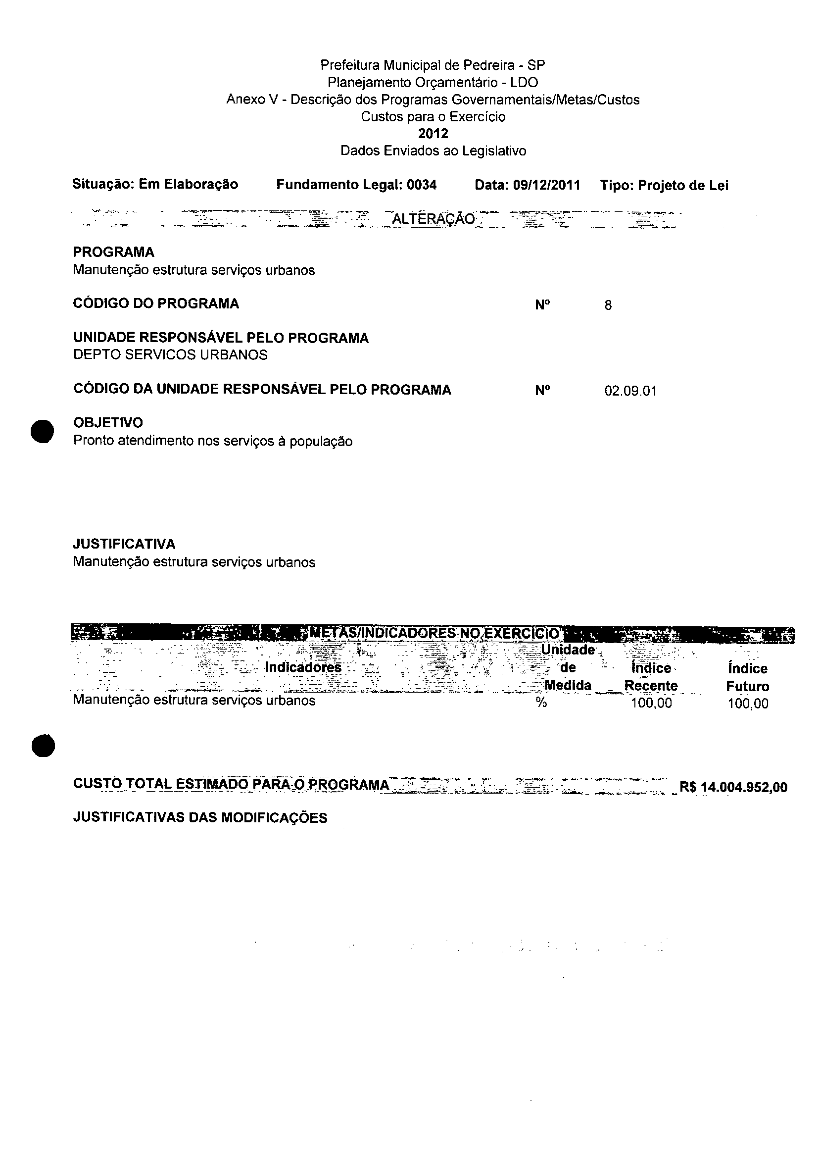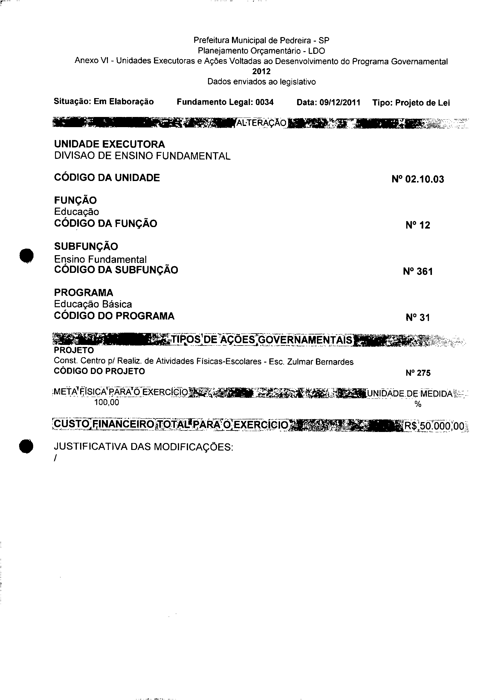 Ementa: Dispõe sobre a alteração dos anexos II e III -da Lei nº 2.977, de 5 de novembro de 2009 -Plano Plurianual para o Quadriênio de 2010/2013 e a alteração dos anexos Ve VI-da Lei nº 3.138, de 27 de junho de 2011 -Lei de Diretrizes Orçamentárias para o exercicio de 2012.