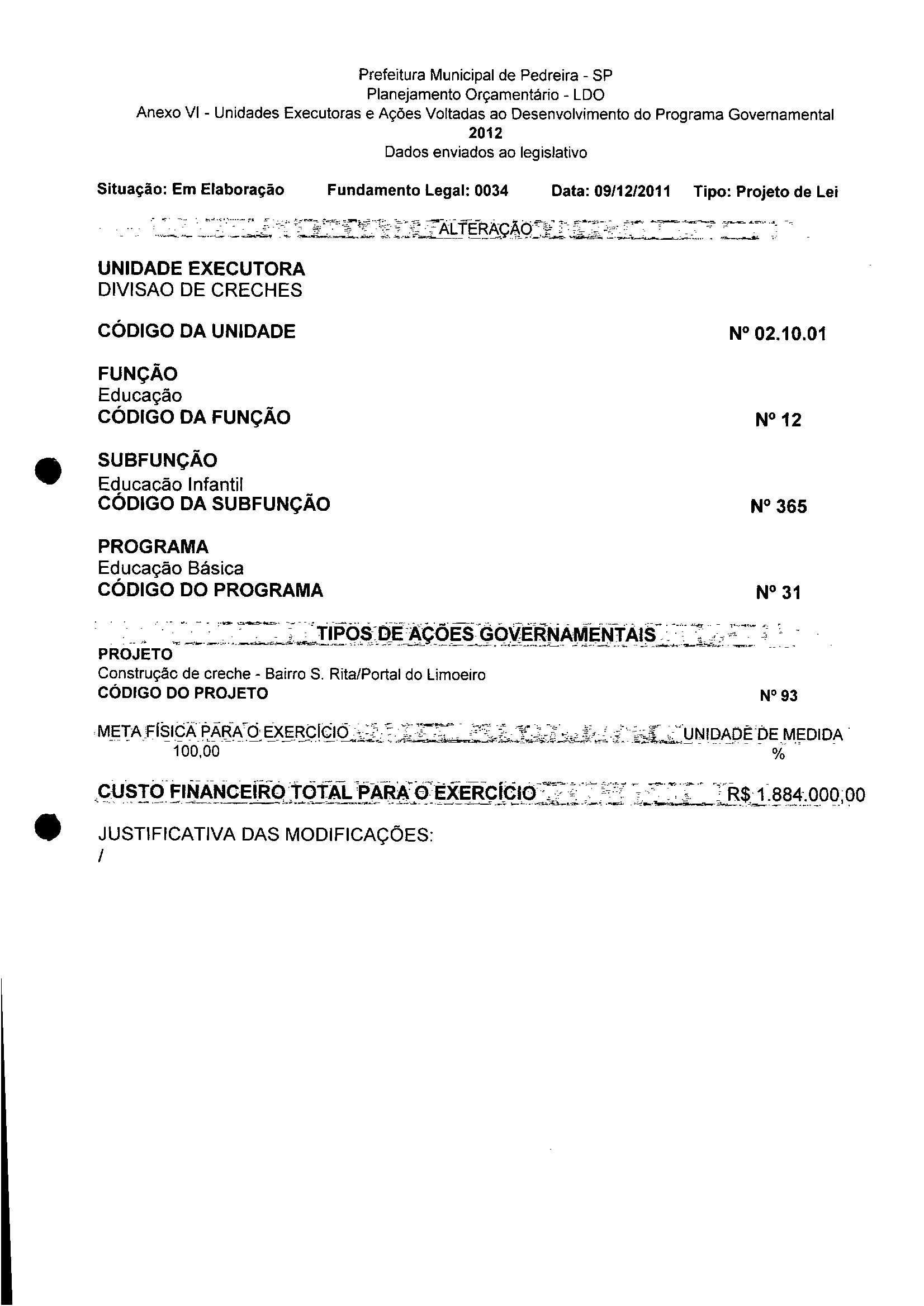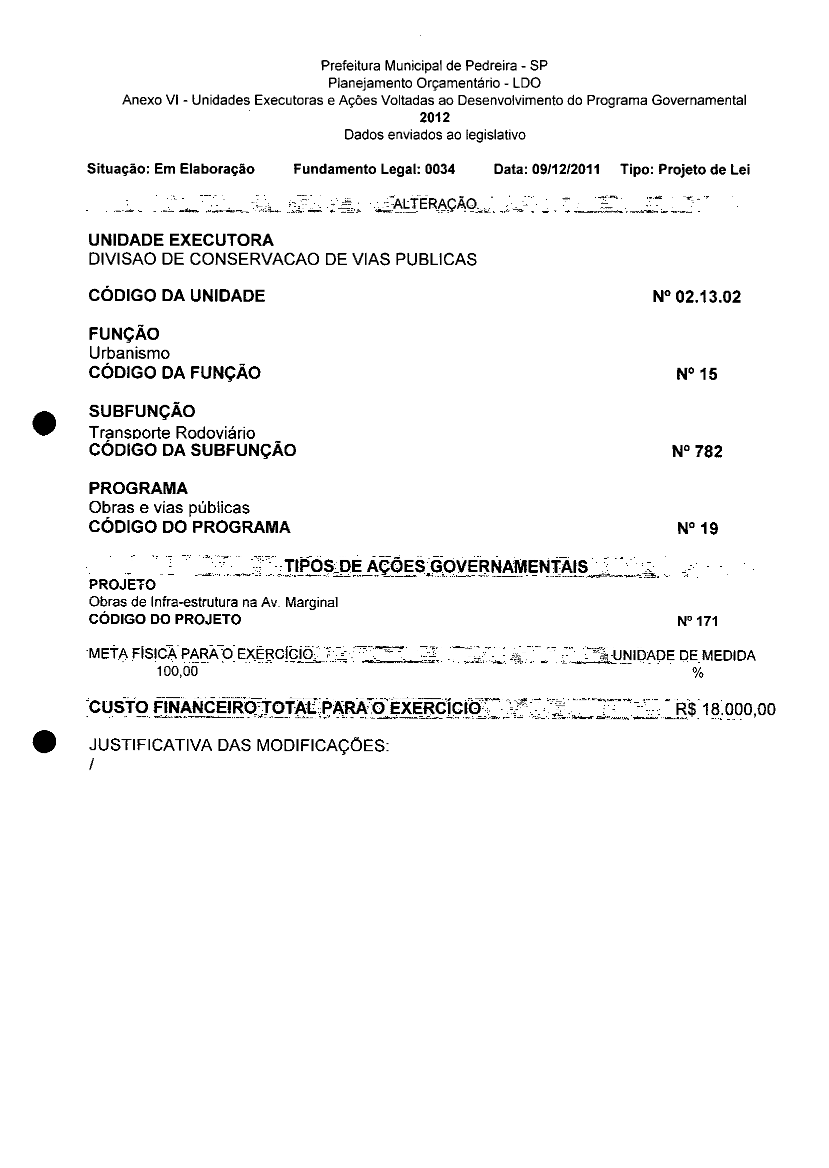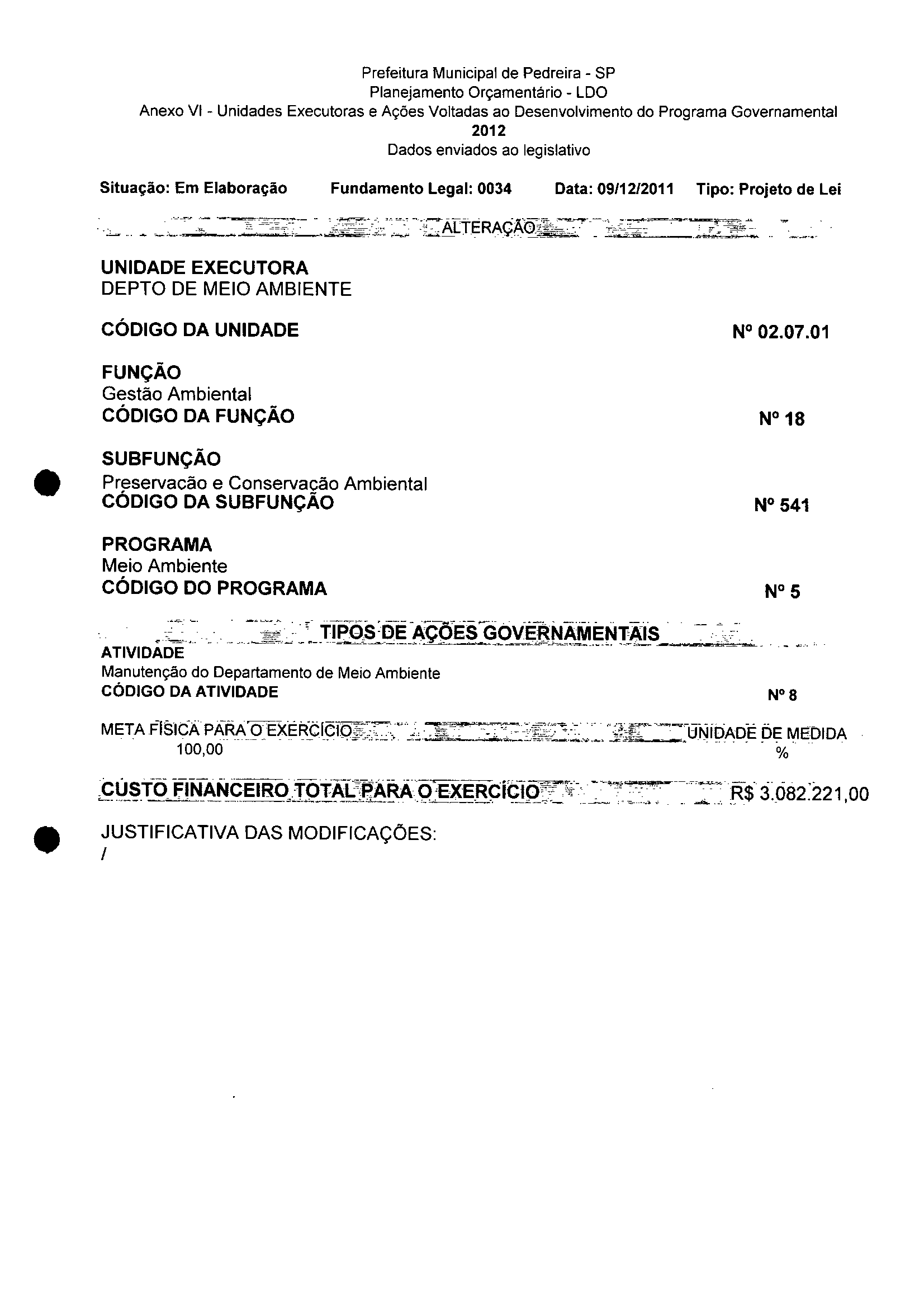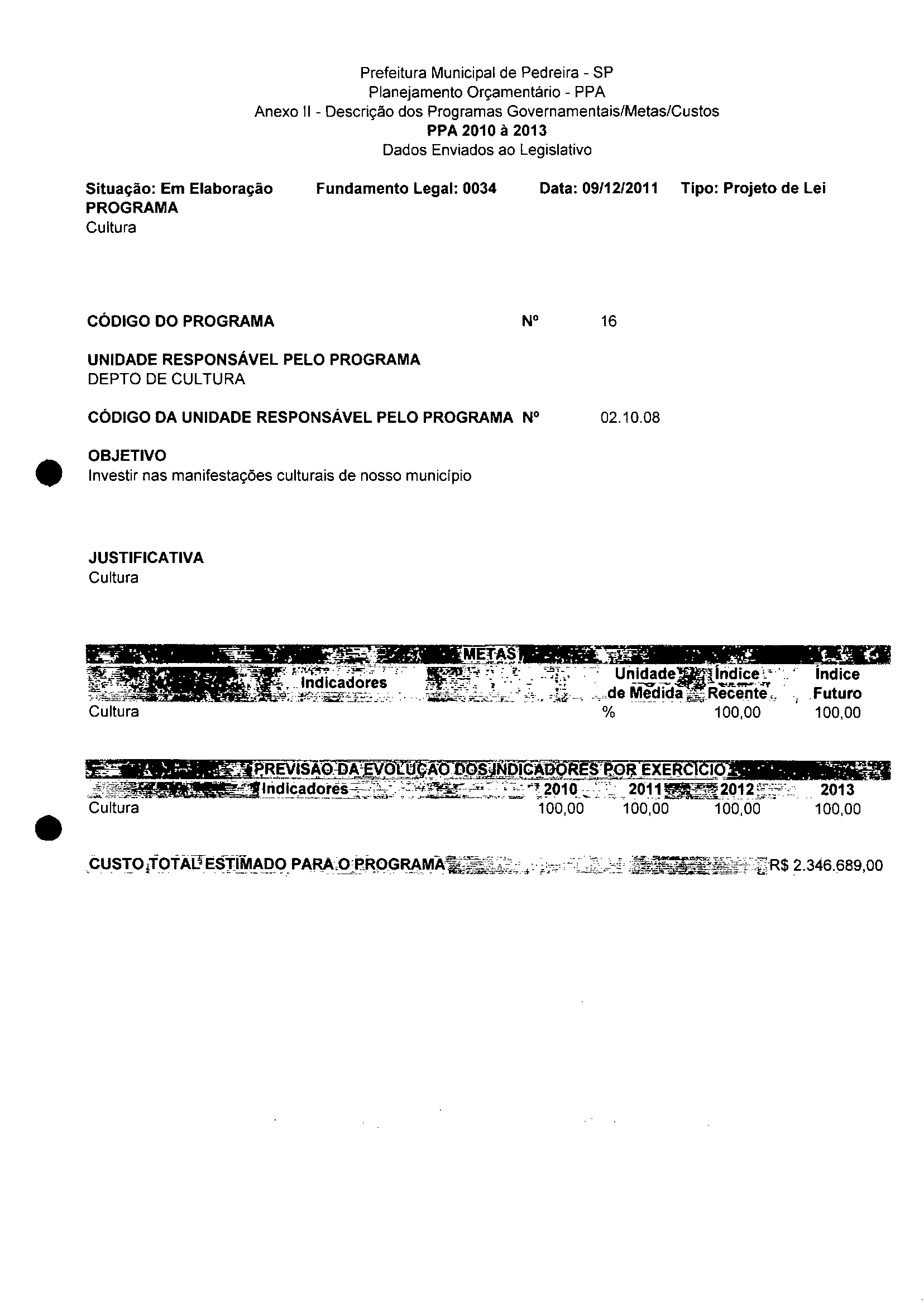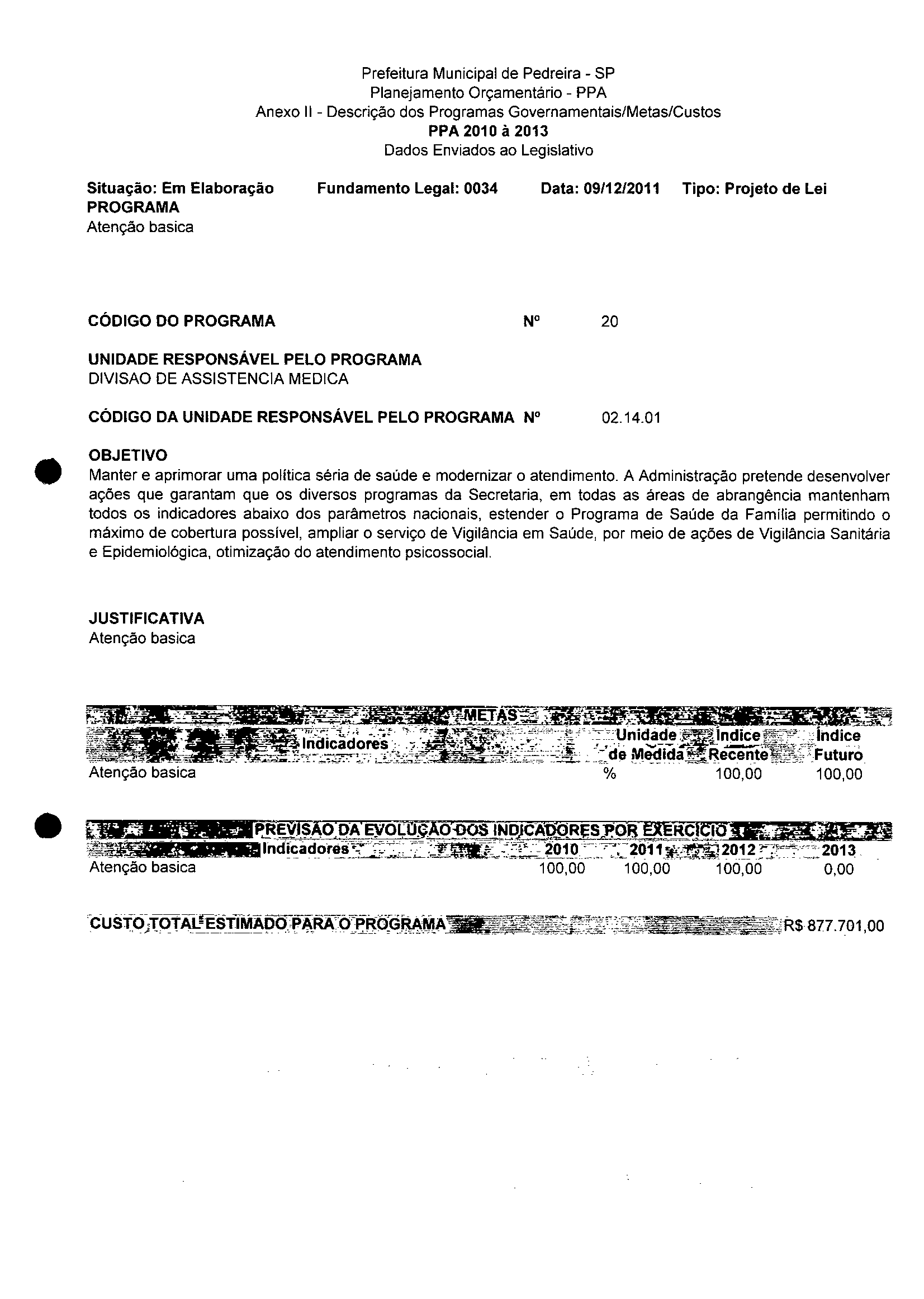 Ementa: Dispõe sobre a alteração dos anexos II e III -da Lei nº 2.977, de 5 de novembro de 2009 -Plano Plurianual para o Quadriênio de 2010/2013 e a alteração dos anexos Ve VI-da Lei nº 3.138, de 27 de junho de 2011 -Lei de Diretrizes Orçamentárias para o exercicio de 2012.